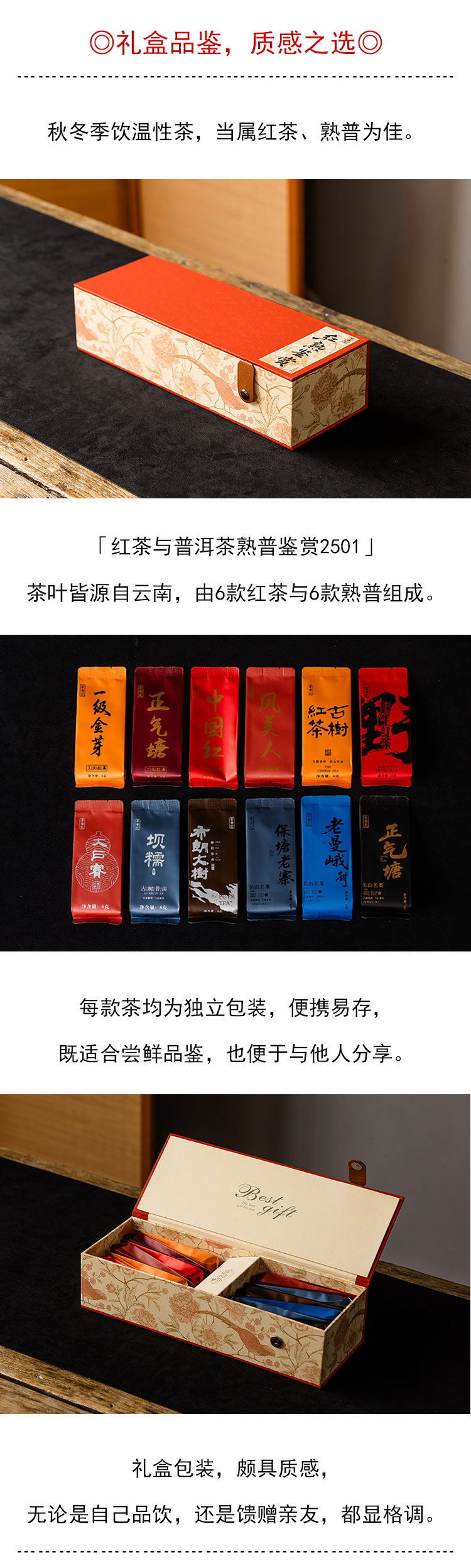 茶香记红茶与普洱茶熟普鉴赏云南高香红茶独立包装便携易存质感礼盒