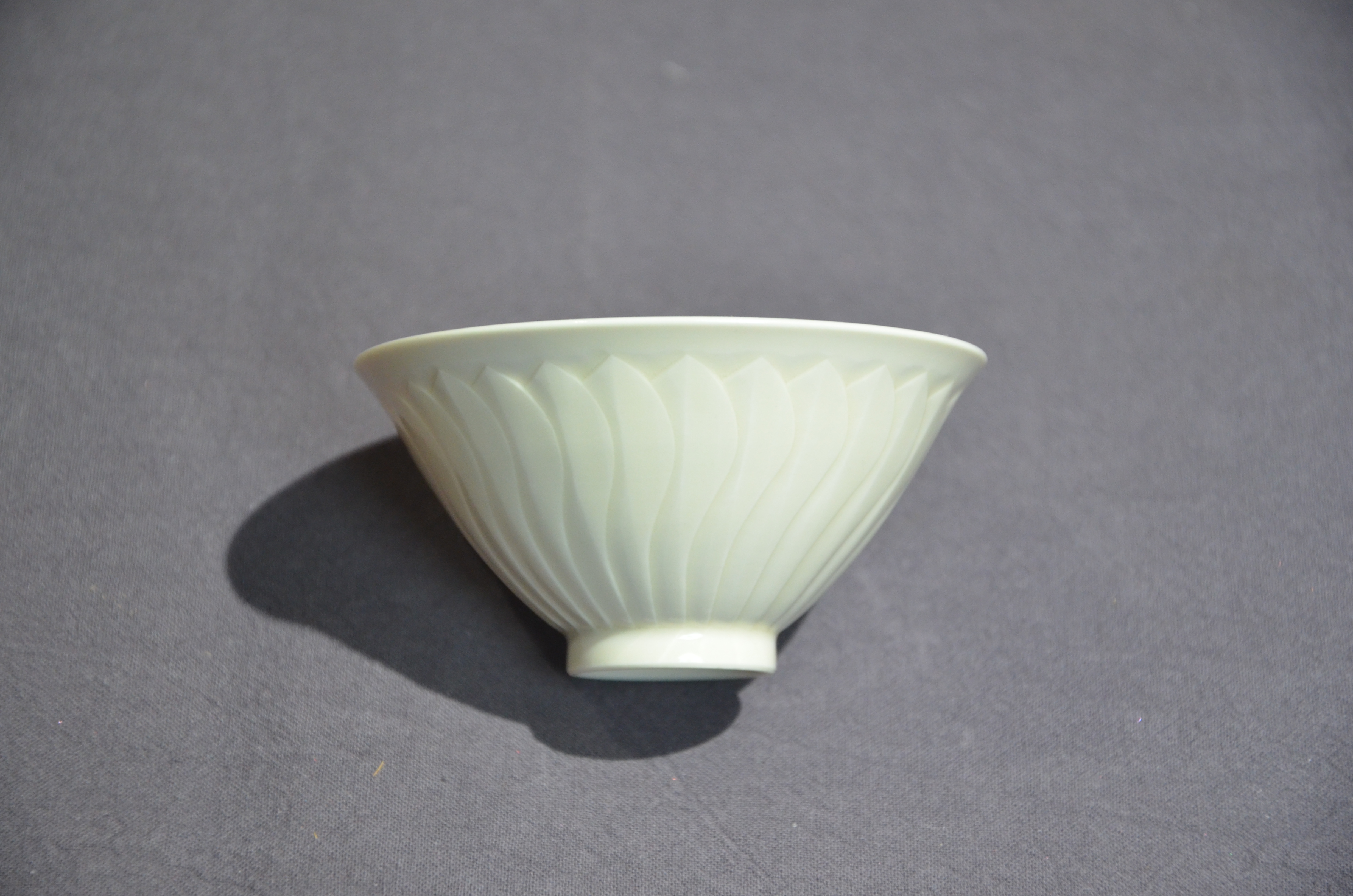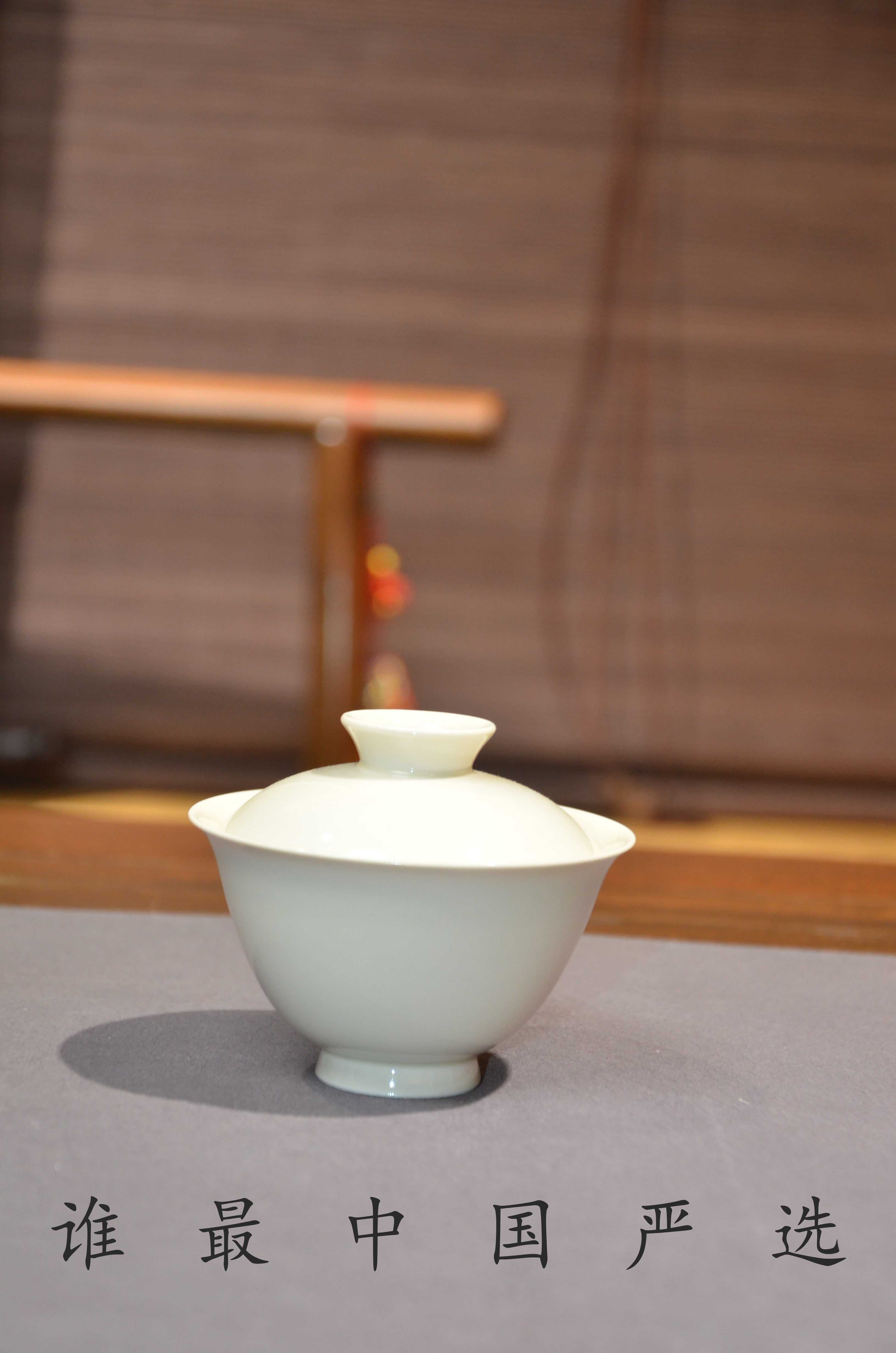 定窑 两才白釉手工盖碗 禅影高足刻花品茗杯