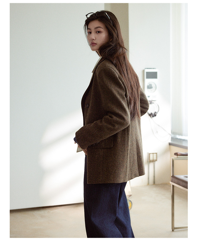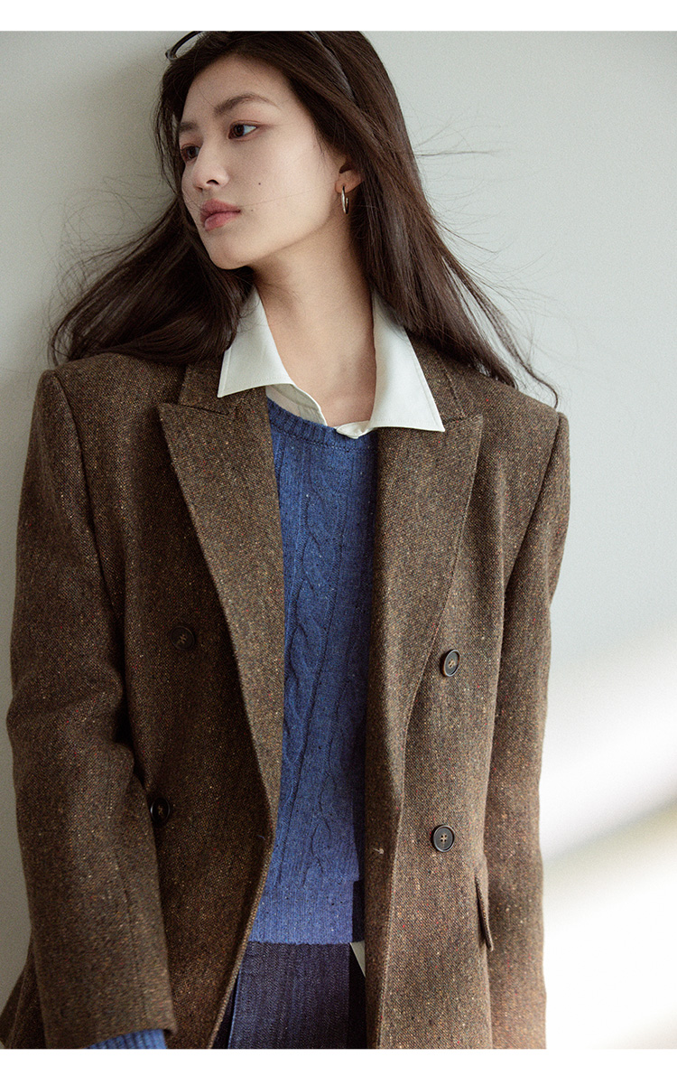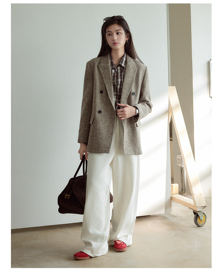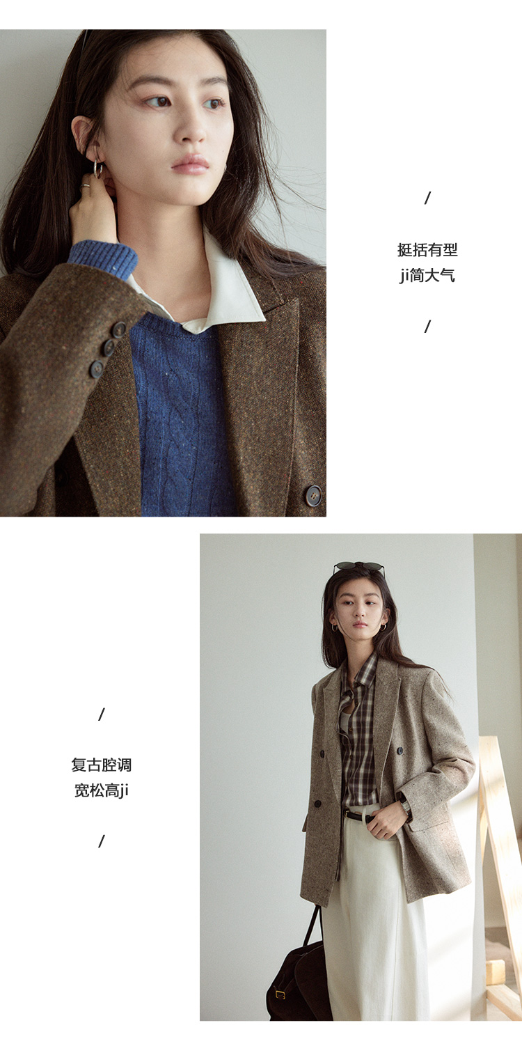 Even Vintage|复古腔调 品质绵羊毛花呢宽肩廓形氛围感西装外套女