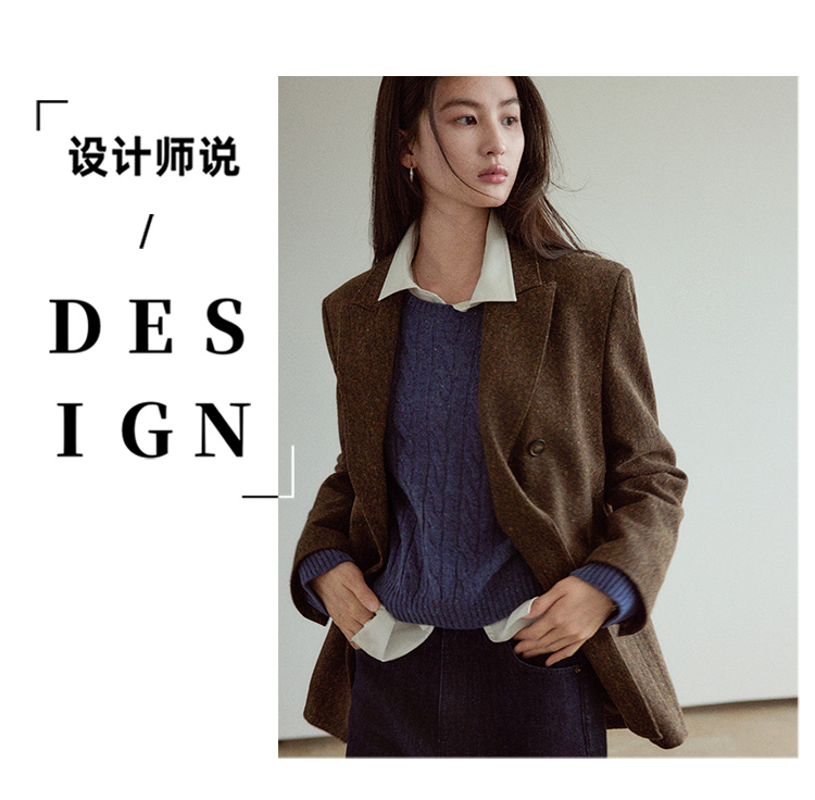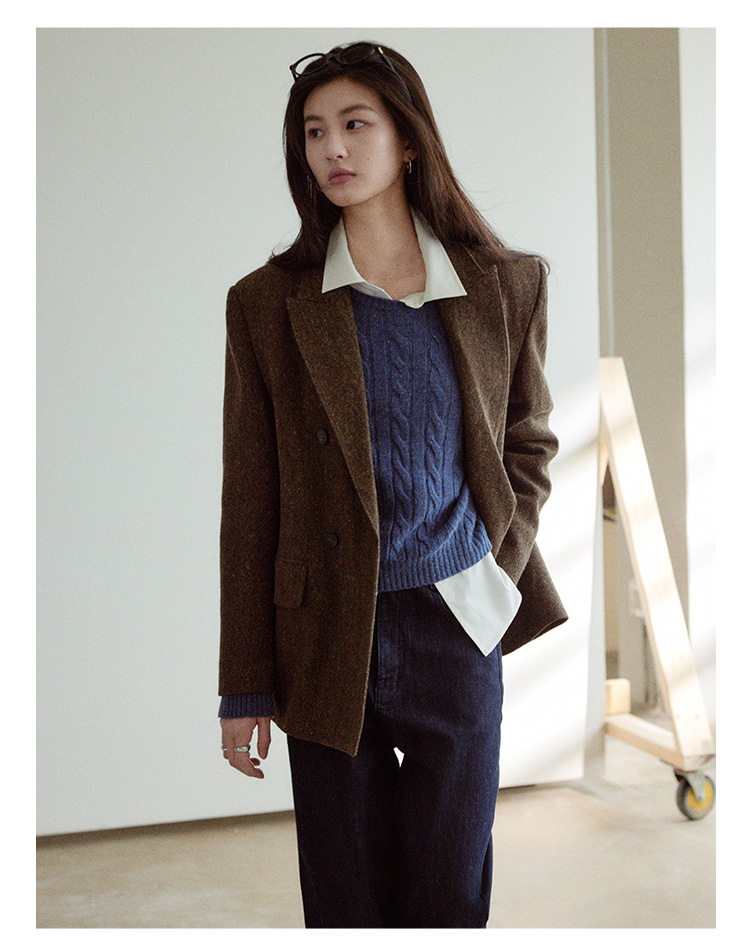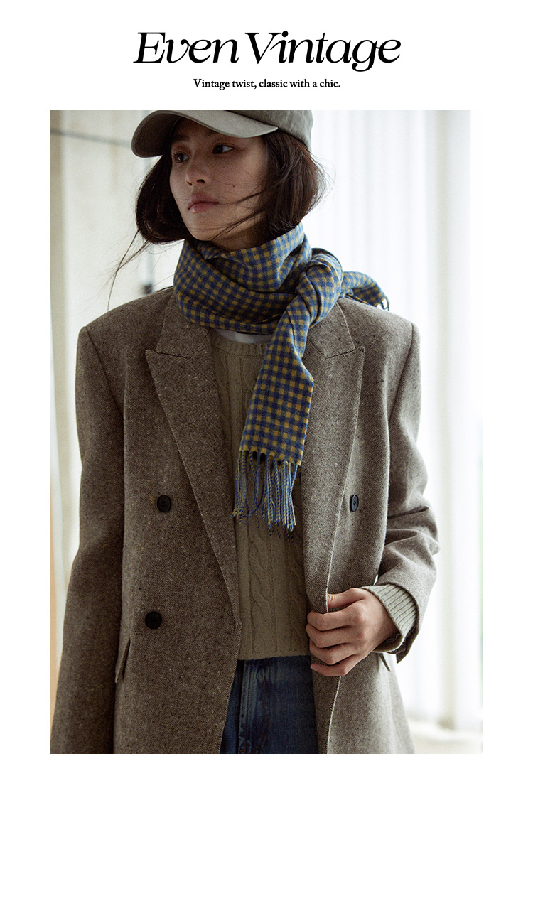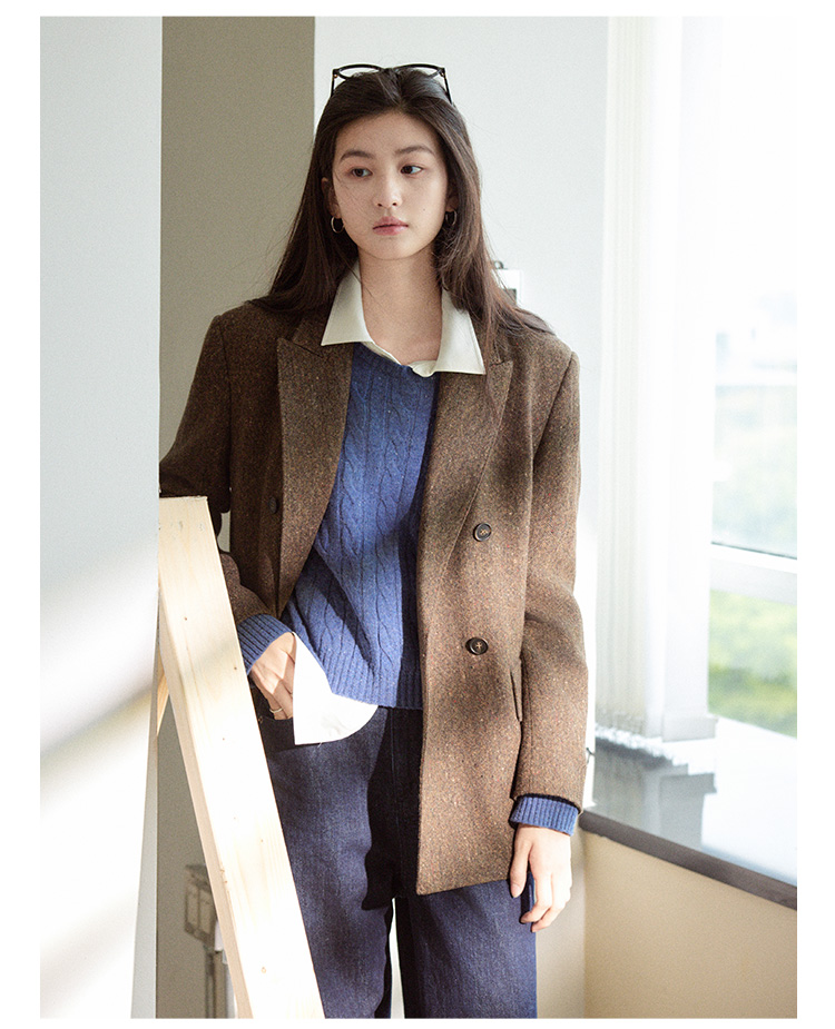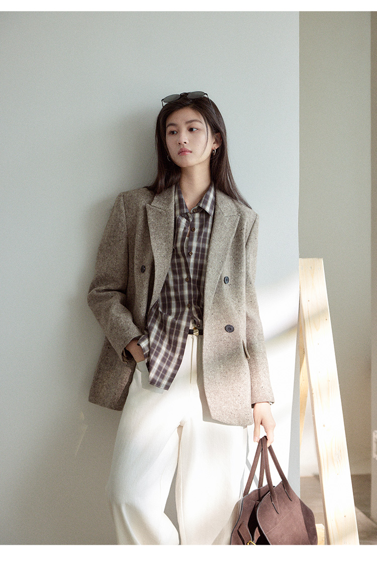 Even Vintage|复古腔调 品质绵羊毛花呢宽肩廓形氛围感西装外套女