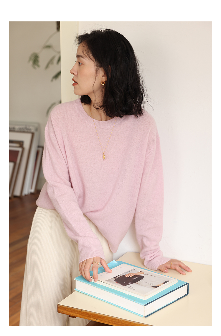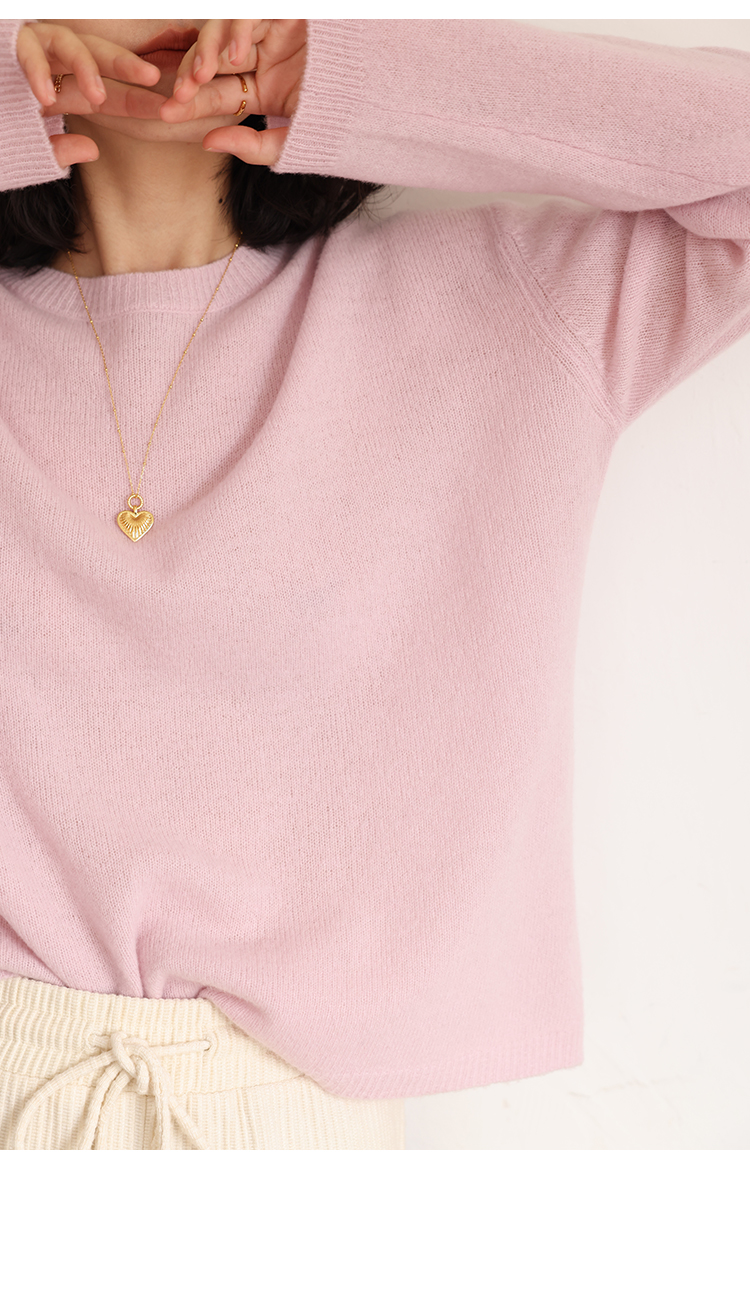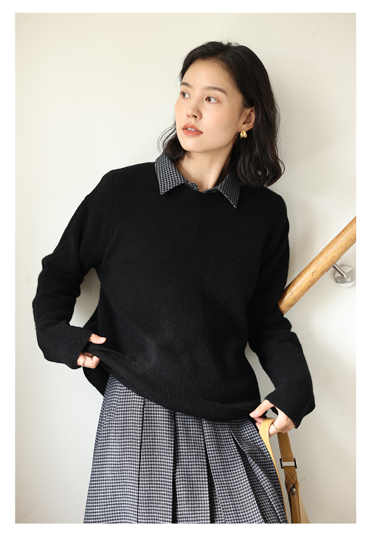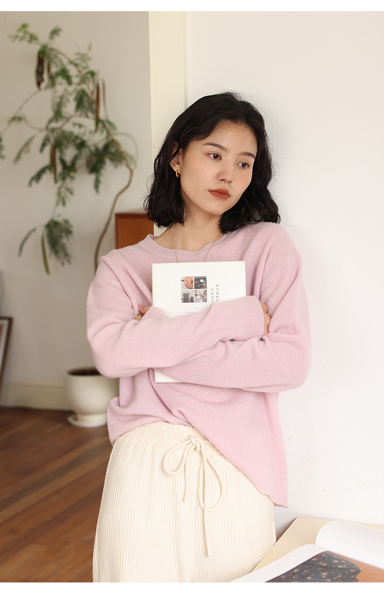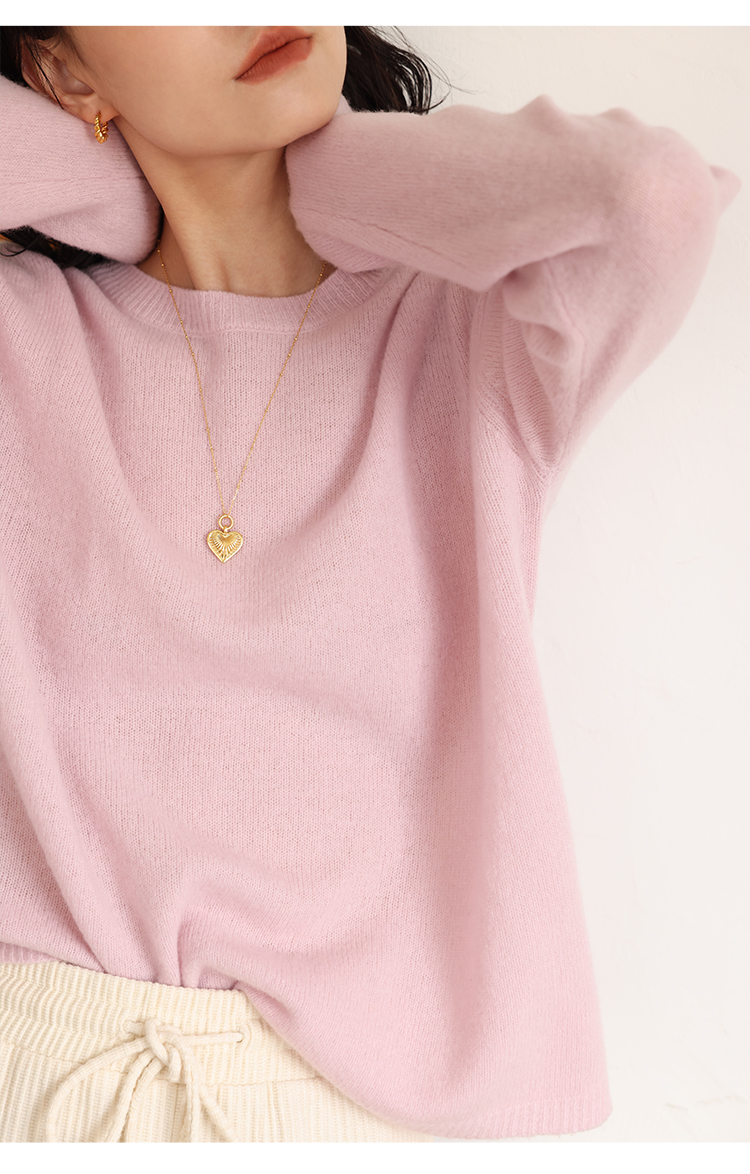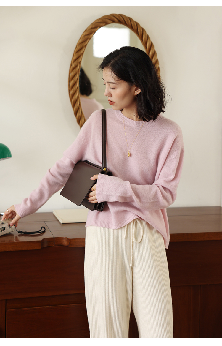 HeyDress100绵羊毛毛衣女秋冬法式圆领宽松针织衫慵懒感套头上衣