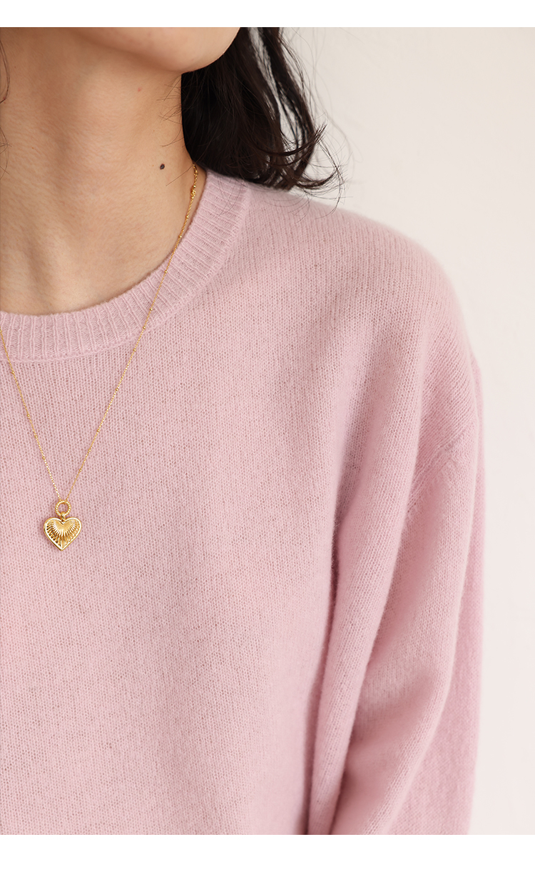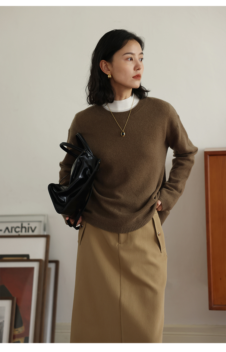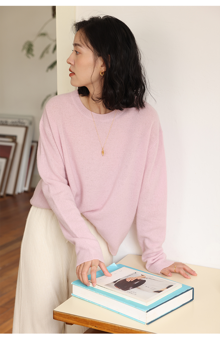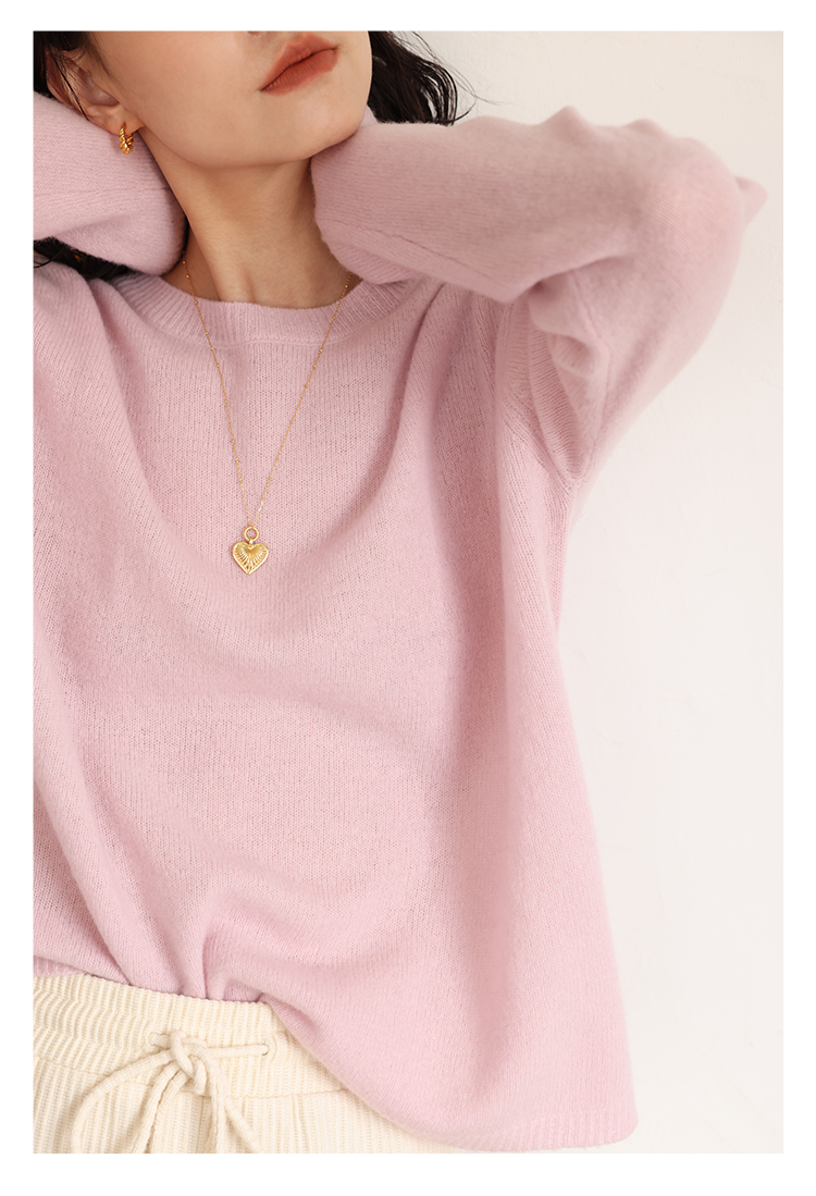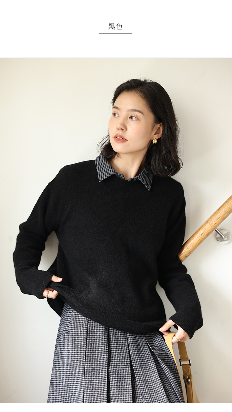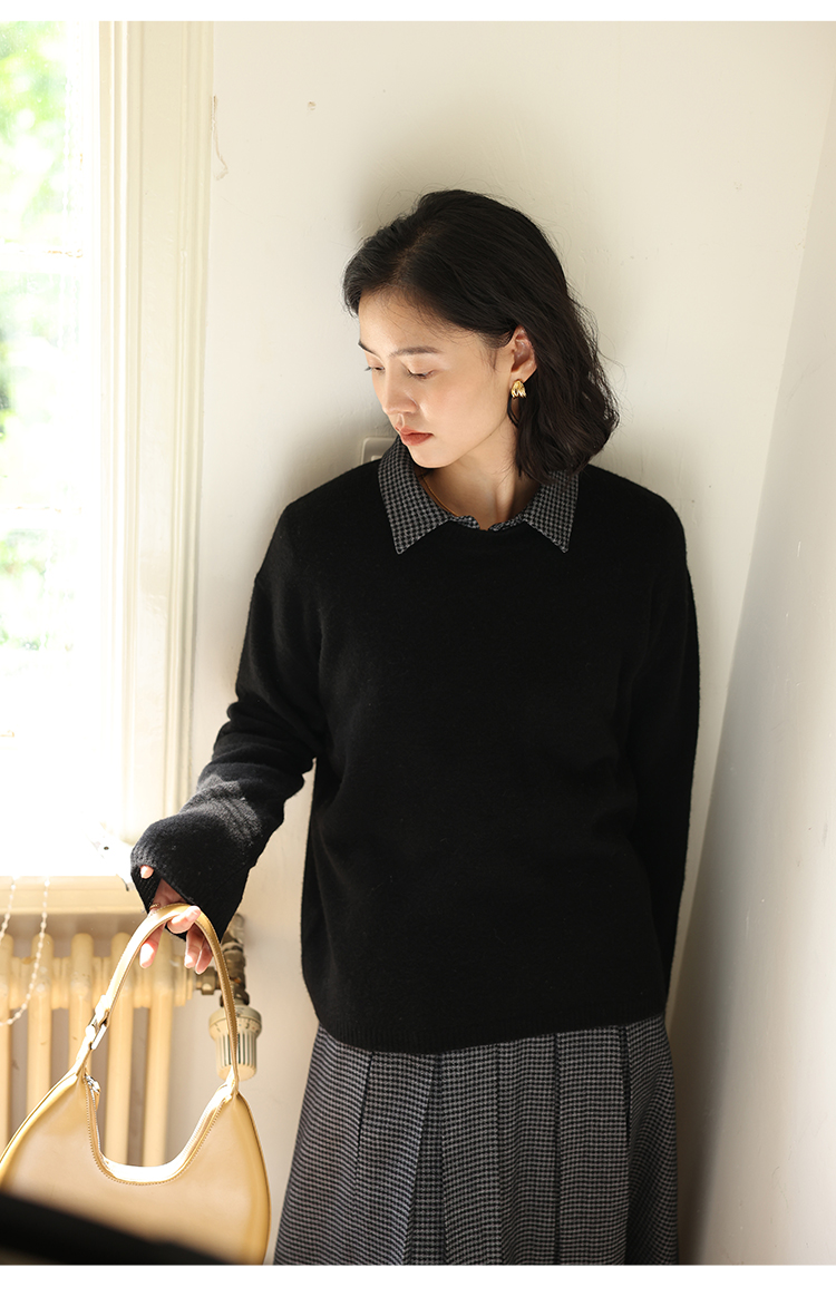HeyDress100绵羊毛毛衣女秋冬法式圆领宽松针织衫慵懒感套头上衣