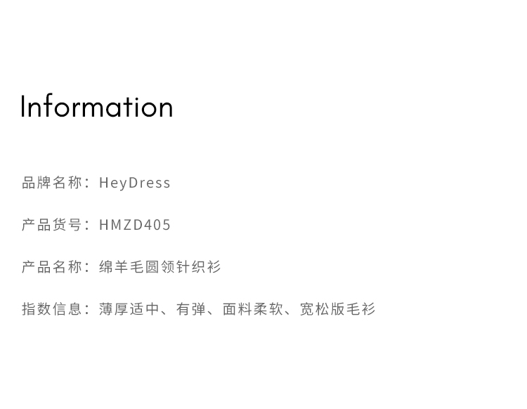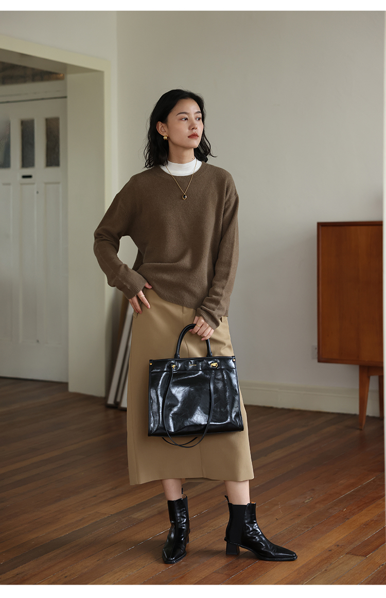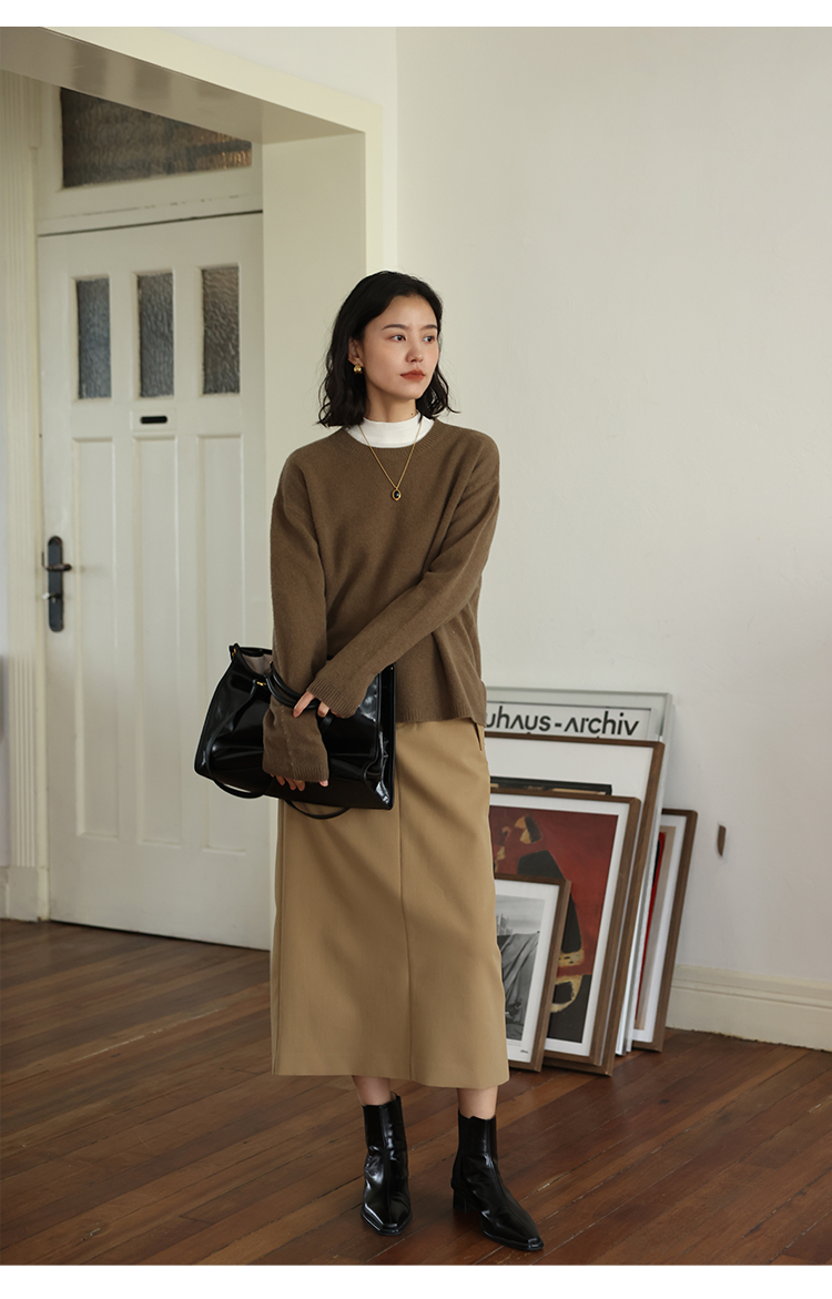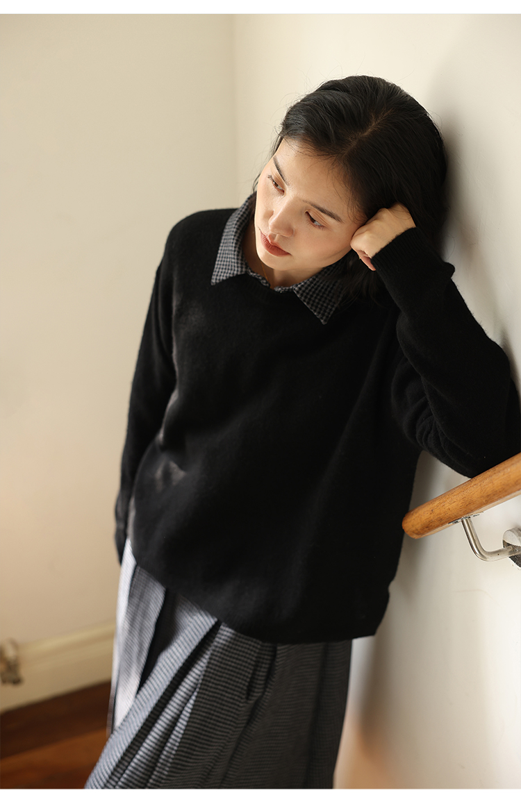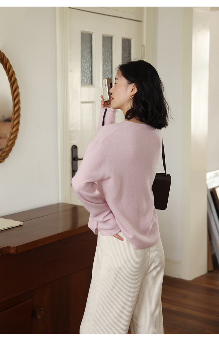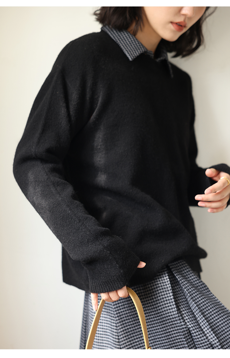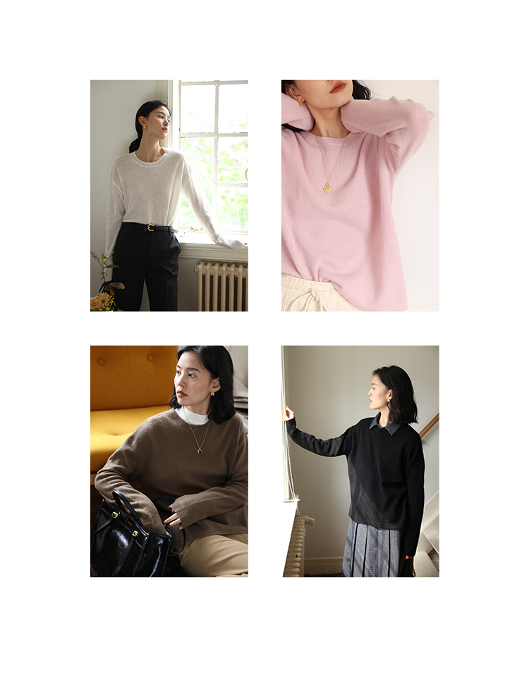 HeyDress100绵羊毛毛衣女秋冬法式圆领宽松针织衫慵懒感套头上衣