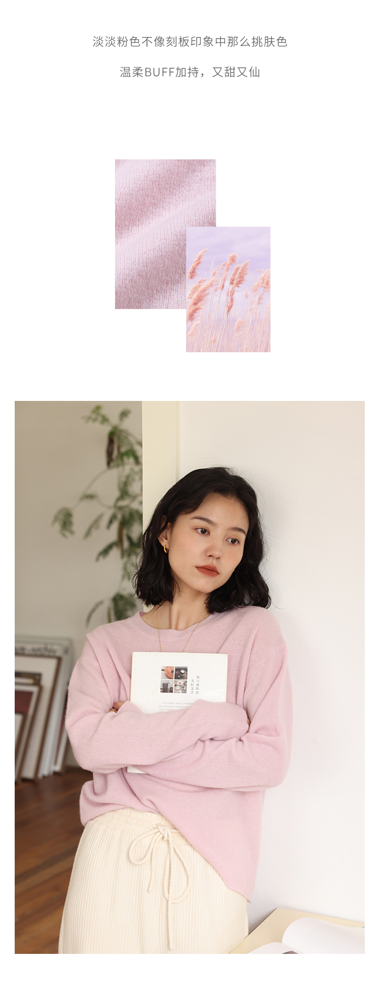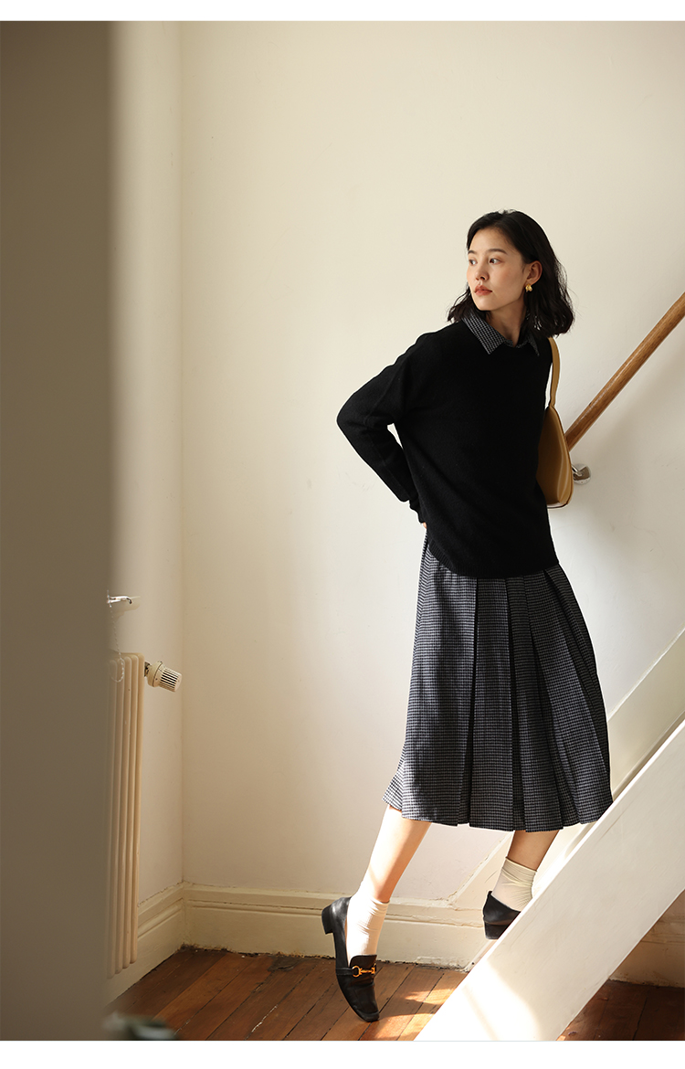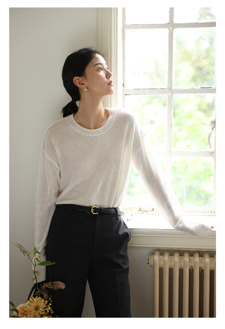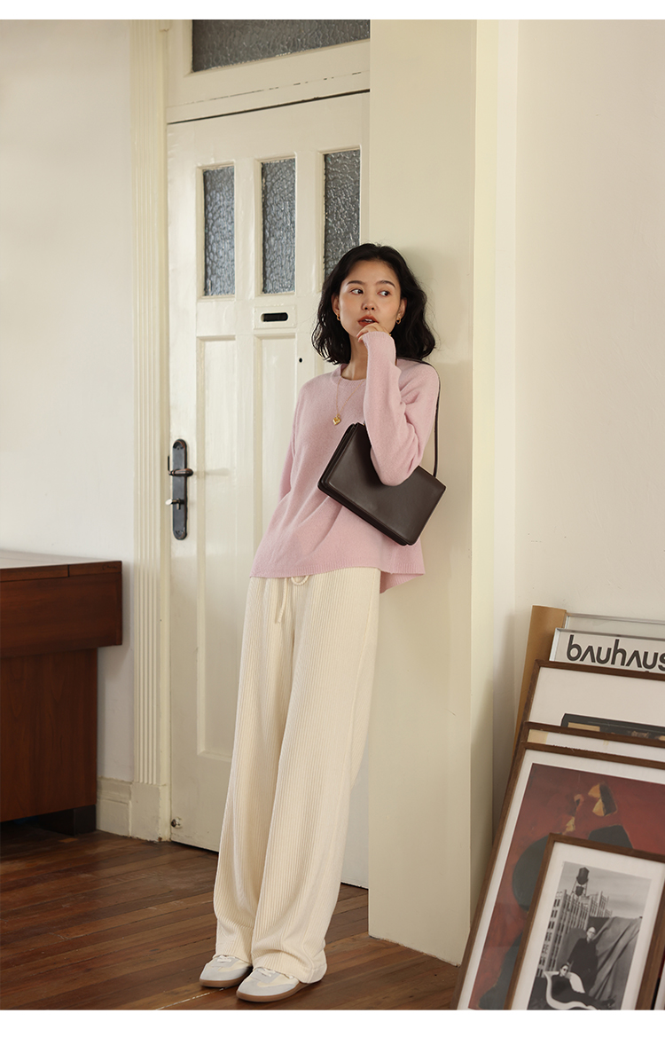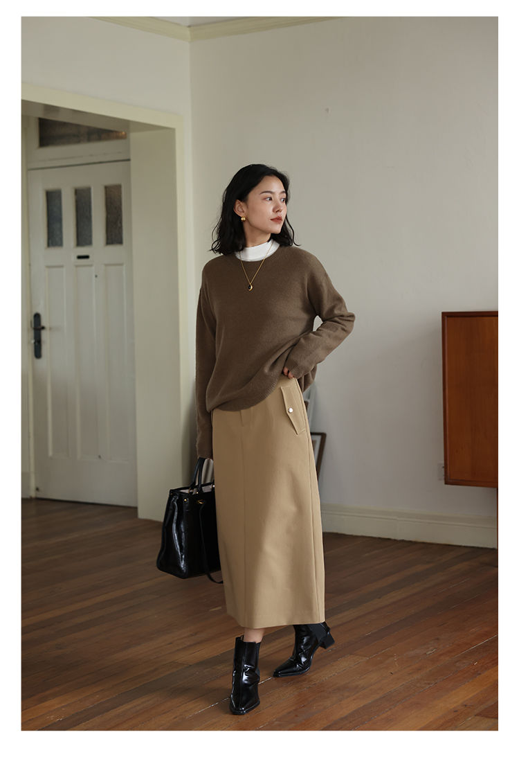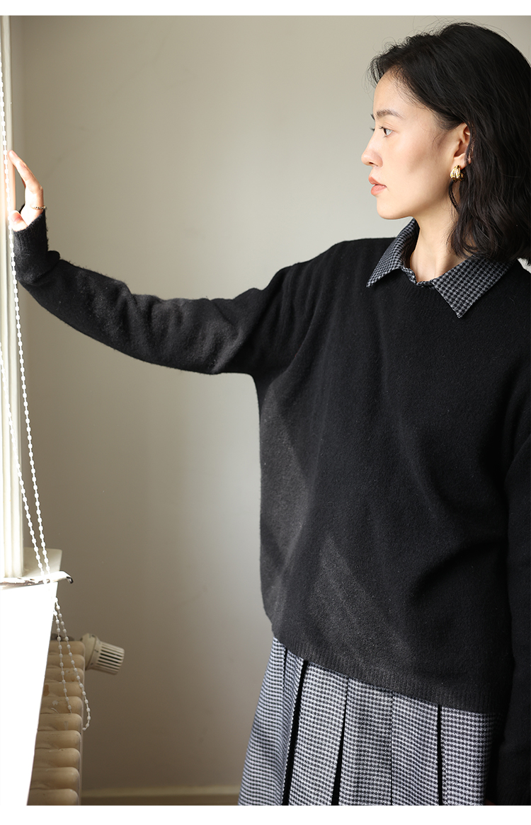 HeyDress100绵羊毛毛衣女秋冬法式圆领宽松针织衫慵懒感套头上衣