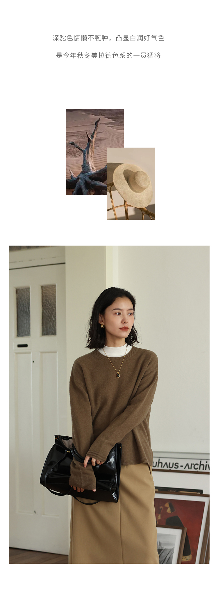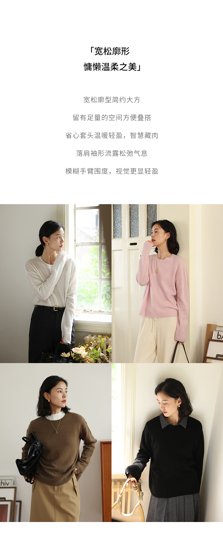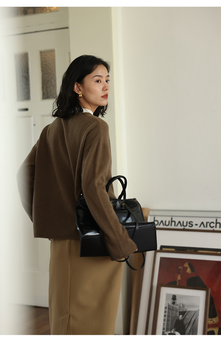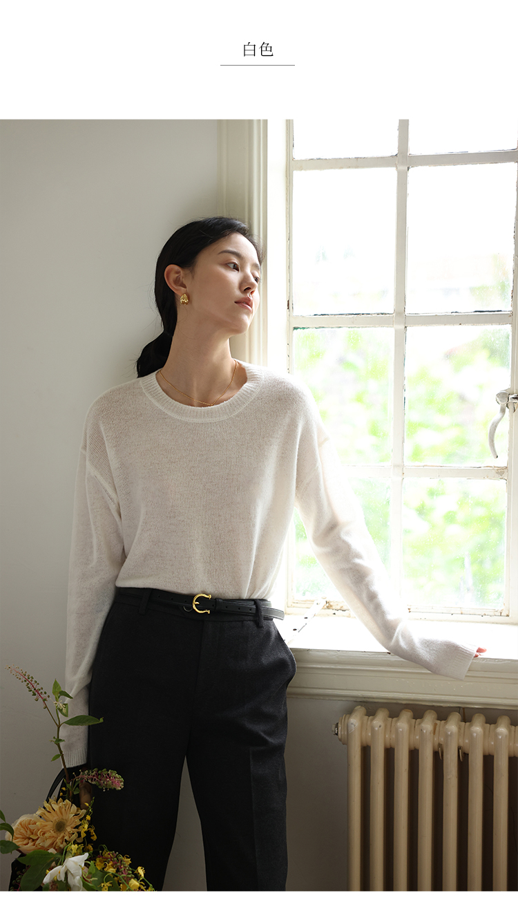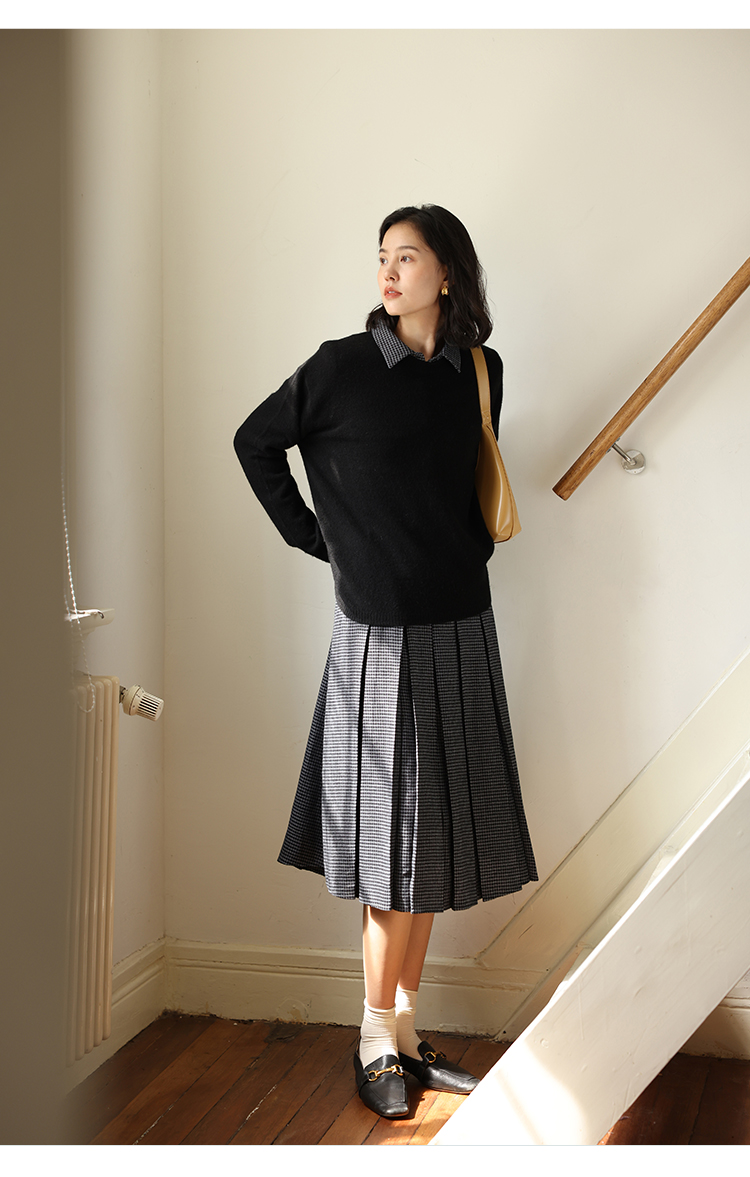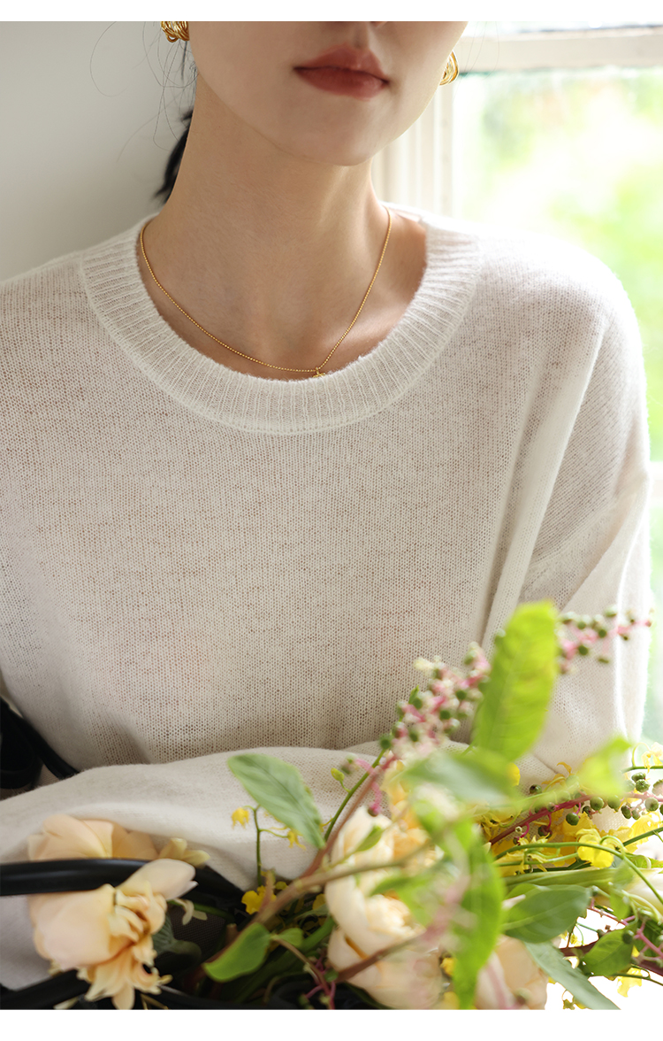 HeyDress100绵羊毛毛衣女秋冬法式圆领宽松针织衫慵懒感套头上衣