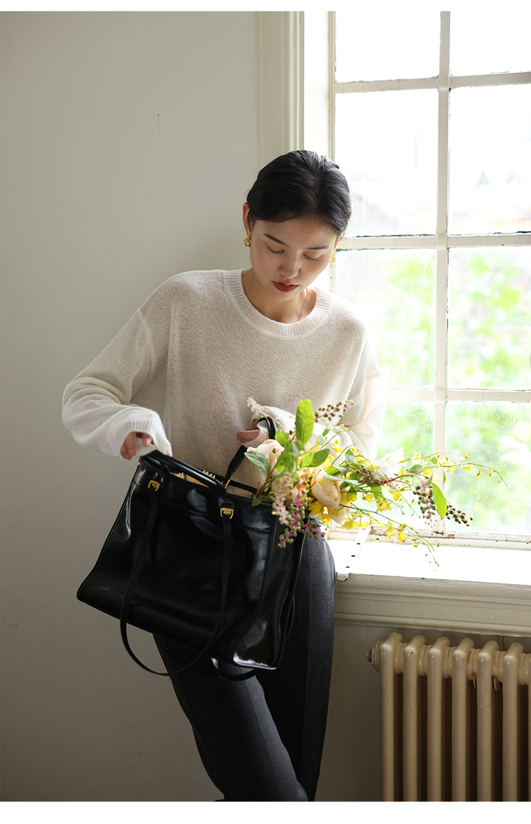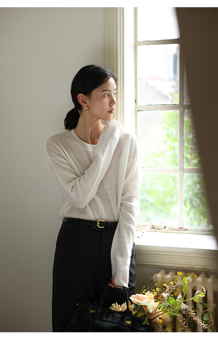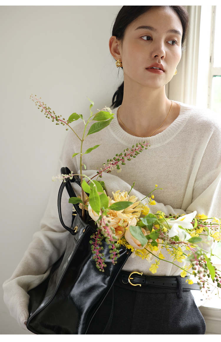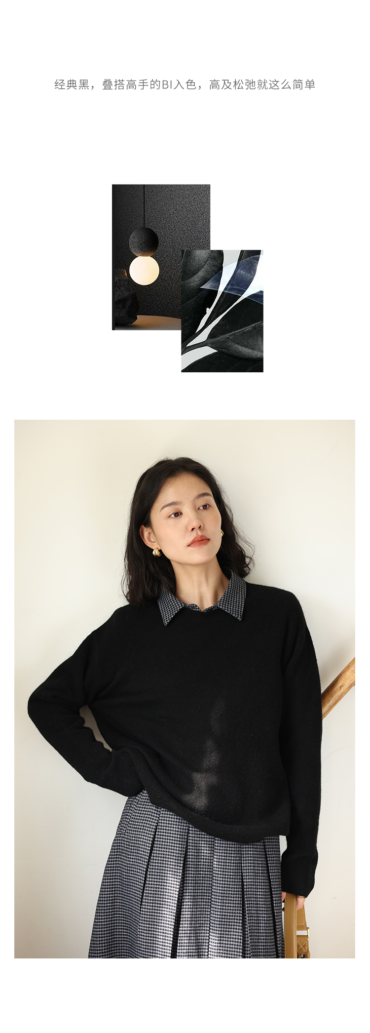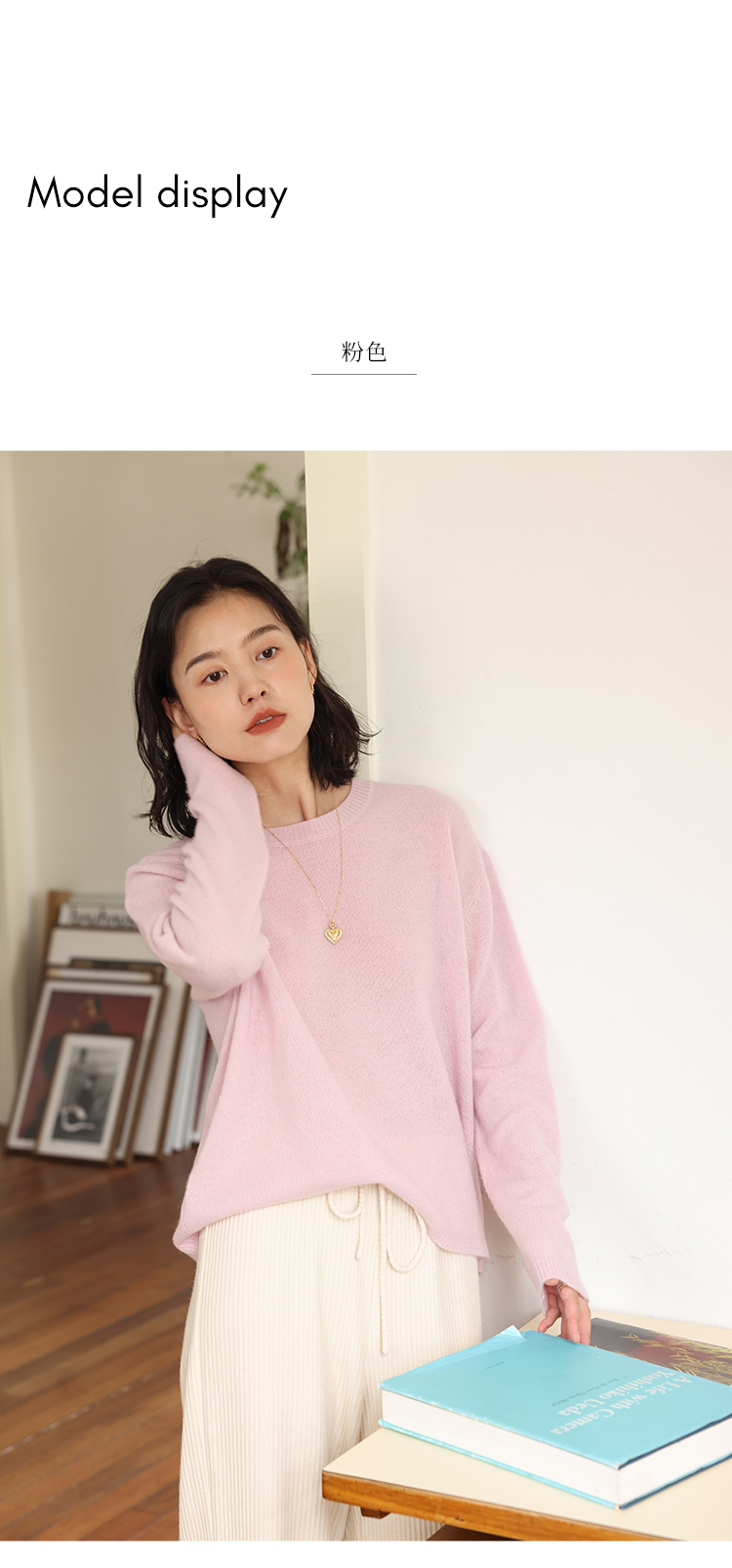 HeyDress100绵羊毛毛衣女秋冬法式圆领宽松针织衫慵懒感套头上衣