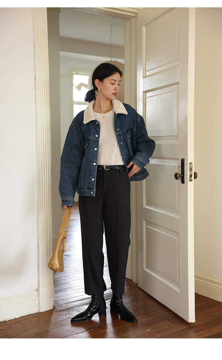 HeyDress法式九分直筒毛呢裤