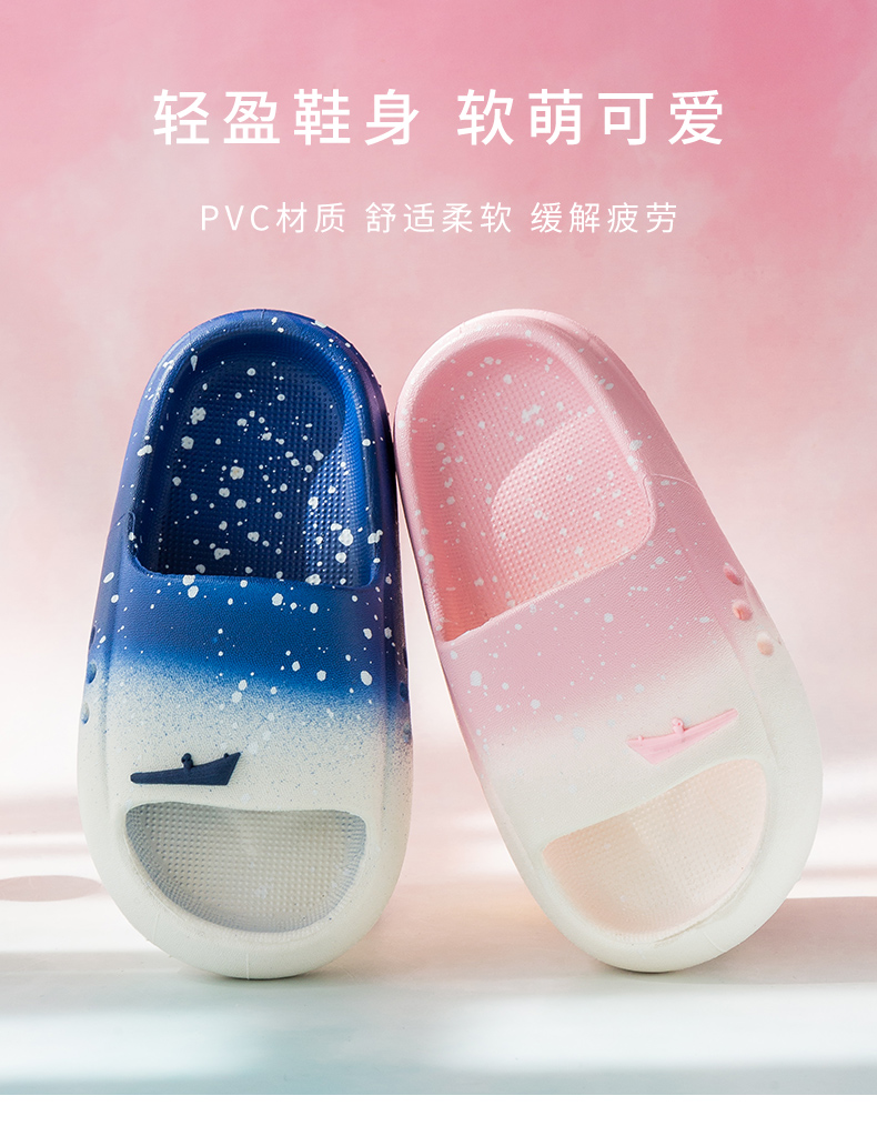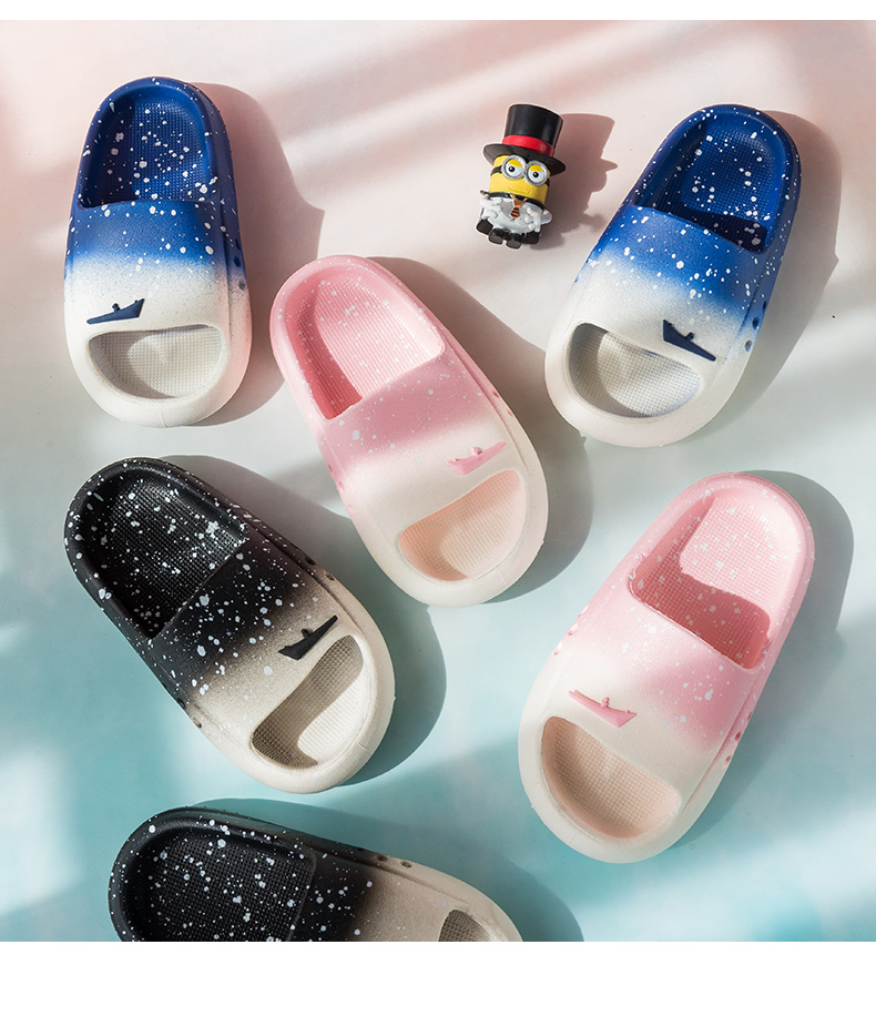【渐变凉拖鞋】夏季时尚渐变男童女童浴室可爱亲子凉拖鞋家居拖鞋软底防滑外穿-QQ