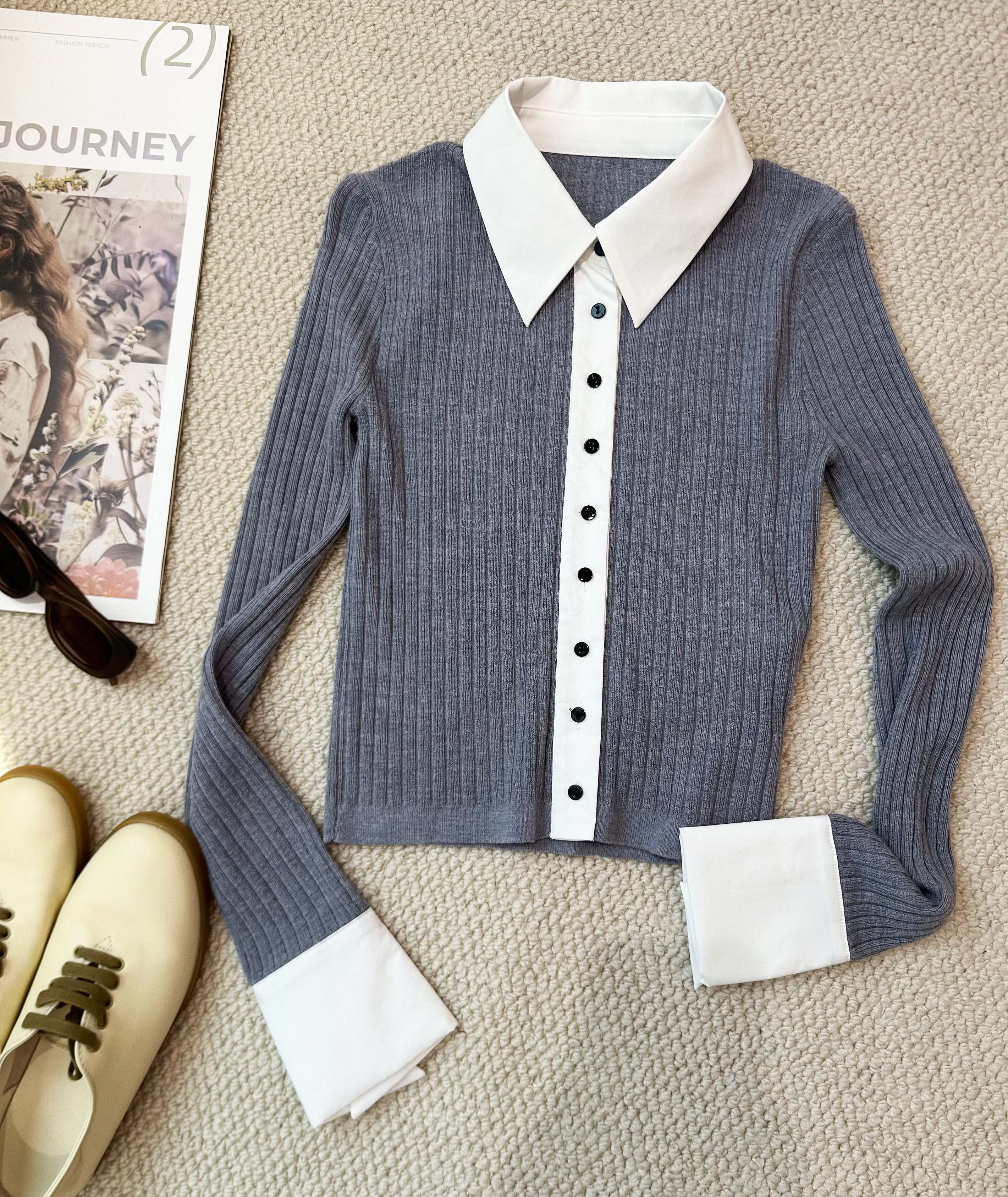 法式别致polo翻领100%羊毛修身开衫· 从内到外给你云朵般自在的感受~