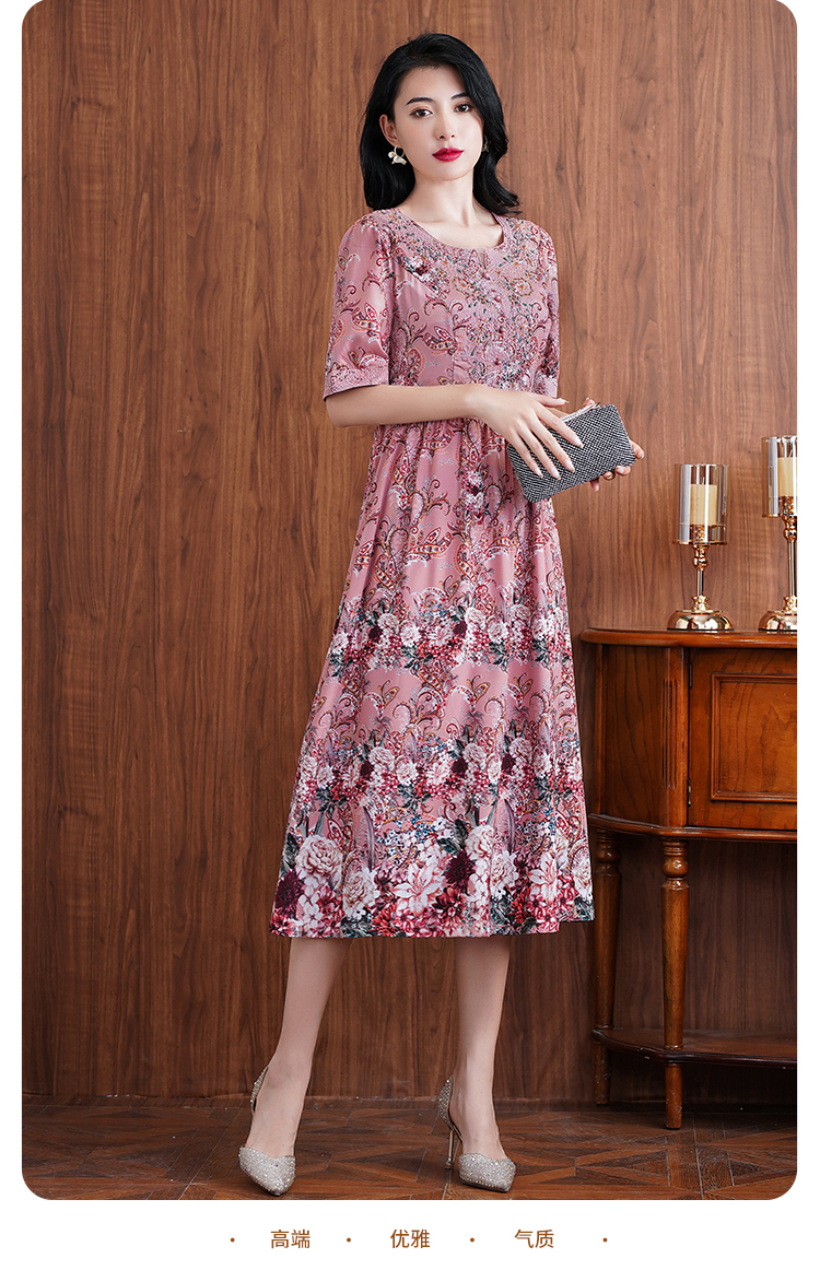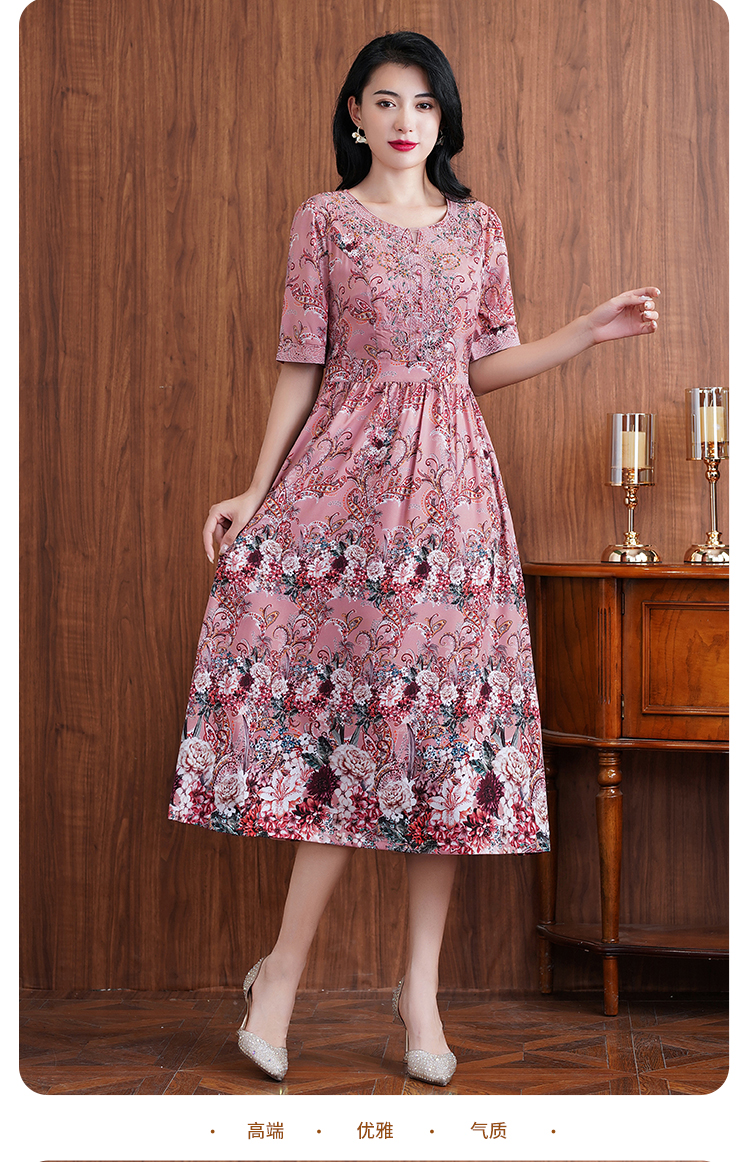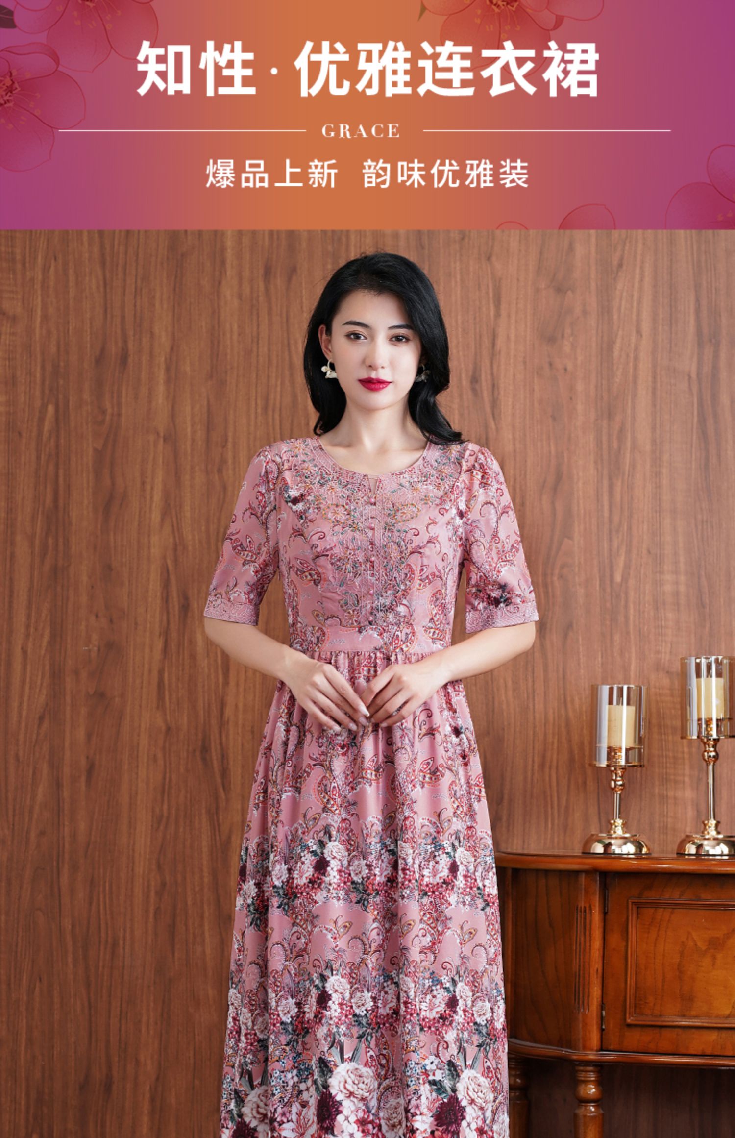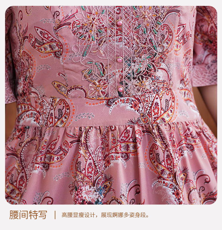 印花连衣裙2022新款夏季刺绣圆领收腰裙贵气 QQX-3015