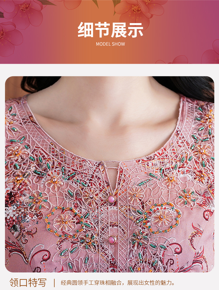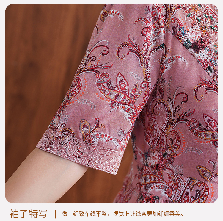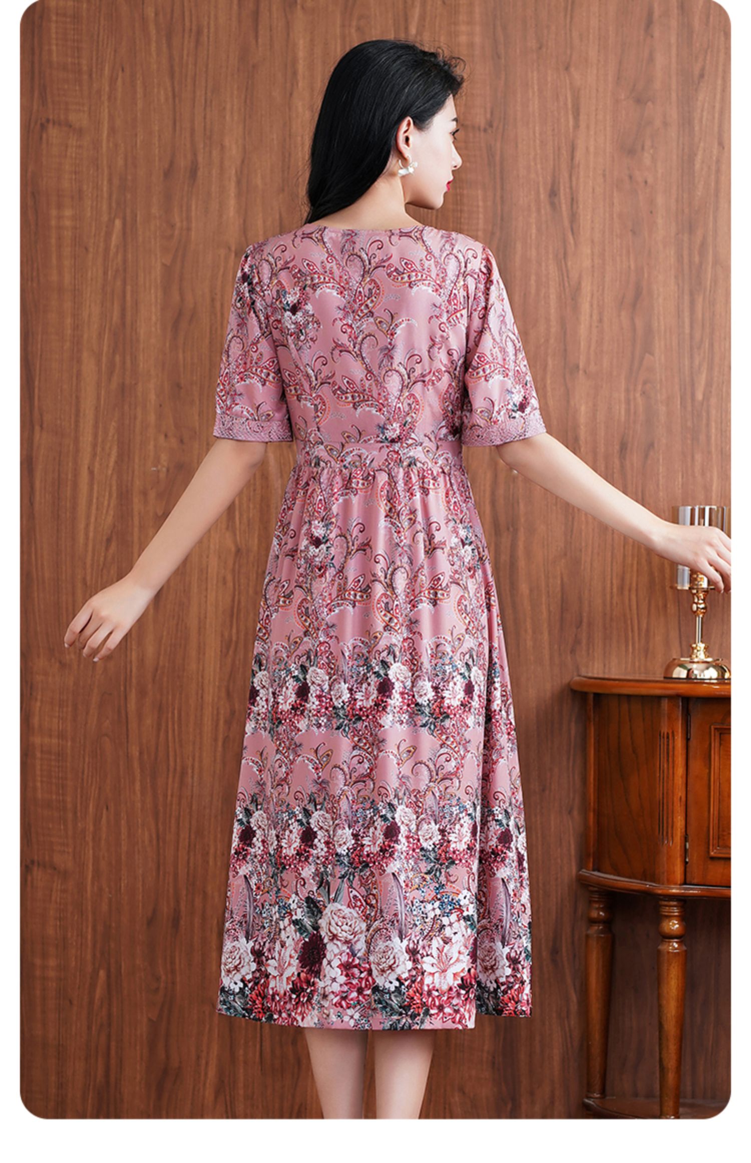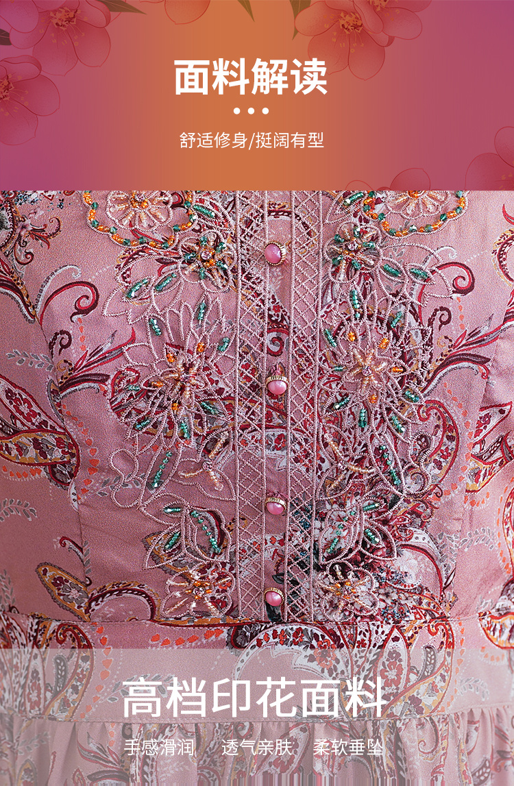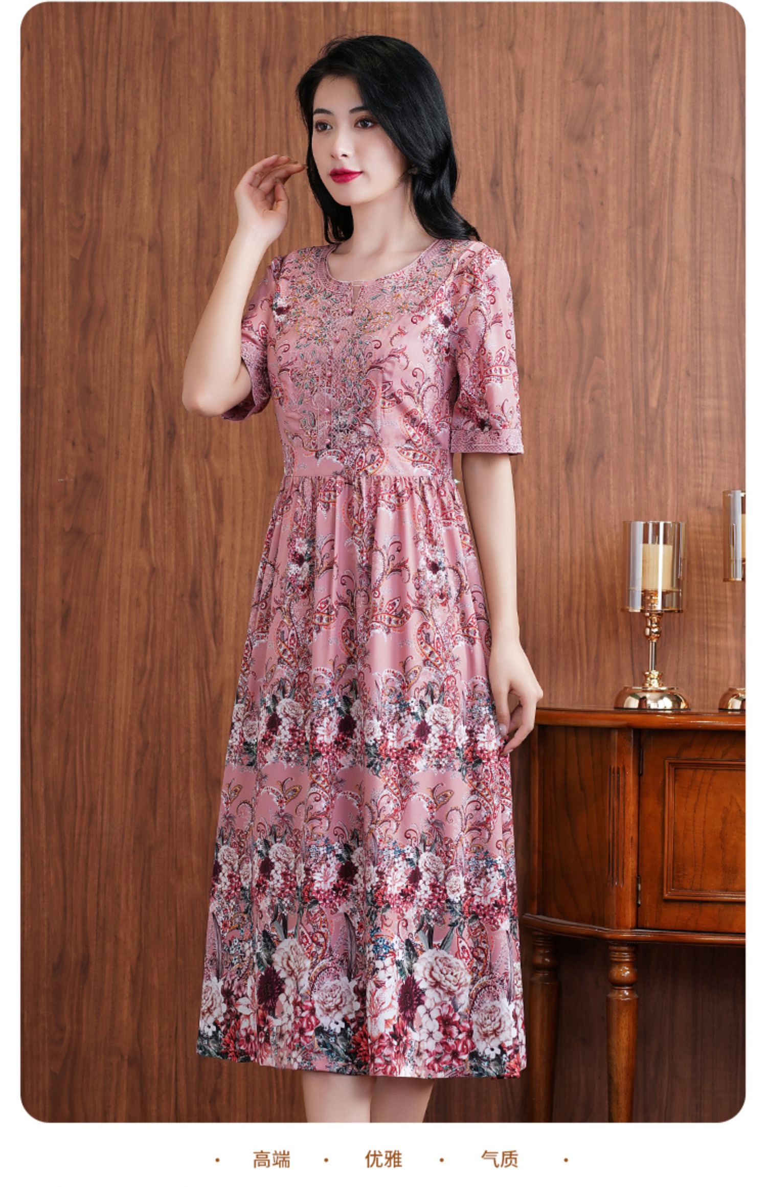 印花连衣裙2022新款夏季刺绣圆领收腰裙贵气 QQX-3015