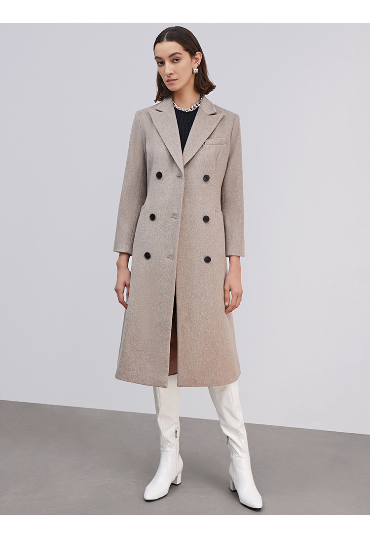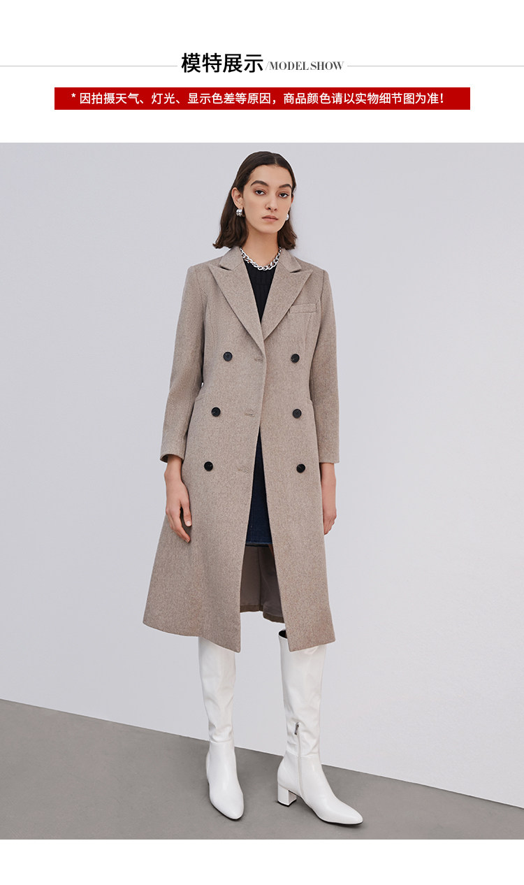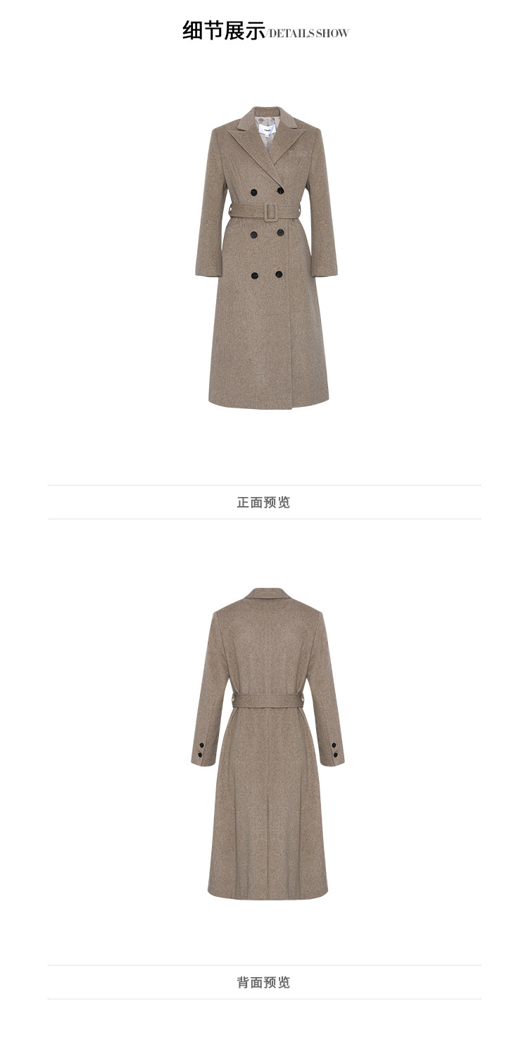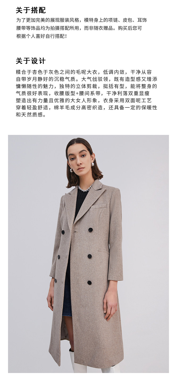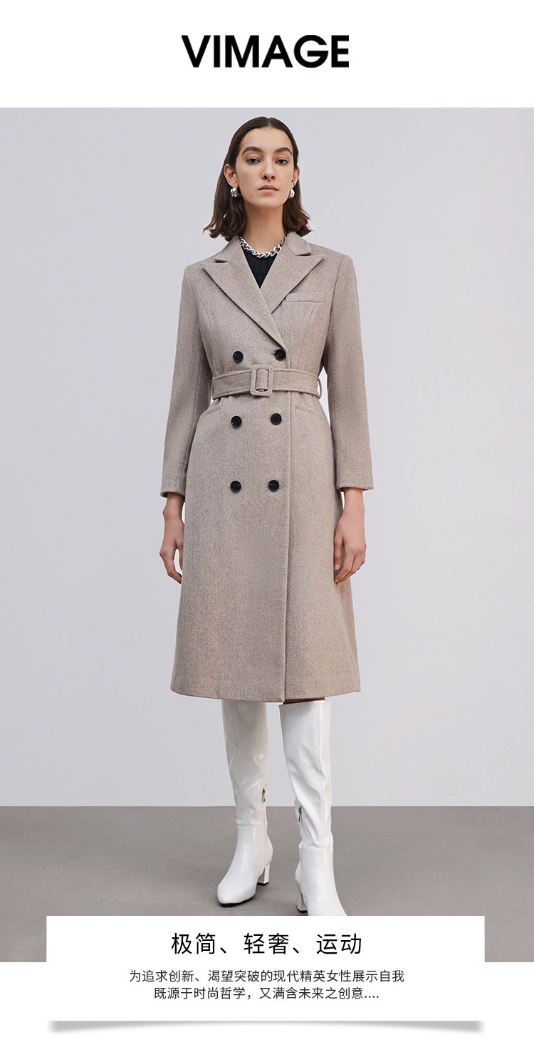 VIMAGE纬漫纪冬季新款挺括帅气复古双排扣长款收腰羊毛呢大衣VD2014003