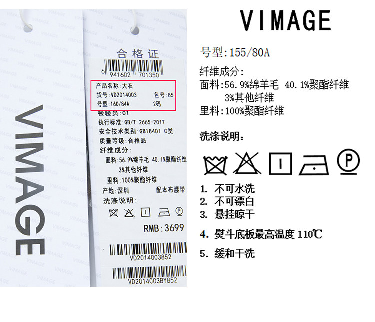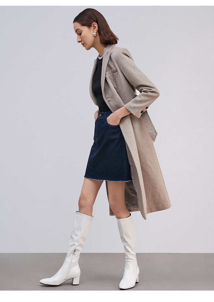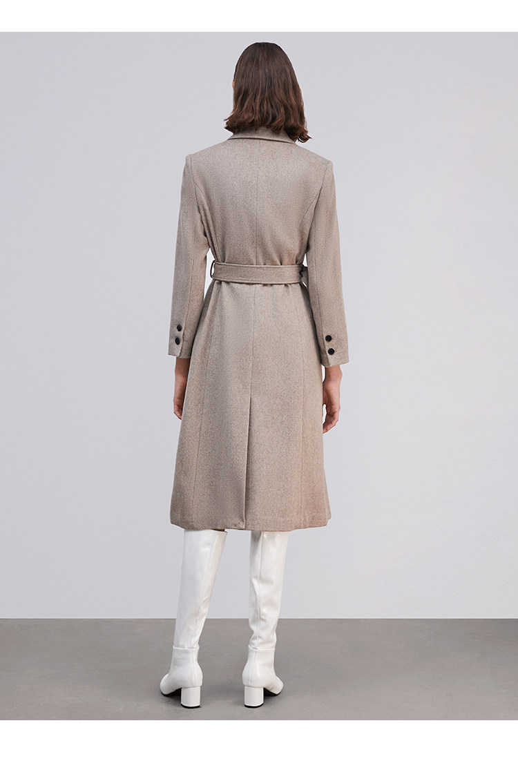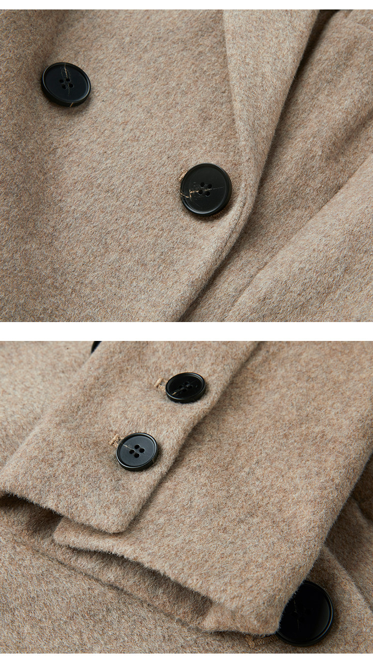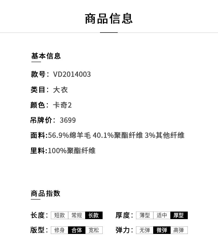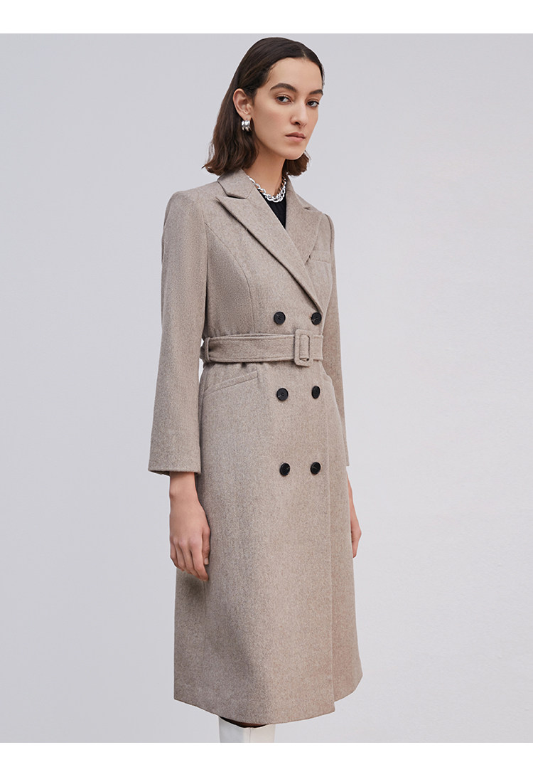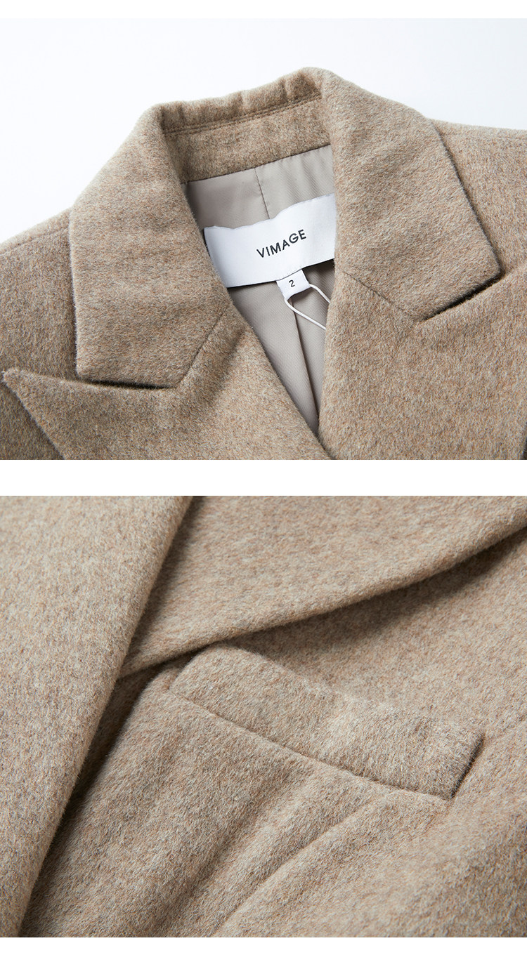 VIMAGE纬漫纪冬季新款挺括帅气复古双排扣长款收腰羊毛呢大衣VD2014003