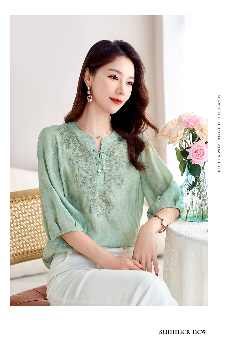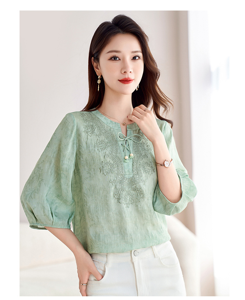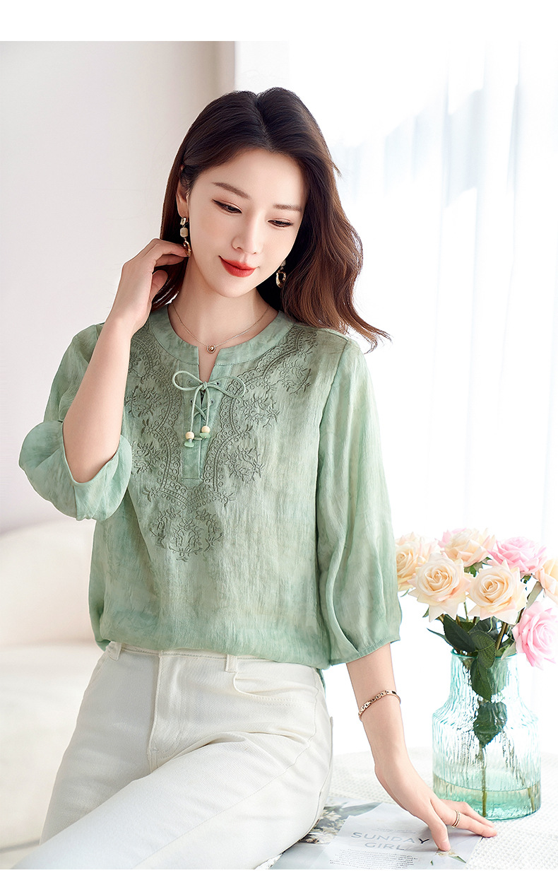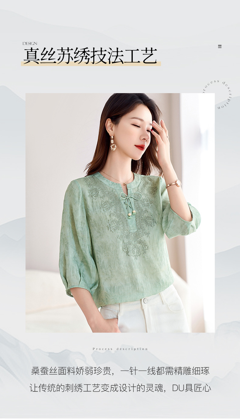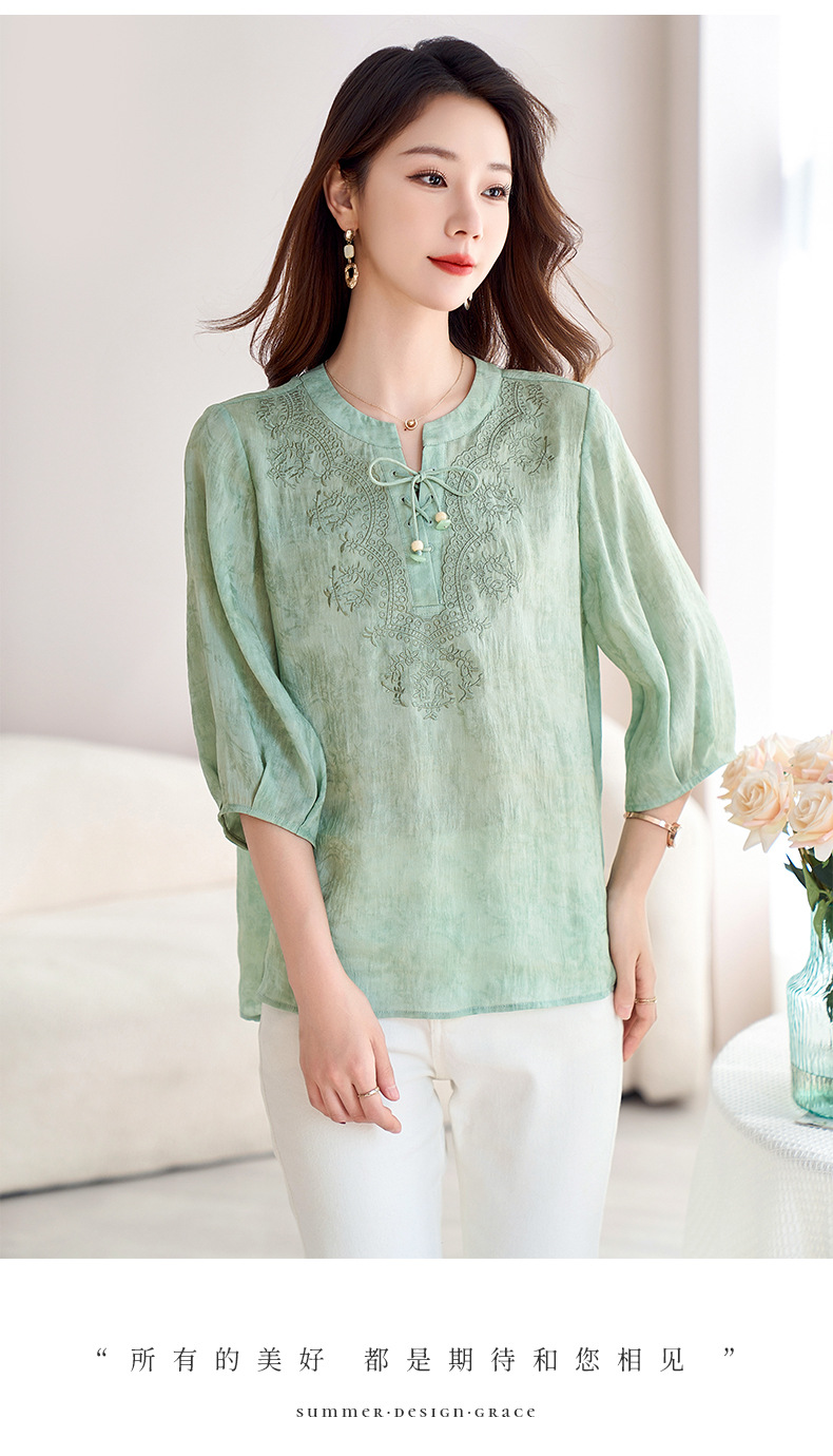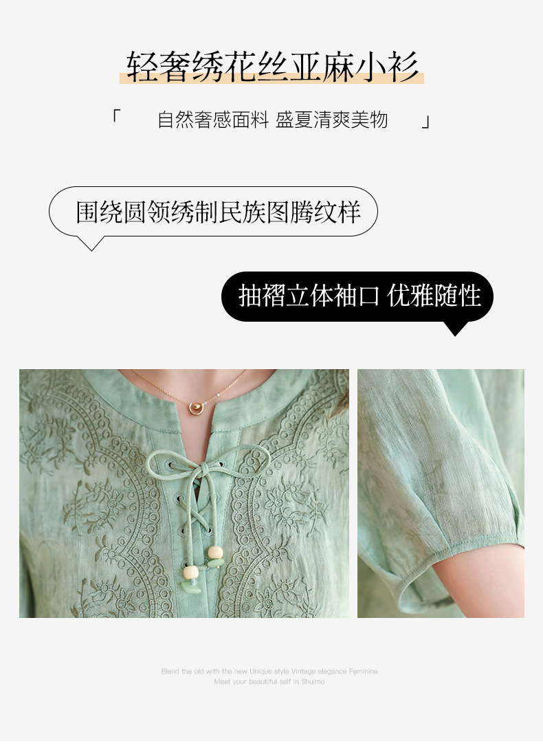 国风新中式真丝丝麻,刺绣衬衫炒色衬衣SM-12599520