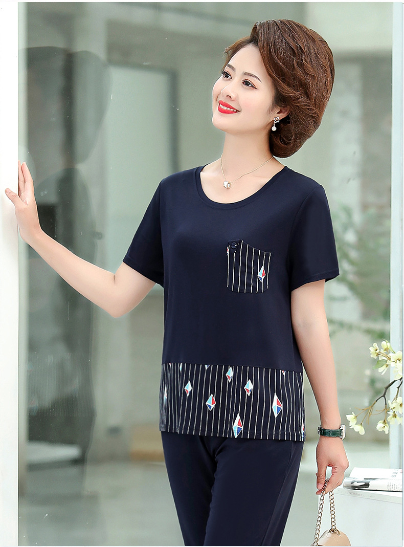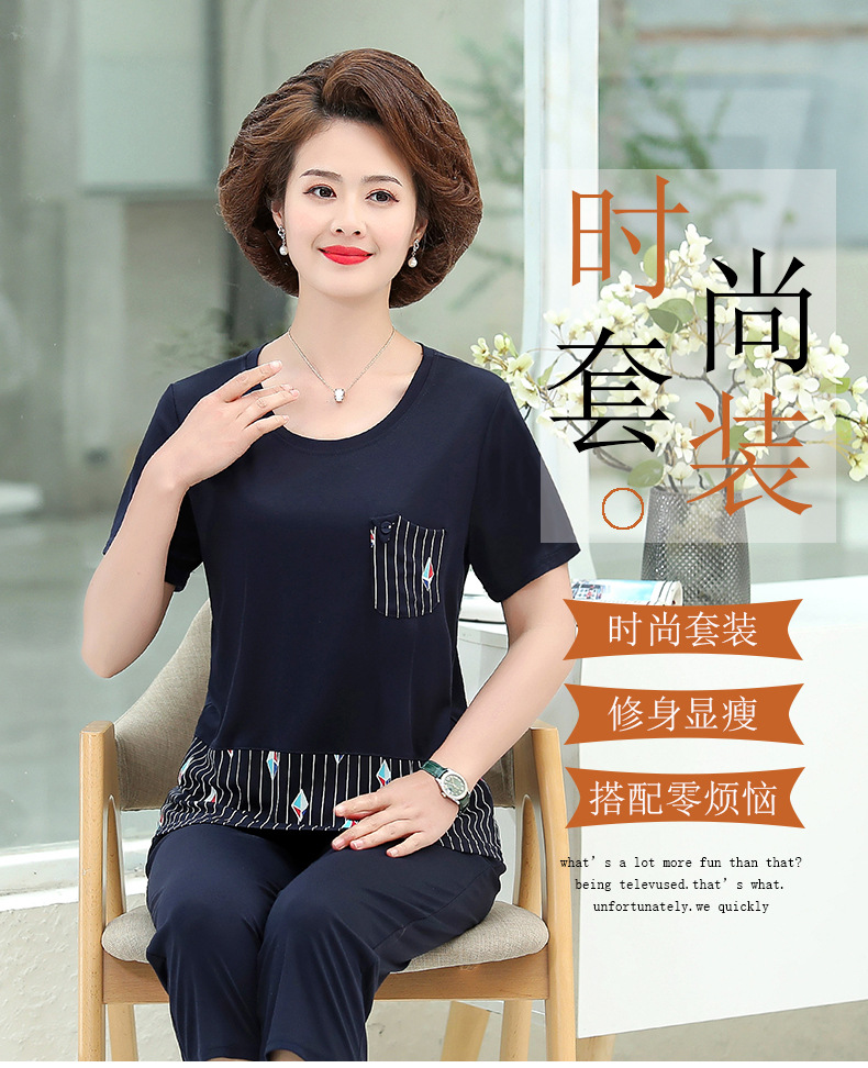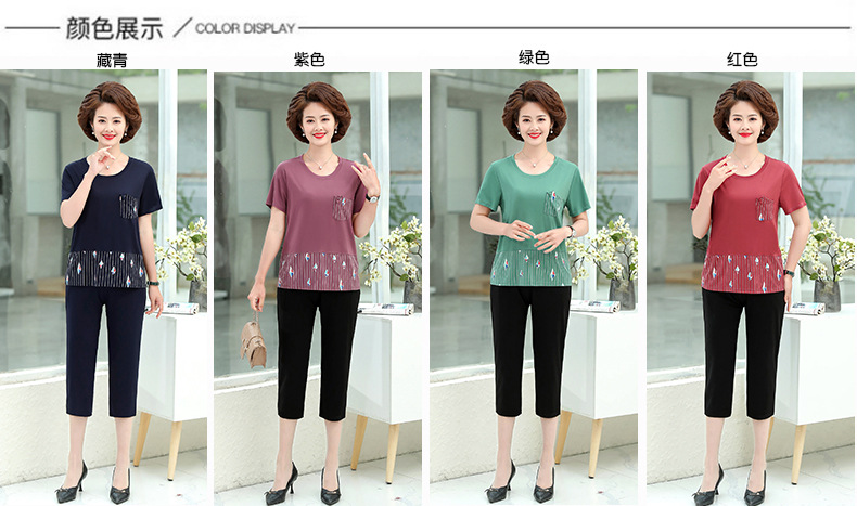 MQ-1099-2021夏装新款洋气阔太太短袖两件套YY