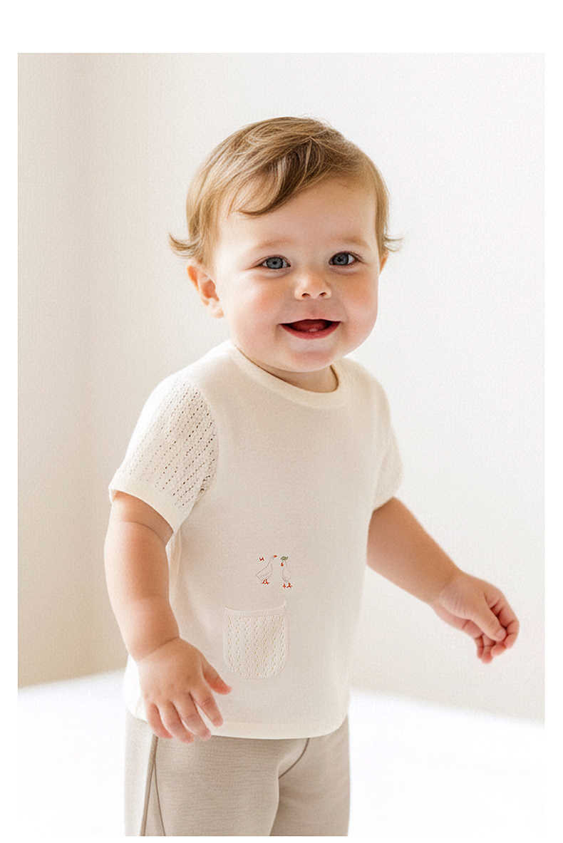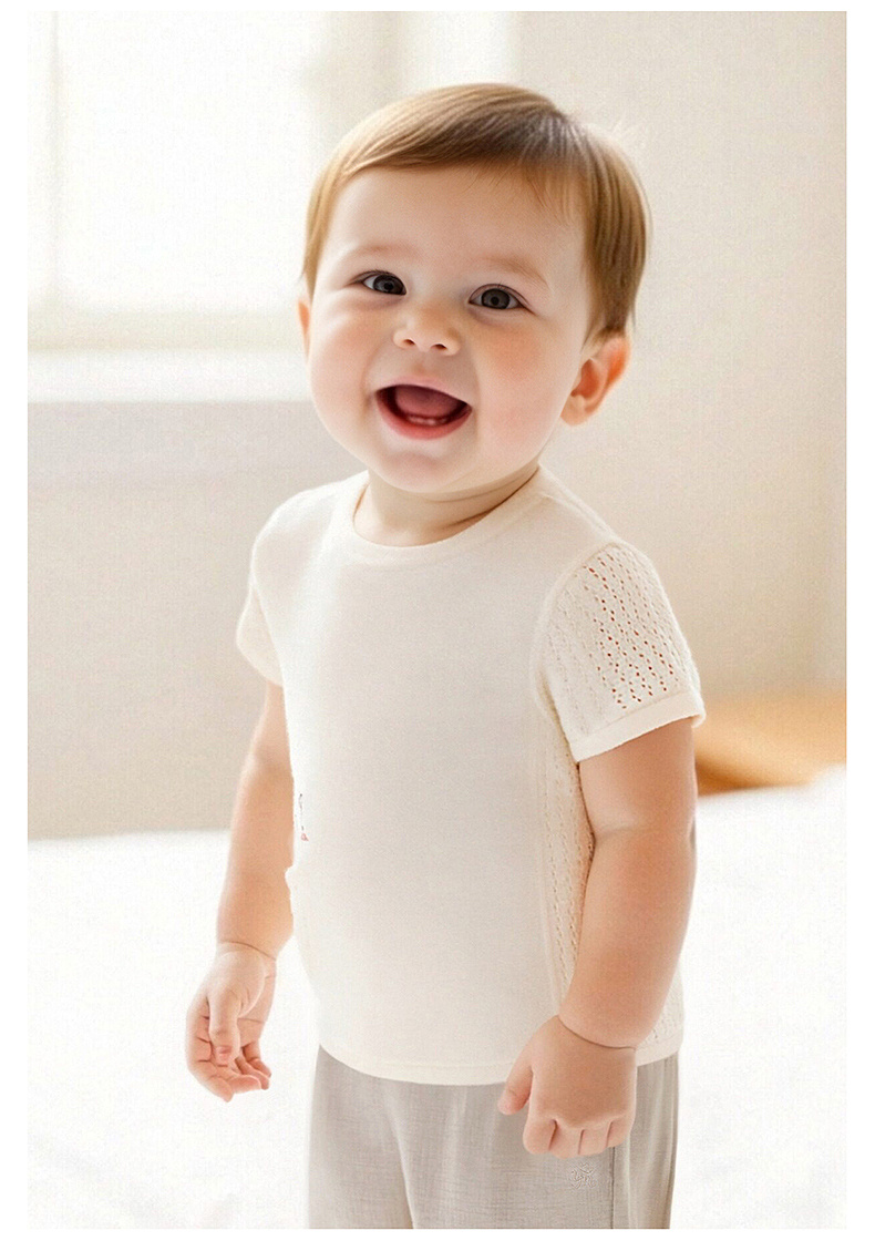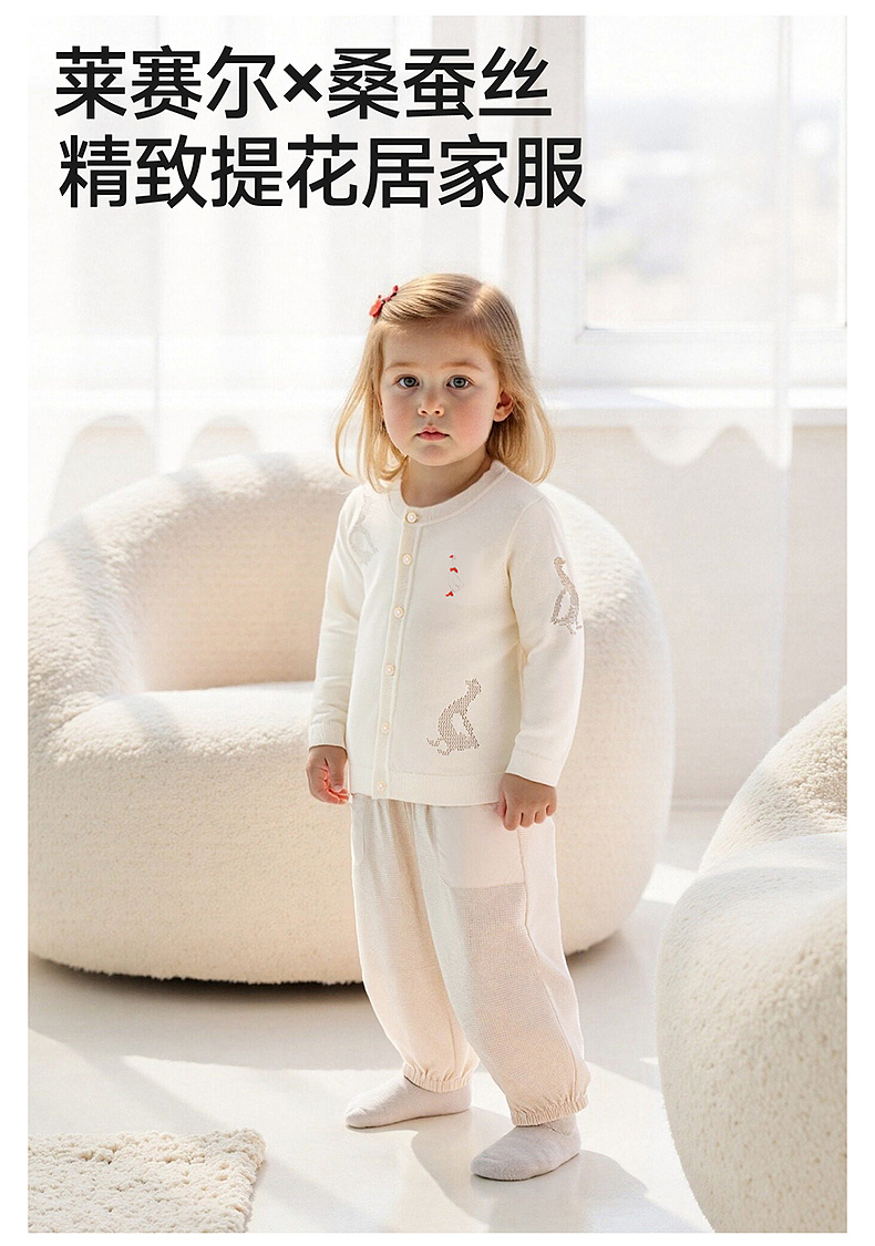 【高定系列】英氏儿童家居服春夏女童男童睡衣莱赛尔蚕丝新款上衣