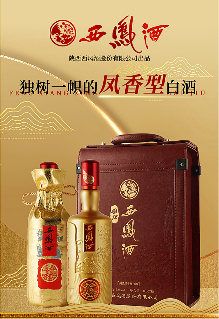 【到手4斤】西凤 金唯炫 凤香型 52度 1L*2瓶【礼盒】