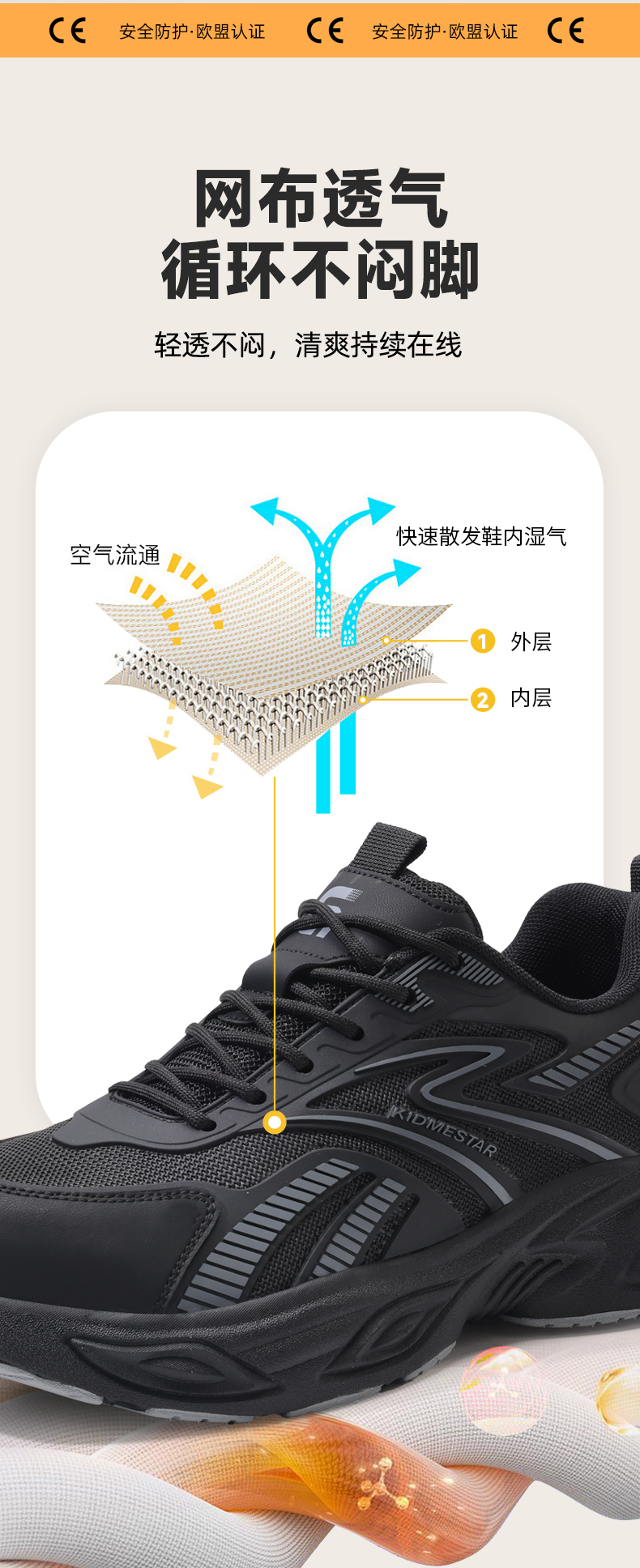 劳保鞋休闲系列防砸防刺穿欧标钢包头凯夫拉EVA底轻便舒适