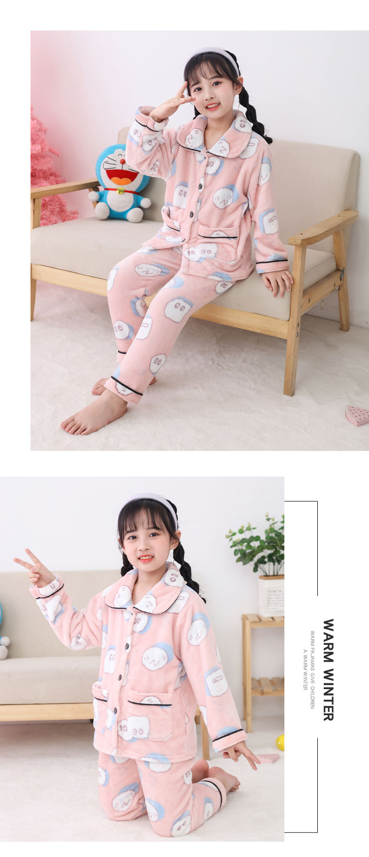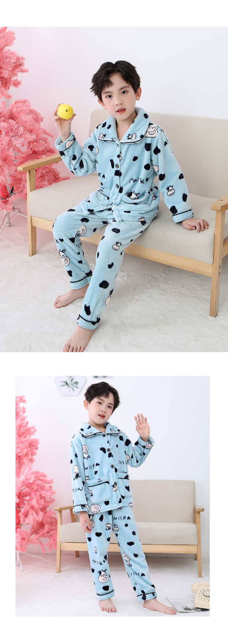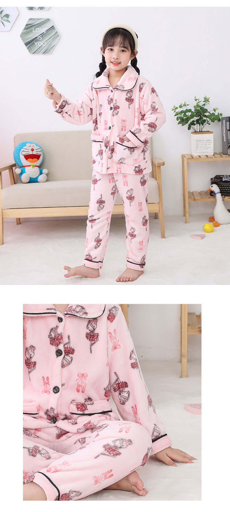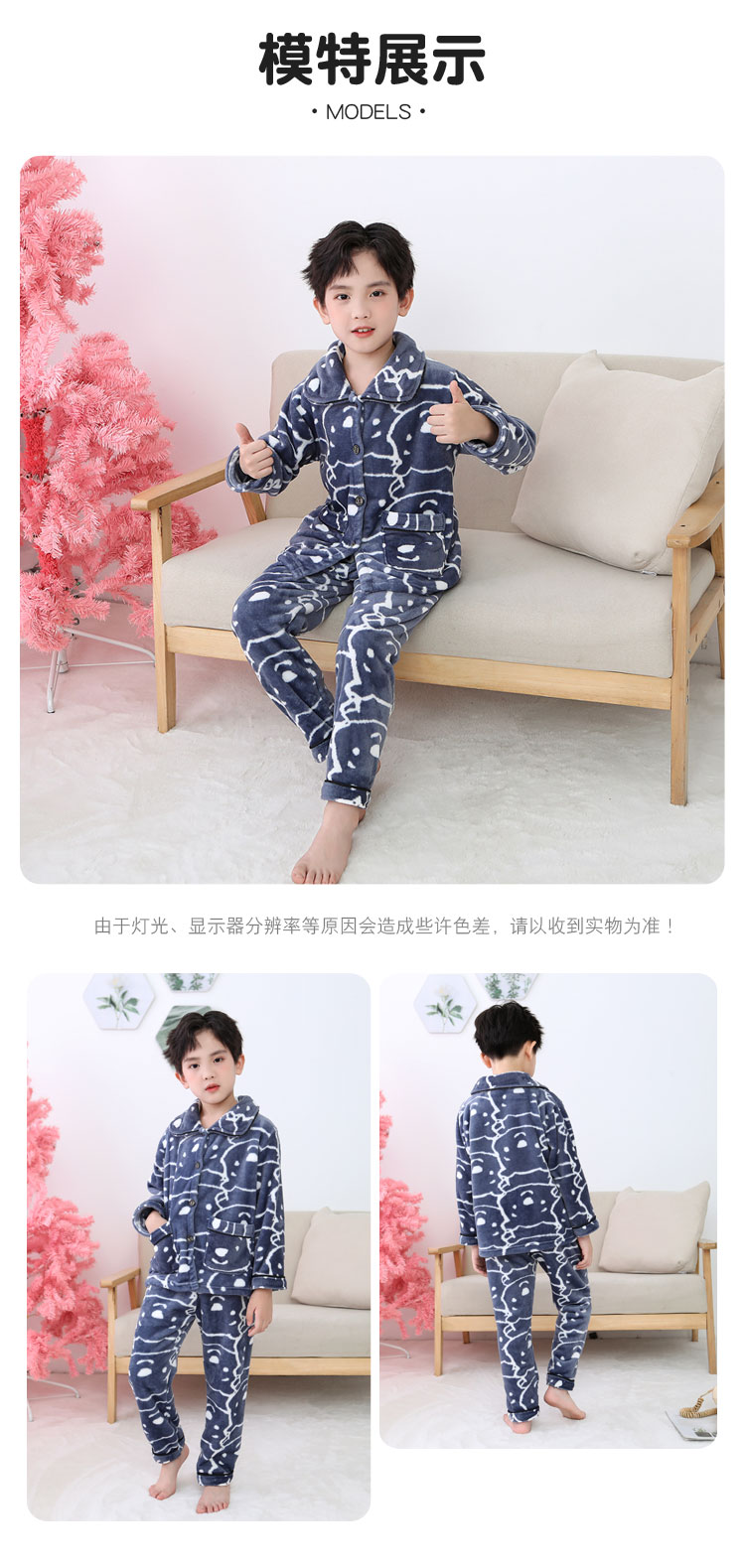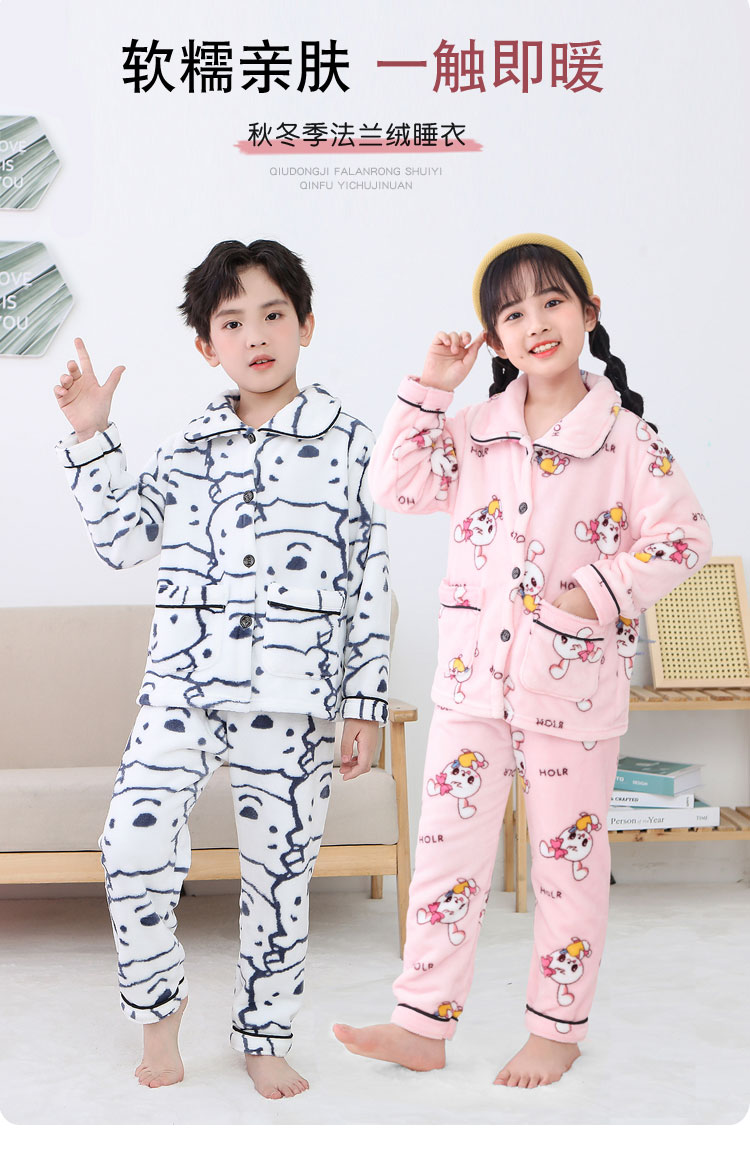 【法兰绒家居套装】亲子法兰绒睡衣套装秋冬新款男女童家居服套装亲子装加绒加厚童装2205 100%