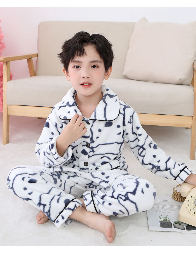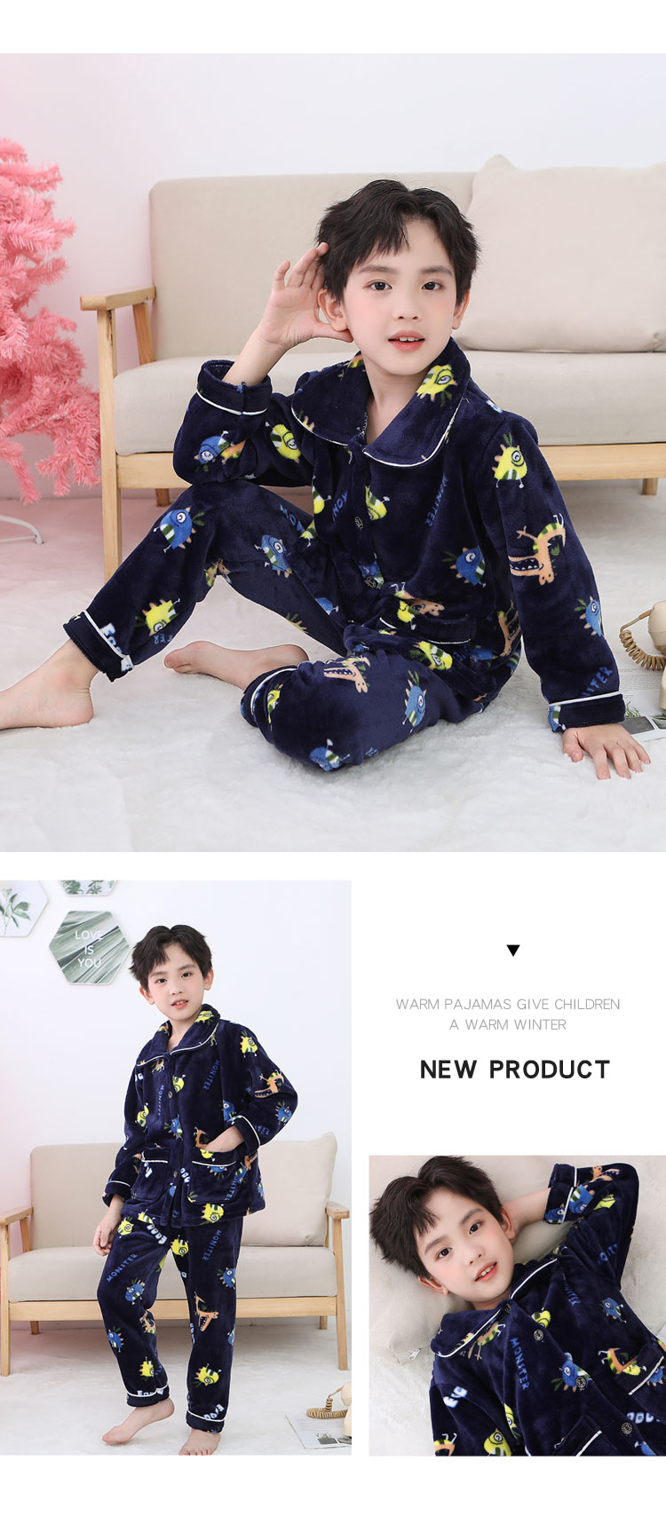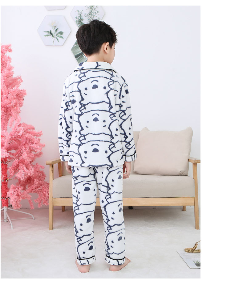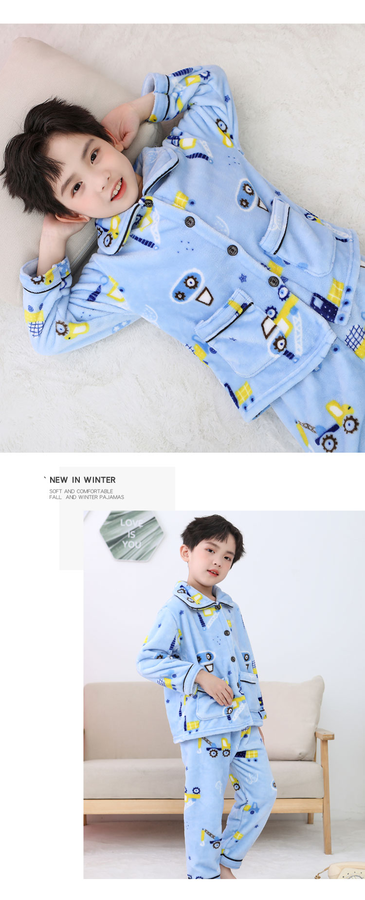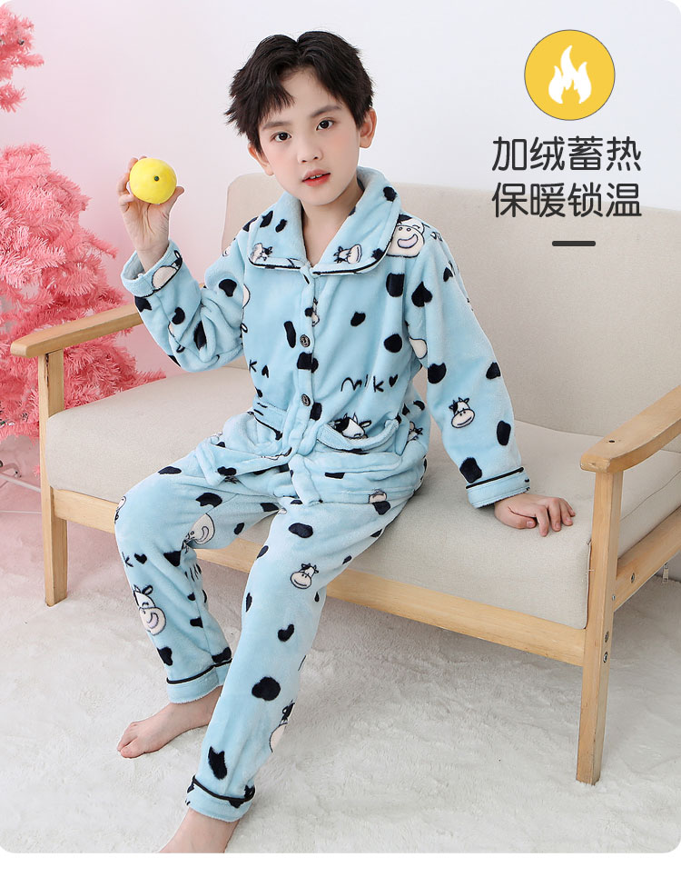 【法兰绒家居套装】亲子法兰绒睡衣套装秋冬新款男女童家居服套装亲子装加绒加厚童装2205 100%