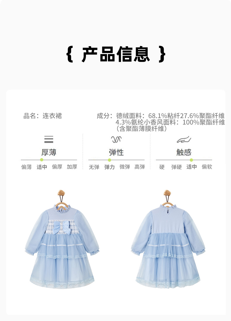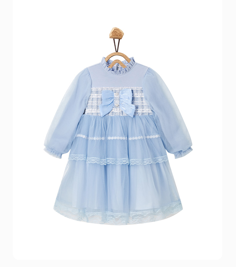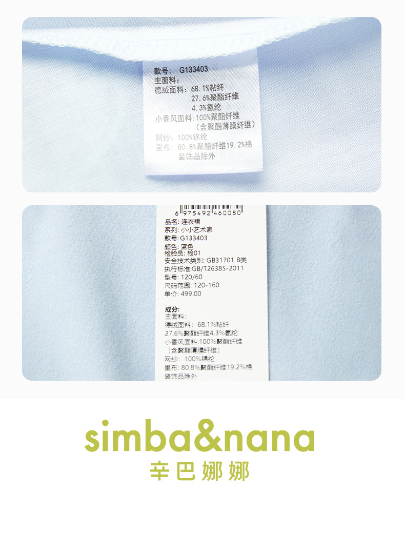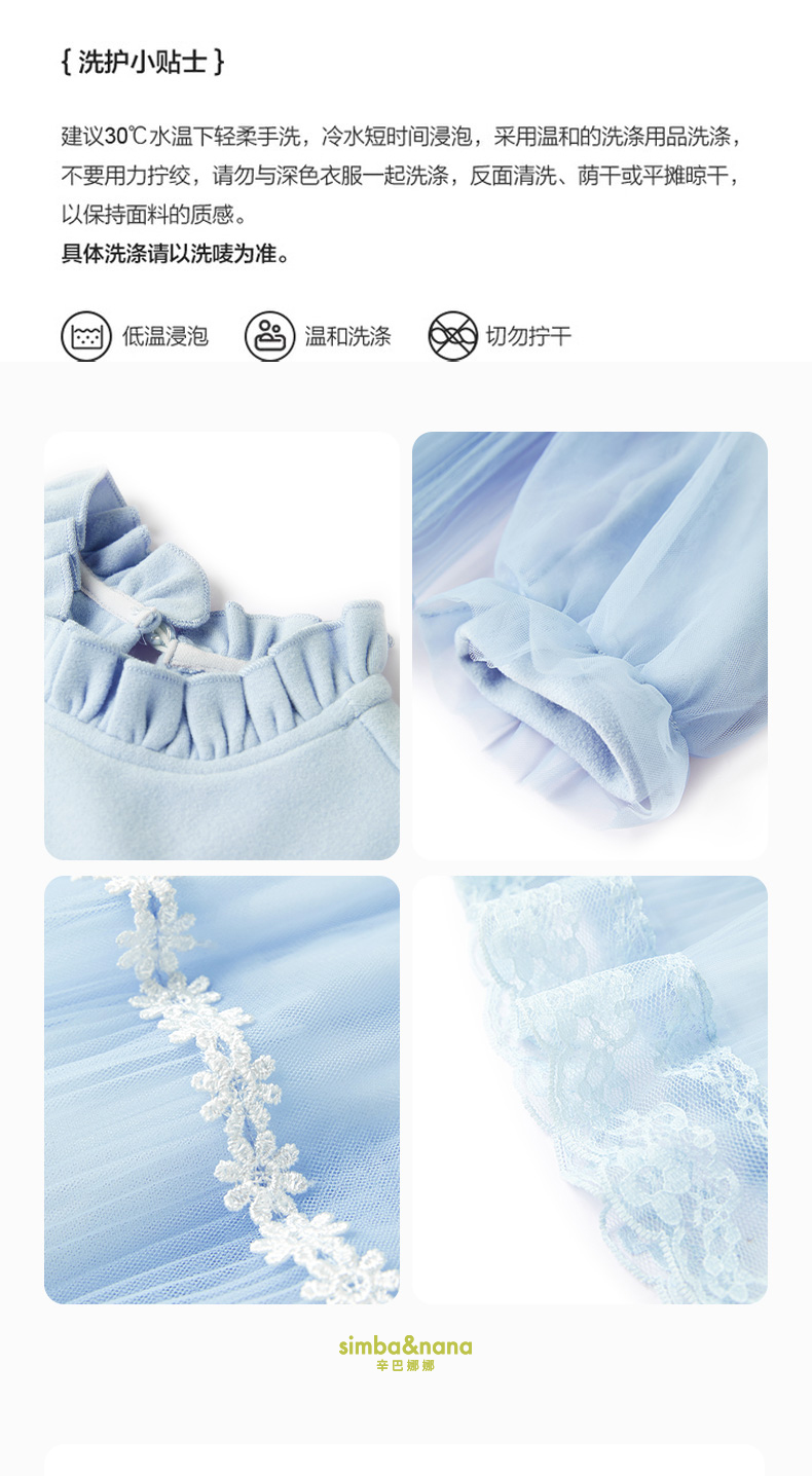 【辛巴娜娜】simbanana春秋季女童潮流休闲竖银丝绒拼网纱连衣裙