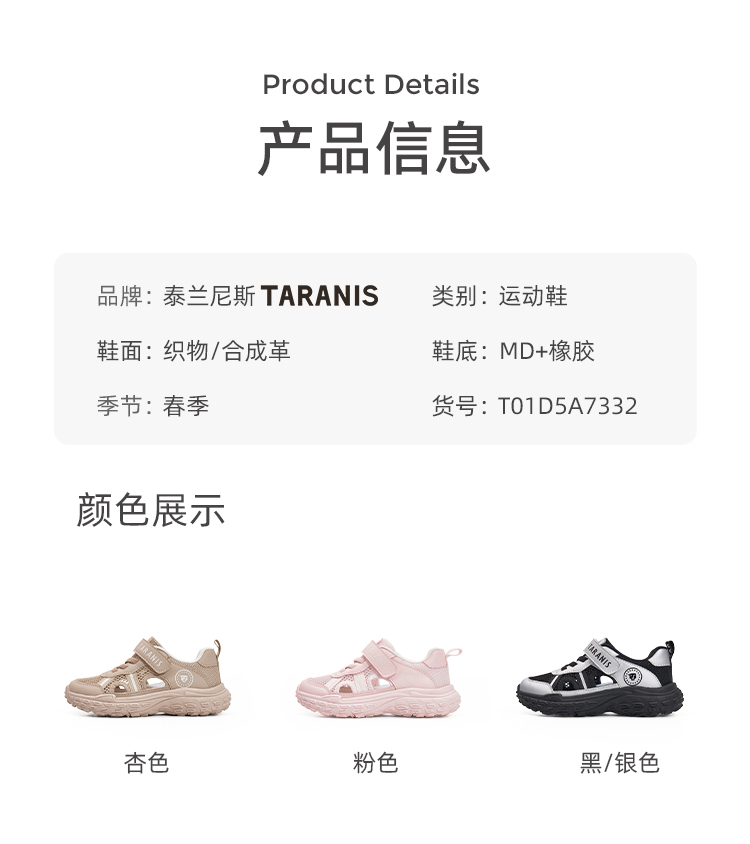 【24-38码】泰兰尼斯中大童春季大孔透气网布校园畅跑运动鞋T01D5A7332