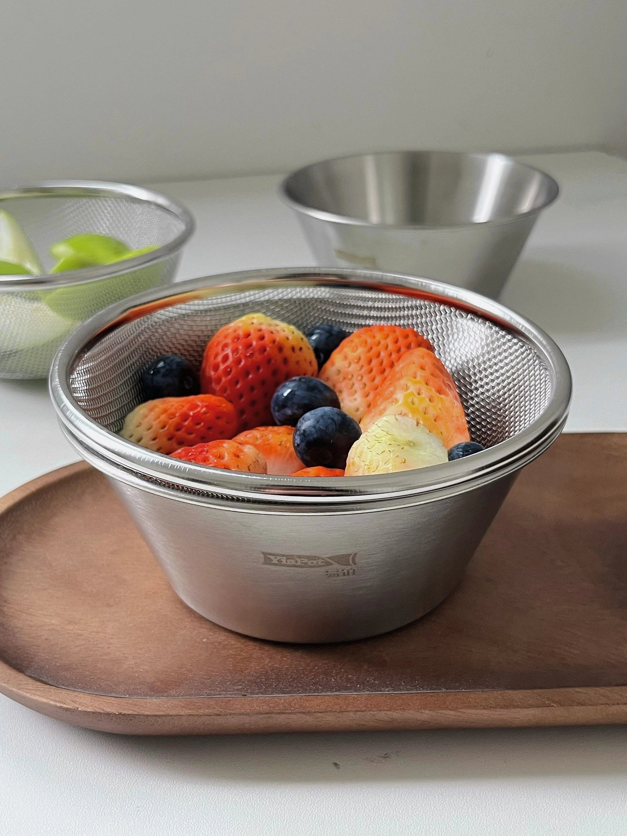 【品名】迷你不锈钢水果碗两件套 【材质】304食品级不锈钢 【规格】沥水网篮+不锈钢碗 【发货地】广东 【发货快递】中通 【发货时效】3-5天 【不发货地区】新疆西藏,港澳台不发 【售后说明】不支持拦截拒收,质量问题请于24小时内联系客服