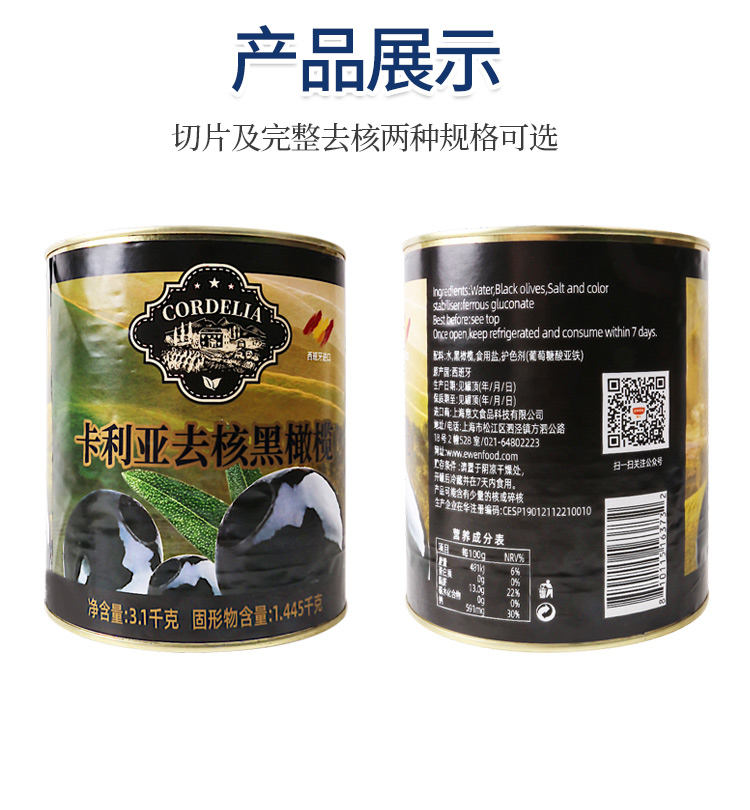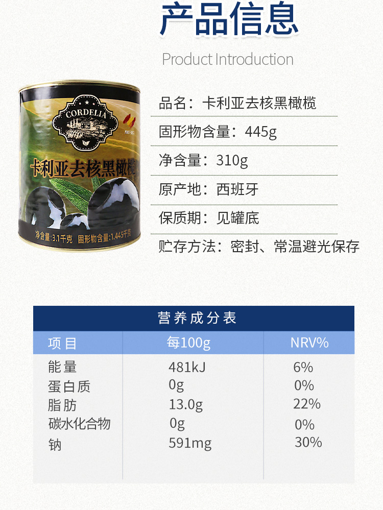 卡利亚去核黑橄榄3.1kg 西班牙进口