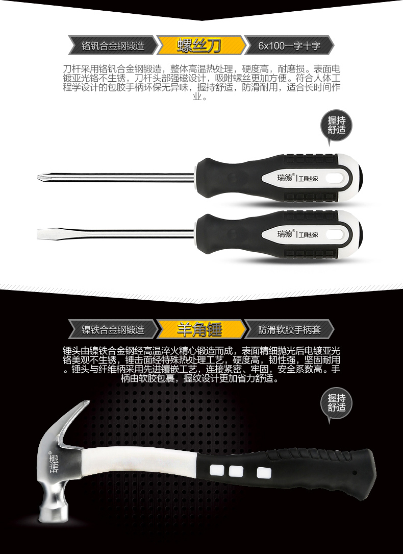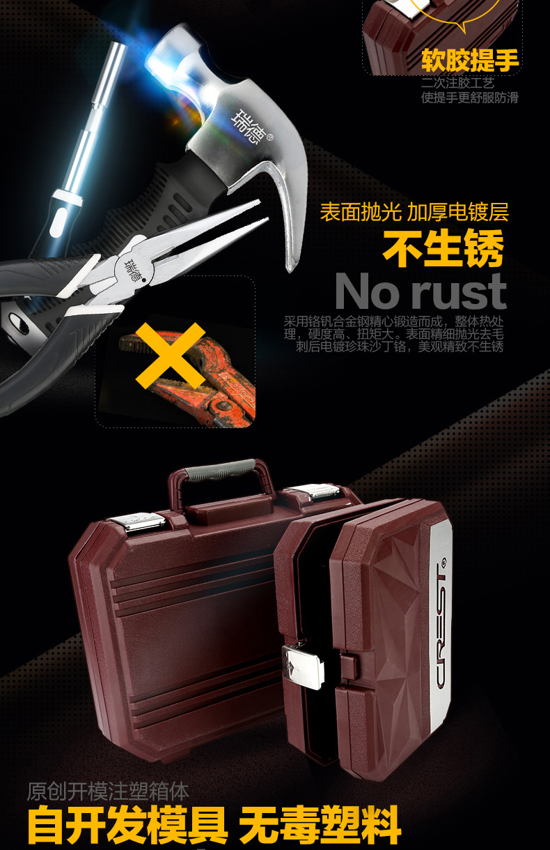 瑞德家用工具组套五金套装维修电工组合家庭日常修理电钻万能组合