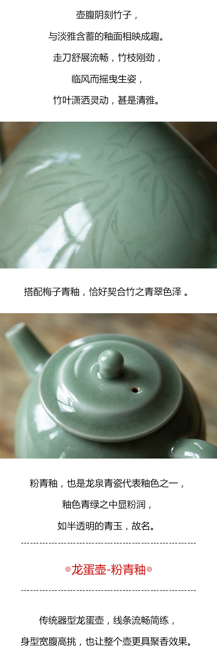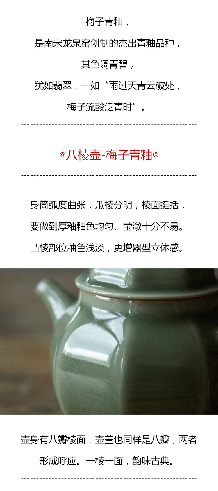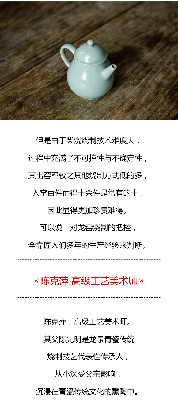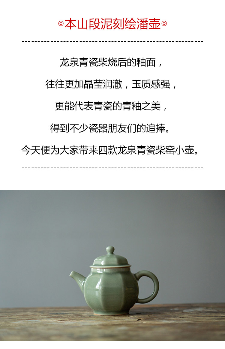 茶香记 龙泉青瓷陈克萍柴窑小壶180ml八棱壶龙蛋壶竹叶圆珠茶壶
