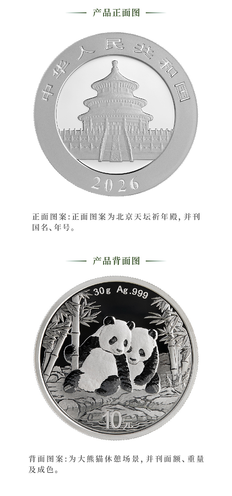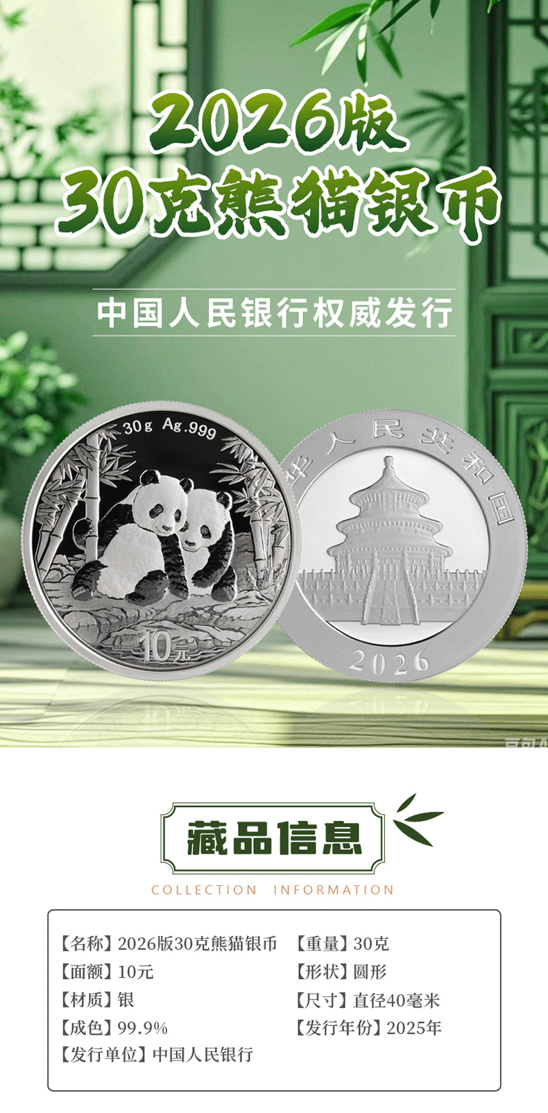 【新品现货】中国金币2026版熊猫金银纪念币 中国人民银行限量发行