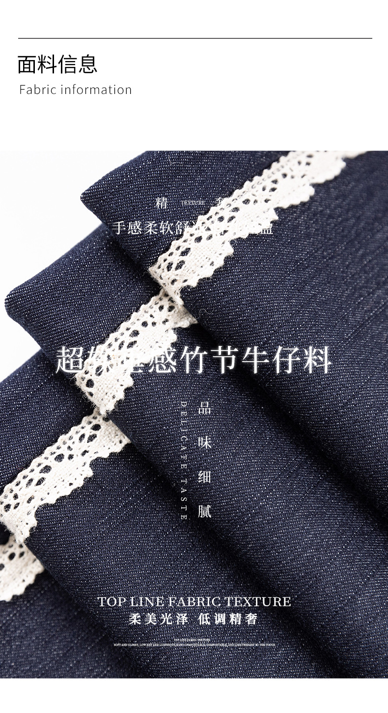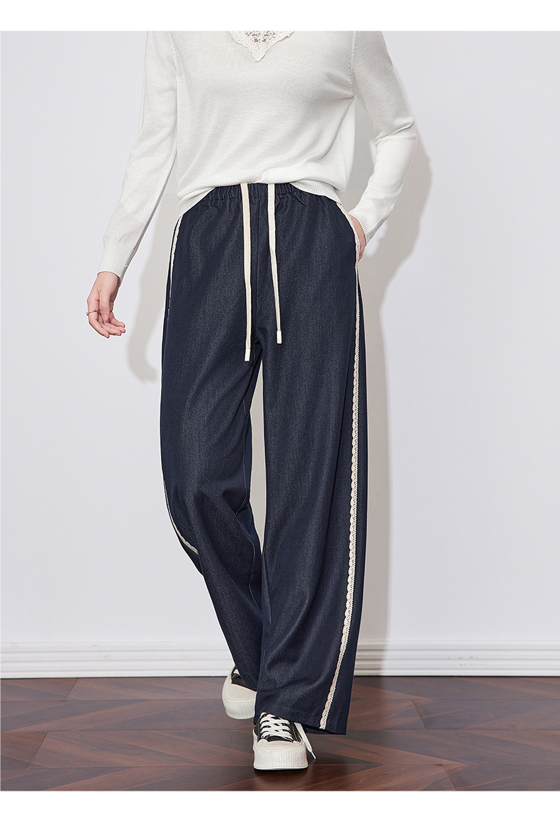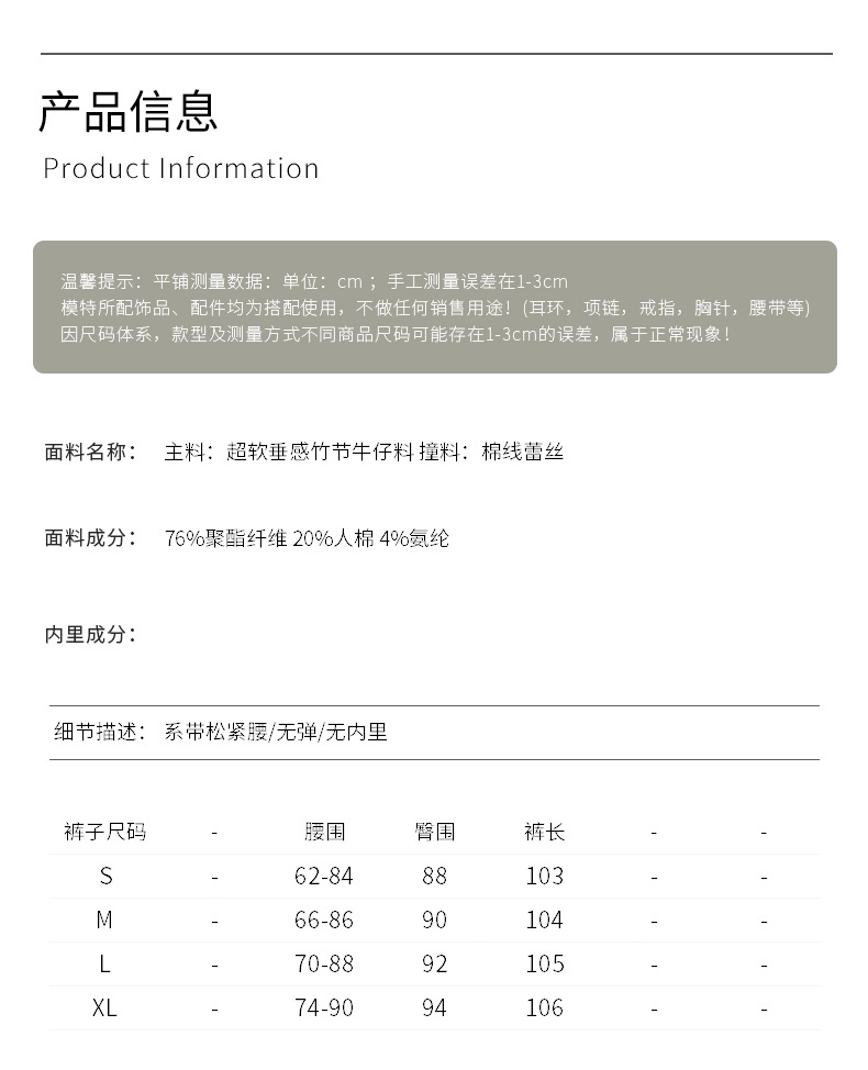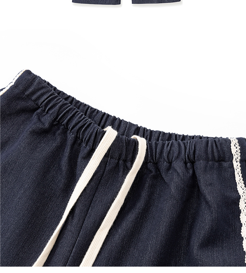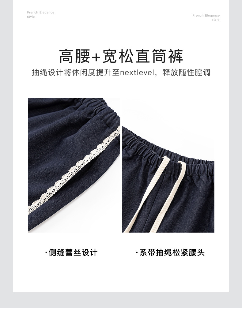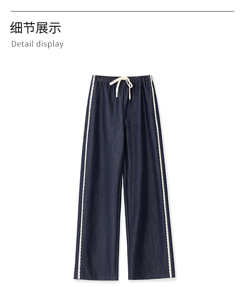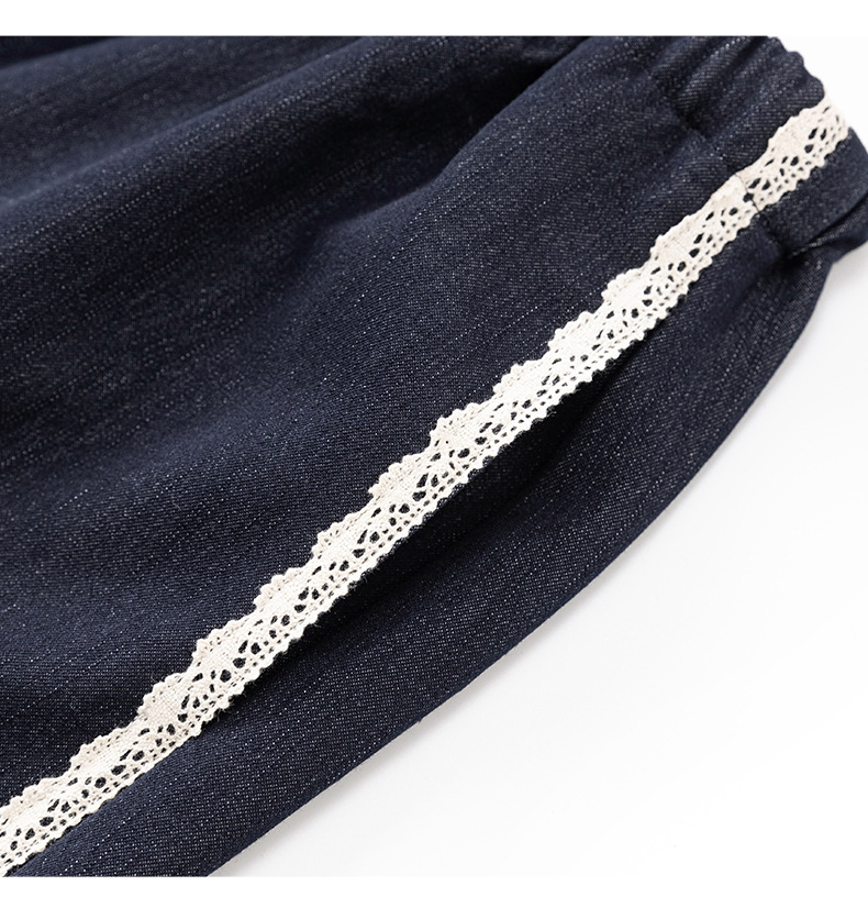 【高货wl】全新升级【铂金会员238/天猫319/差价81】(81733) 洛诗琳春季新款复古超软怀旧撞色棉线蕾丝边阔腿牛仔裤