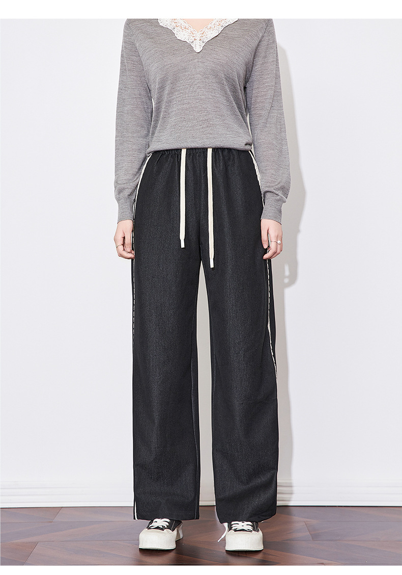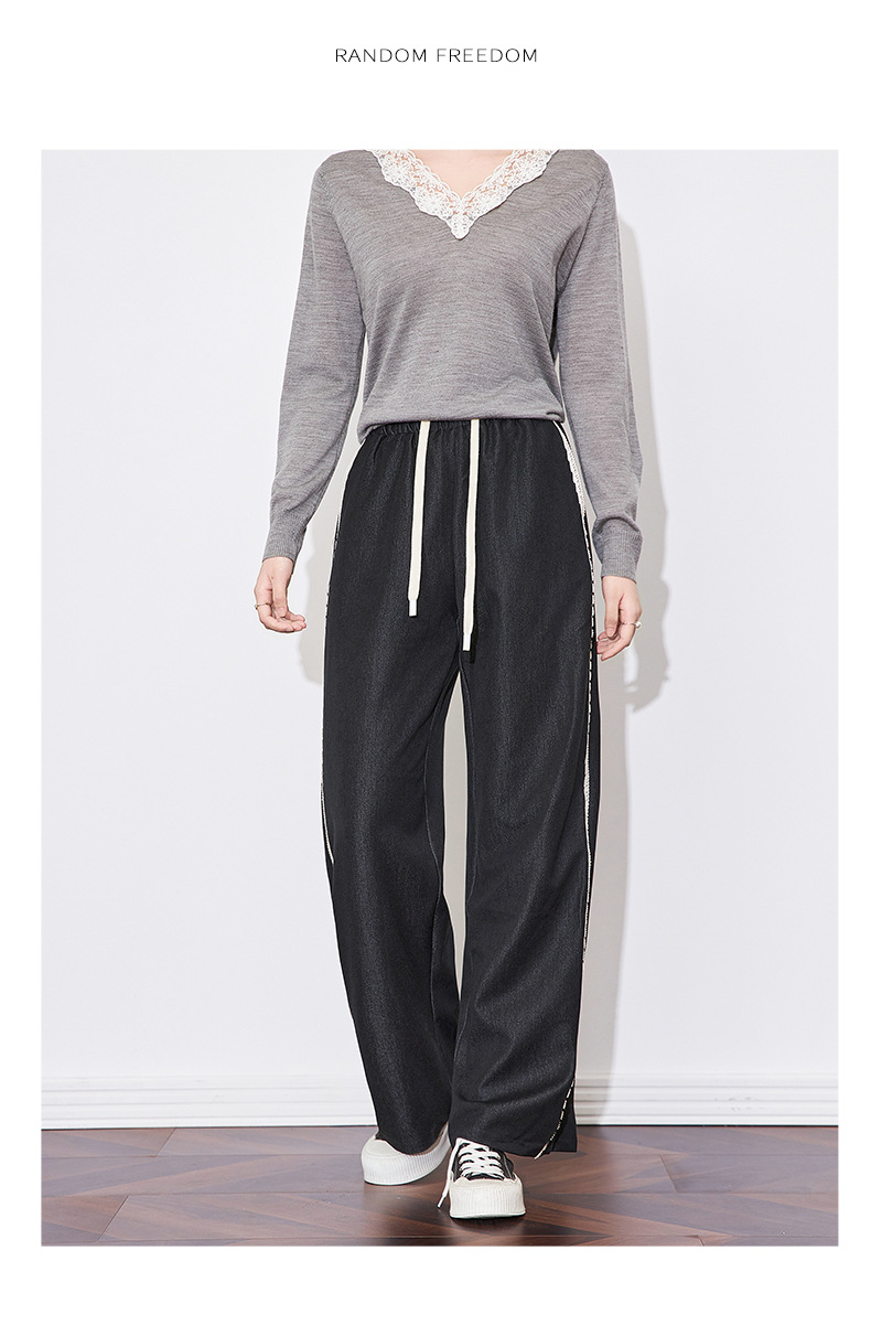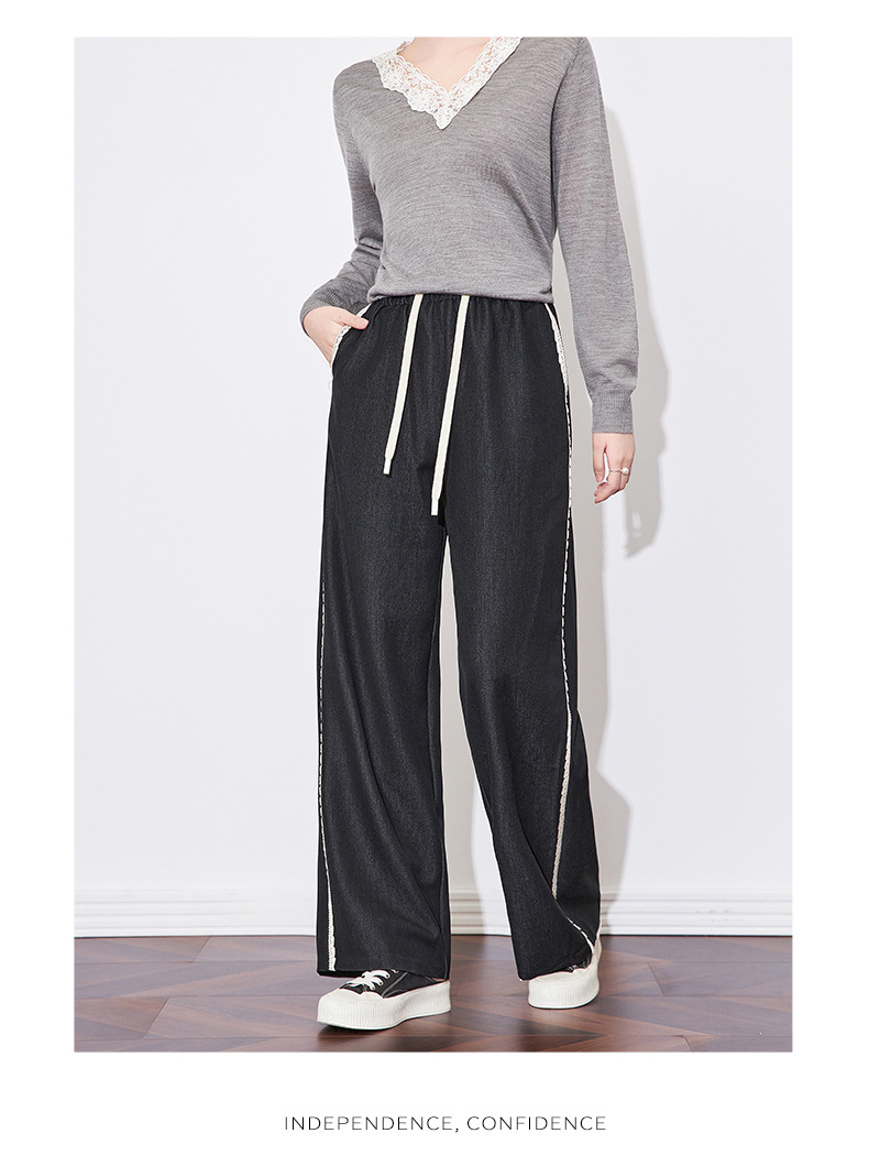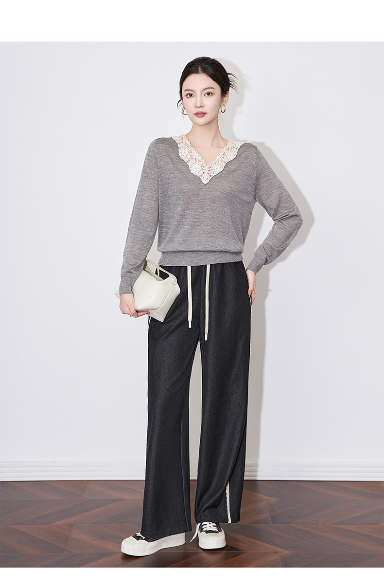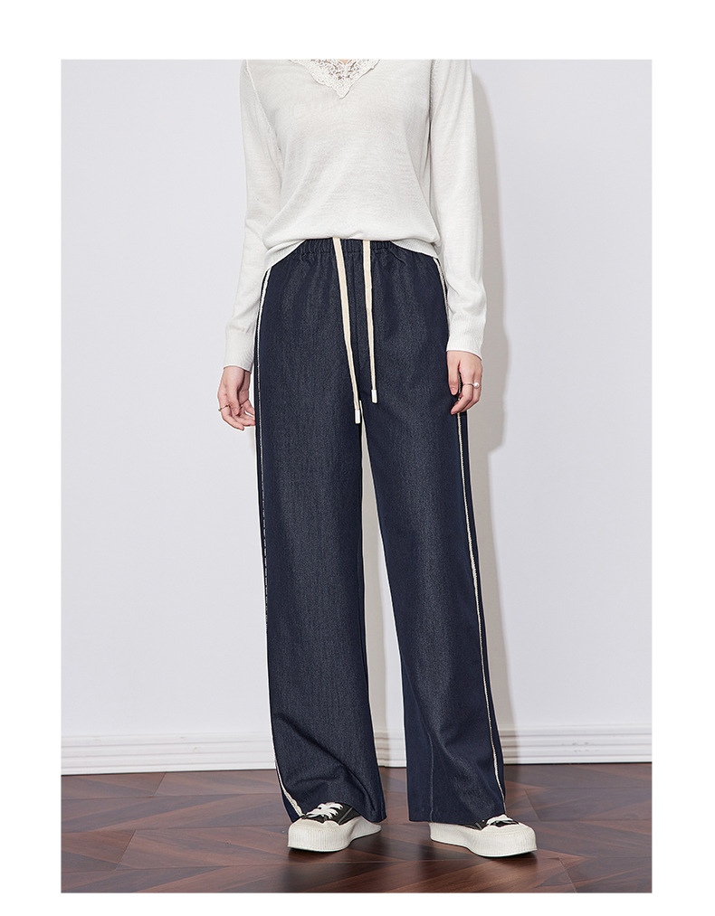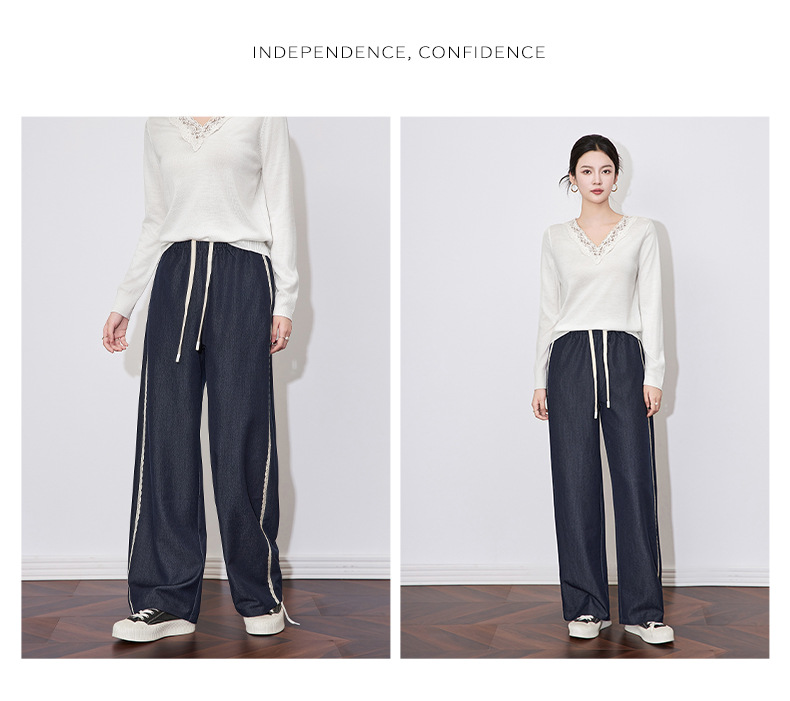 【高货wl】全新升级【铂金会员238/天猫319/差价81】(81733) 洛诗琳春季新款复古超软怀旧撞色棉线蕾丝边阔腿牛仔裤