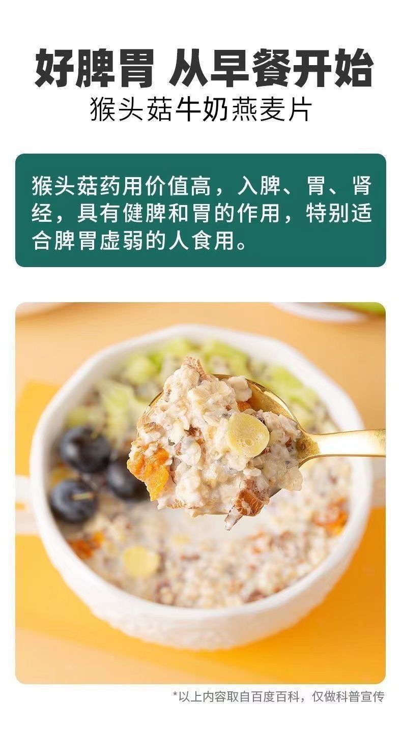 超值52袋【好脾胃❗从早餐开锁】胃胀反酸烧心猴头菇牛奶燕麦片冲泡免煮早餐营养食品袋装。rh