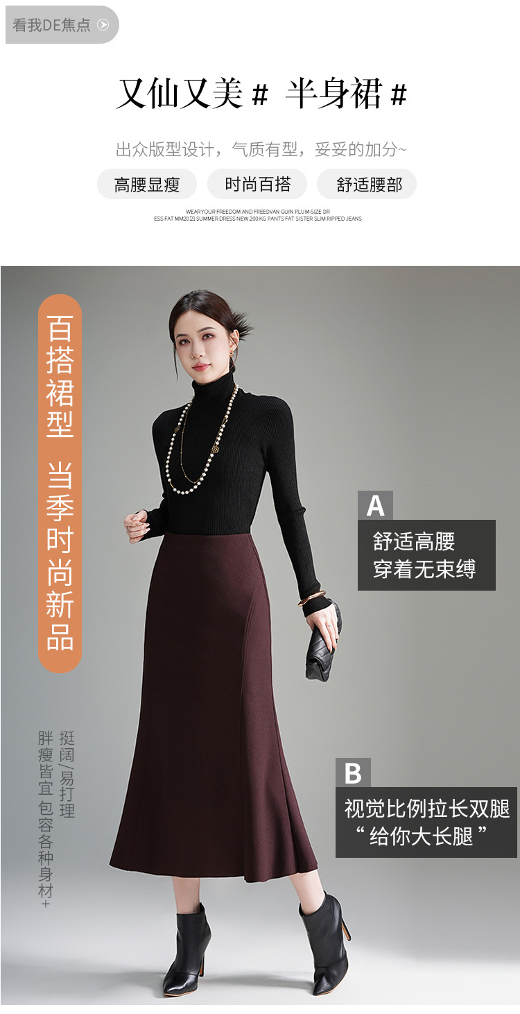 QYM 66911-Y鱼尾半身裙中长款包臀裙垂感一步裙 商品图2