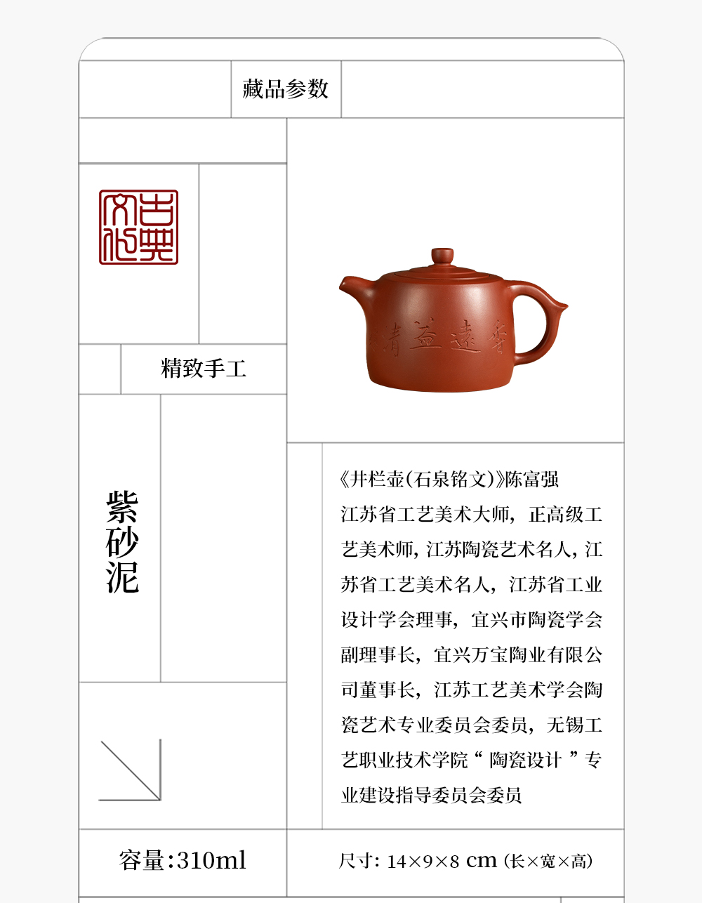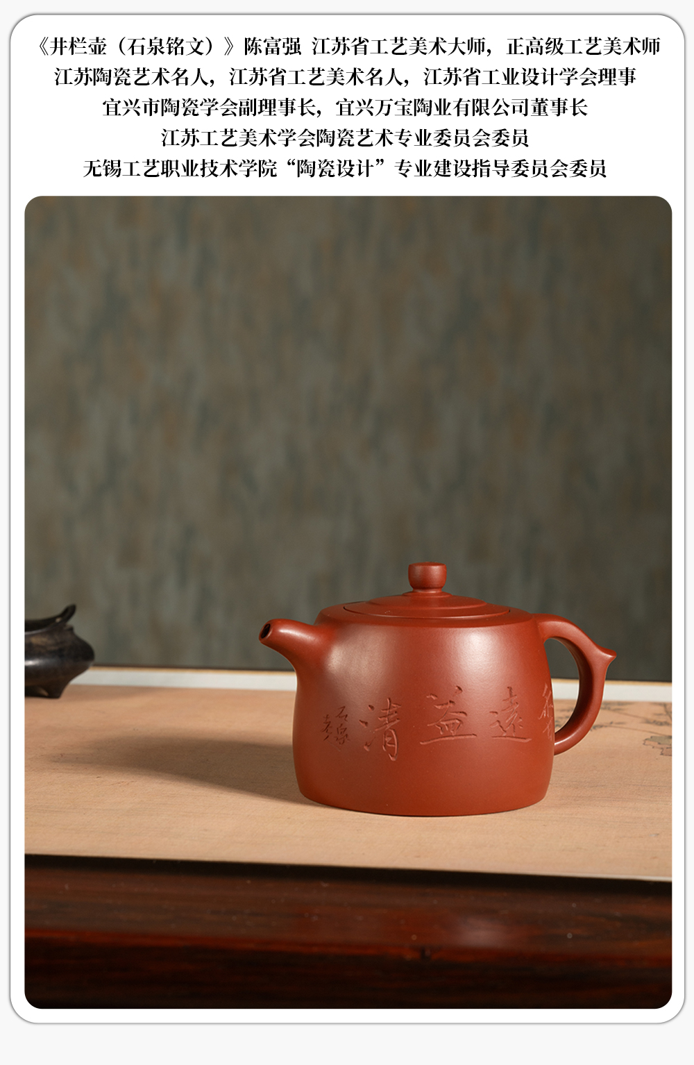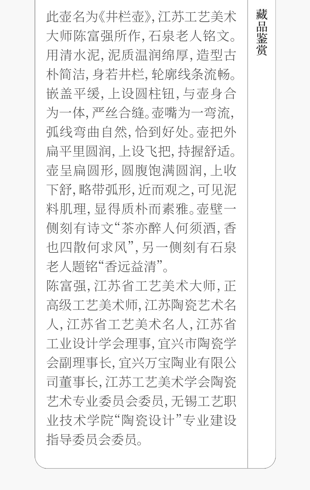 《井栏壶(石泉铭文)》陈富强 江苏省工艺美术大师,正高级工艺美术师,江苏陶瓷艺术名人