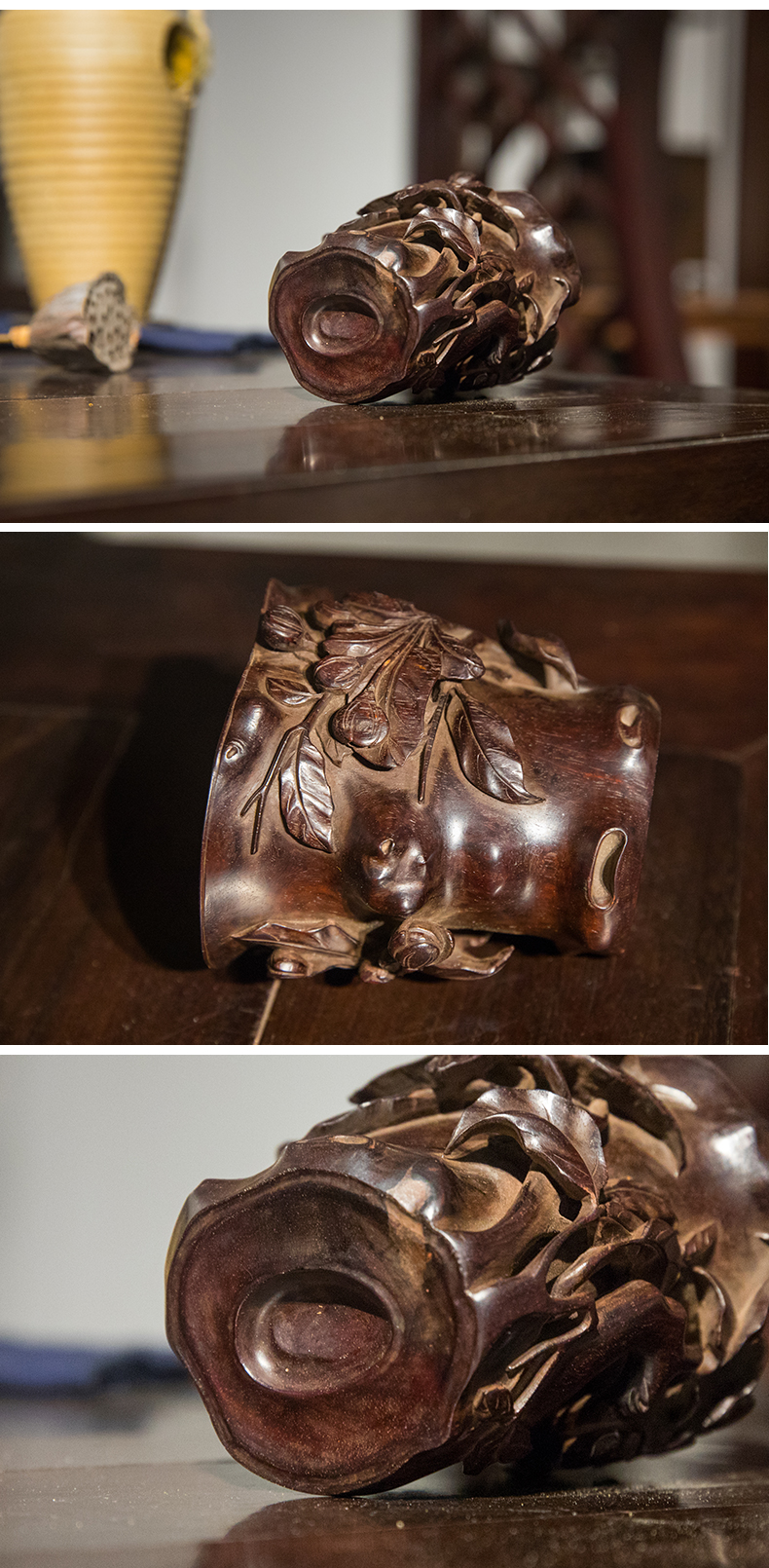 清 黄花梨镶绿石透雕螭龙纹大插屏