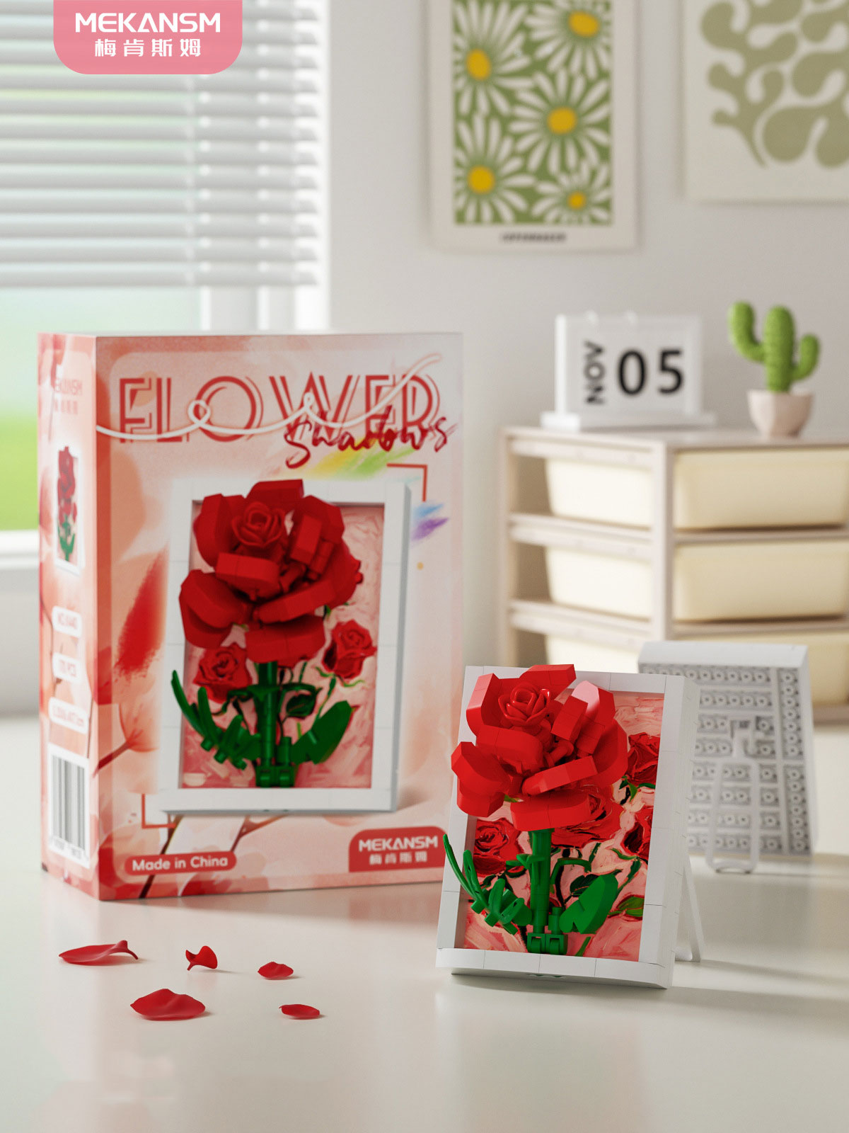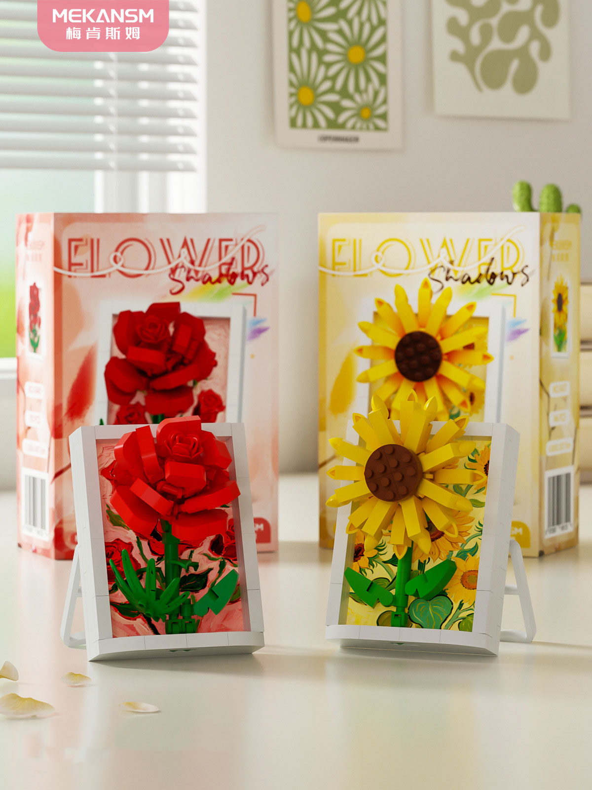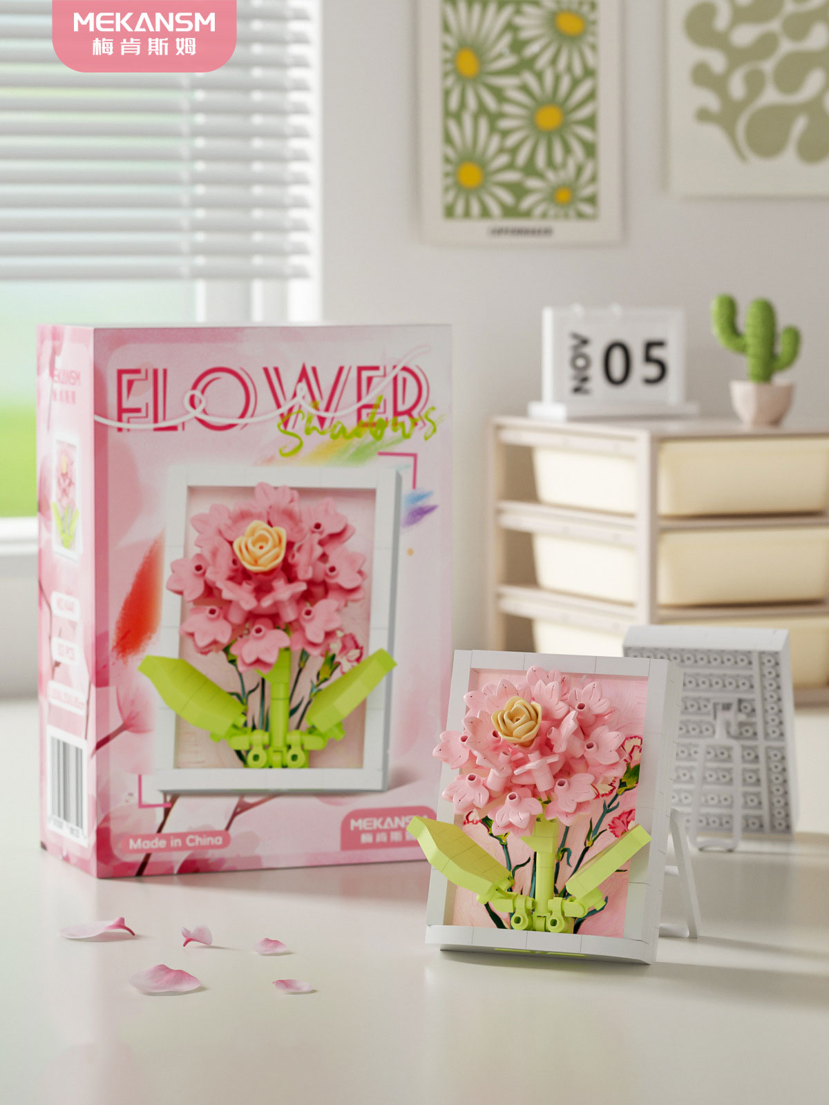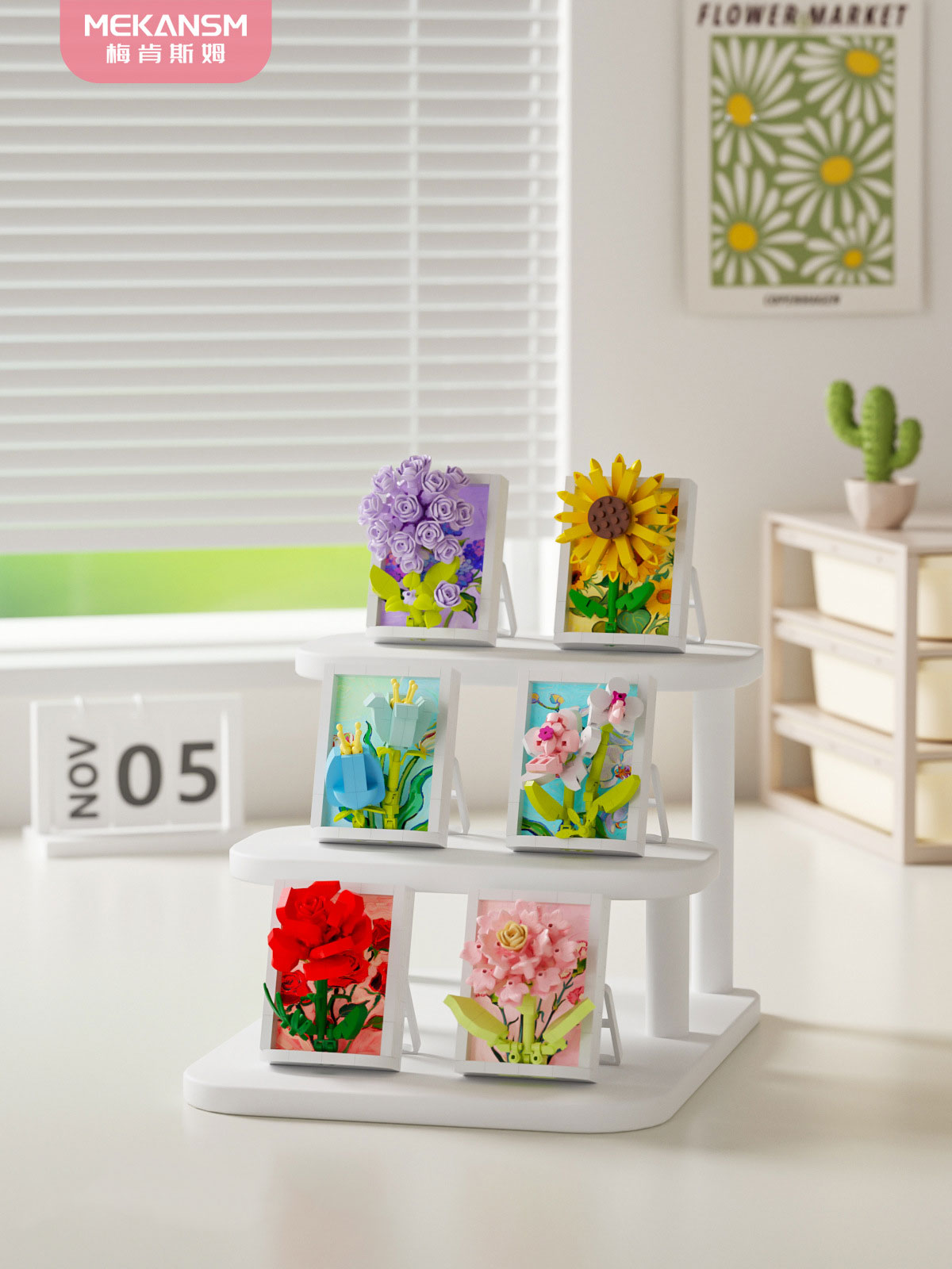 永生积木花相框积木康乃馨向日葵儿童益智玩具教师节礼物