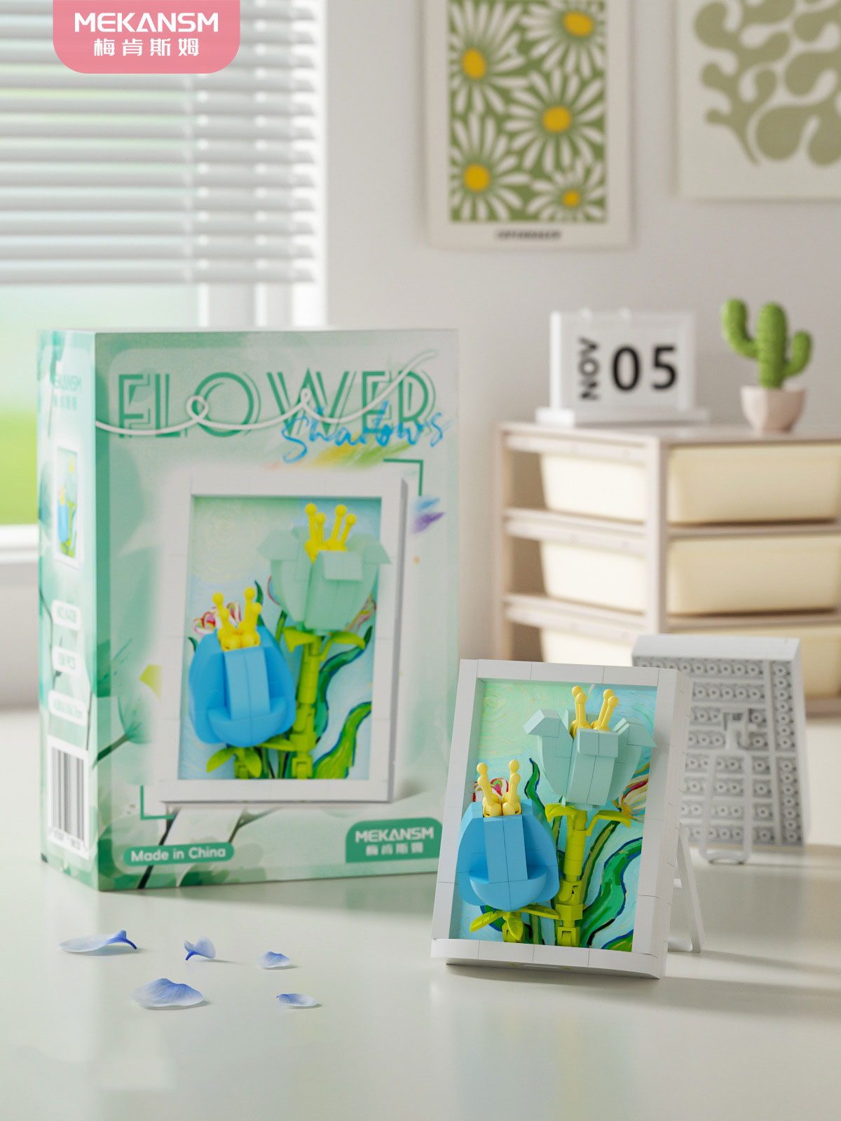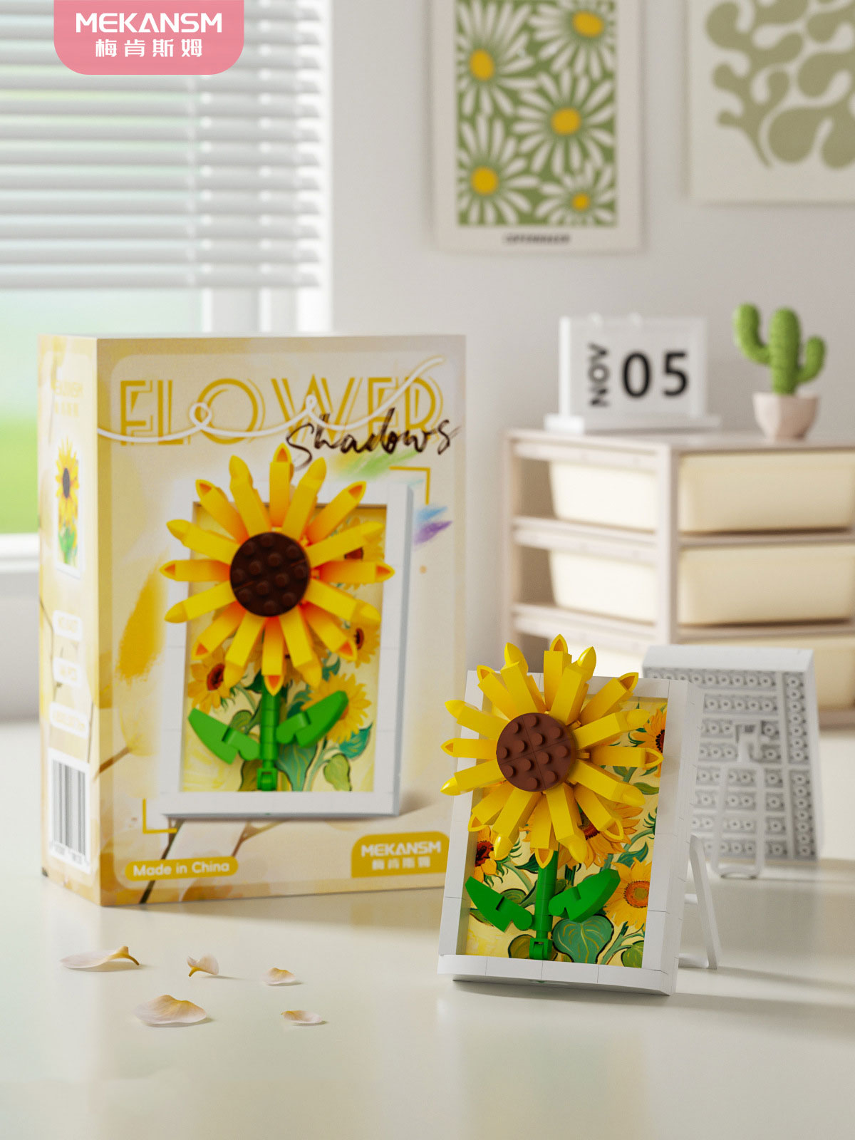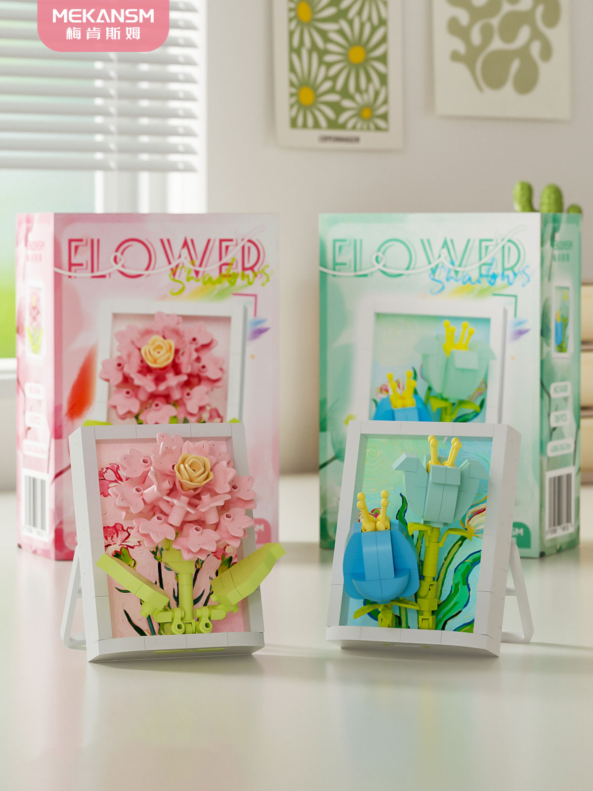 永生积木花相框积木康乃馨向日葵儿童益智玩具教师节礼物