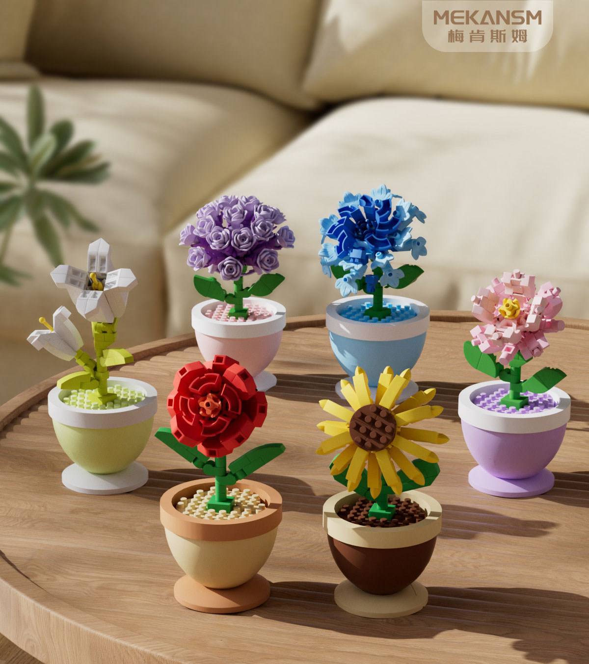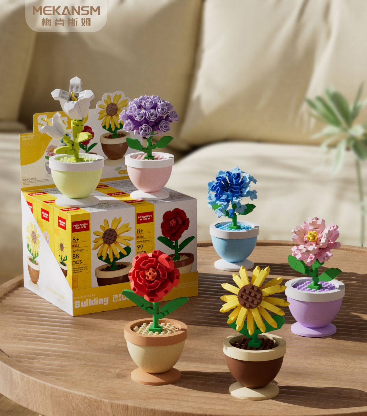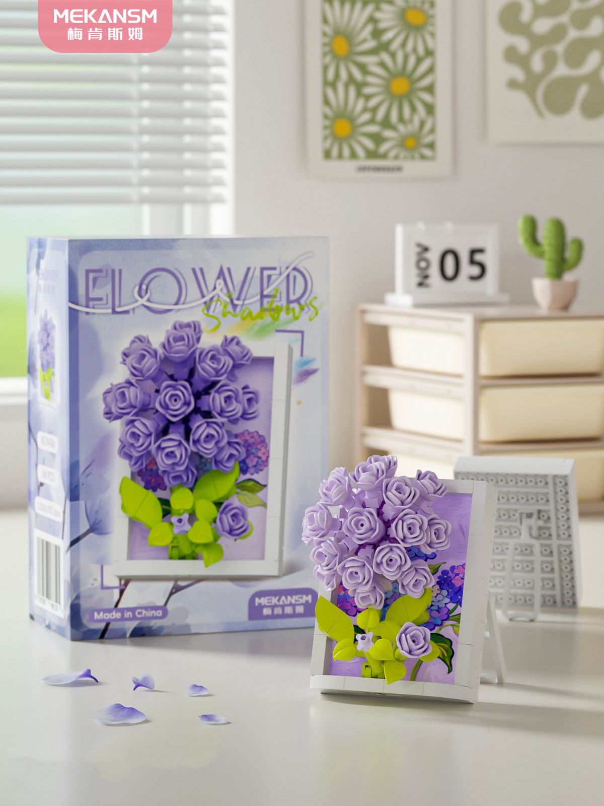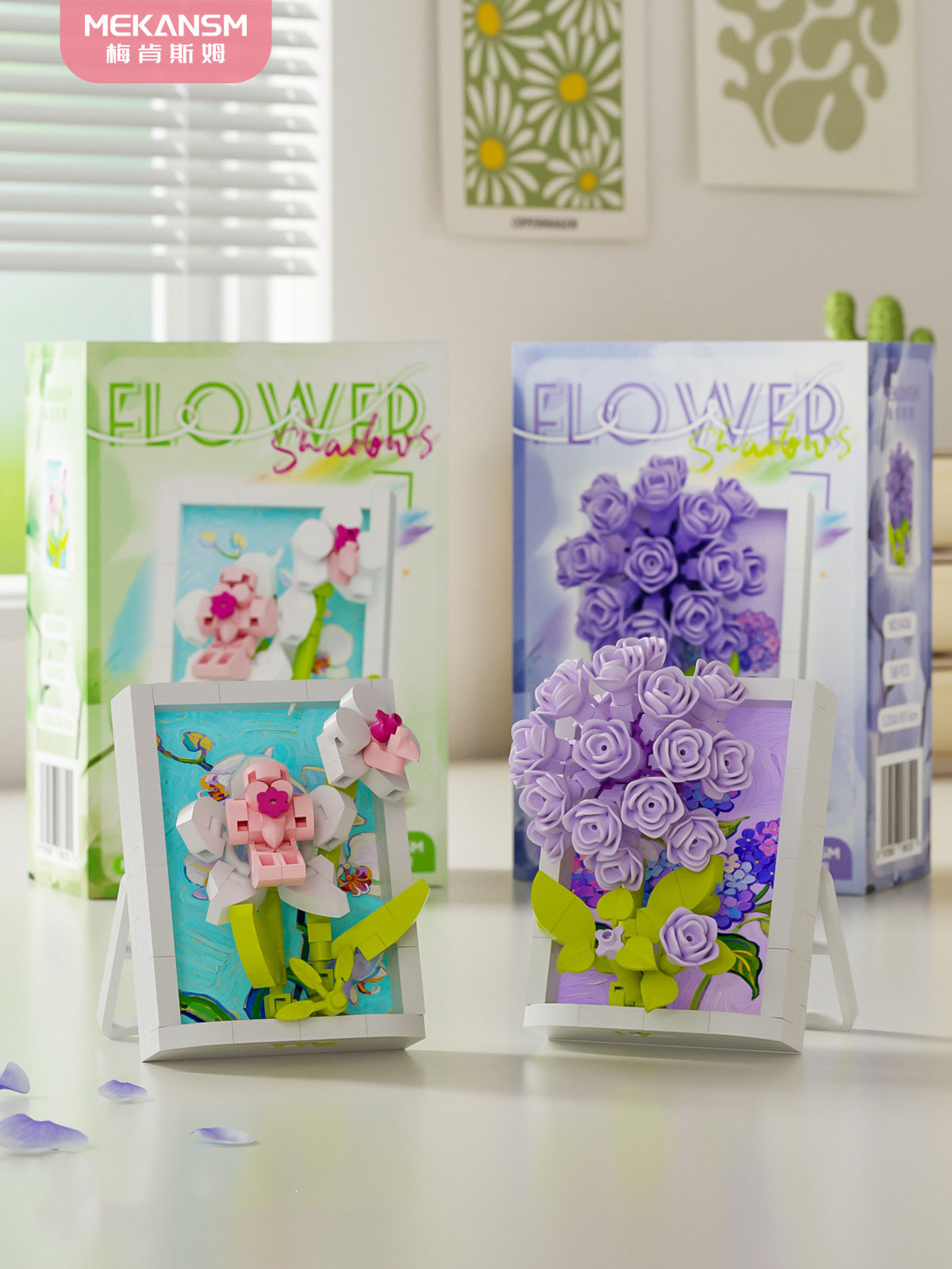 永生积木花相框积木康乃馨向日葵儿童益智玩具教师节礼物