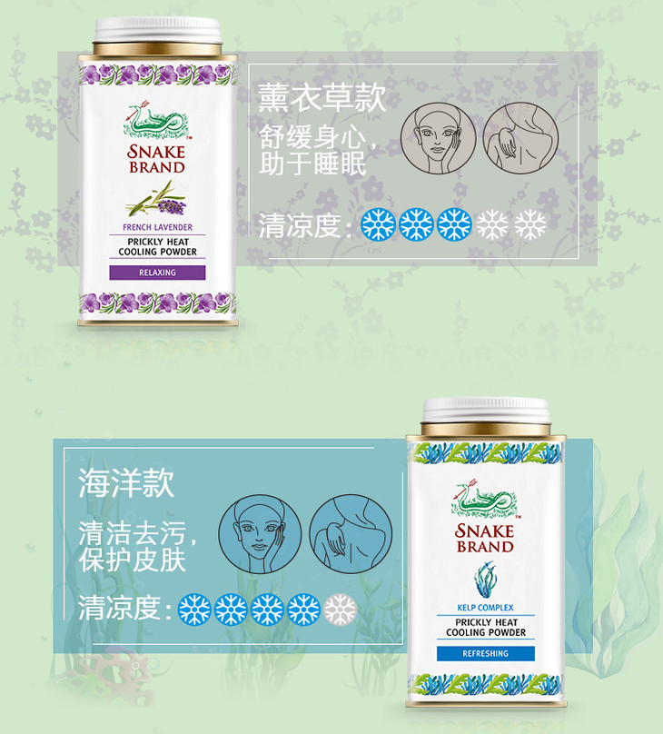 SNAKE BRAND圣露斯蛇牌爽身粉#婴儿#大红经典#薰衣草款(001196)(001028)(001684)