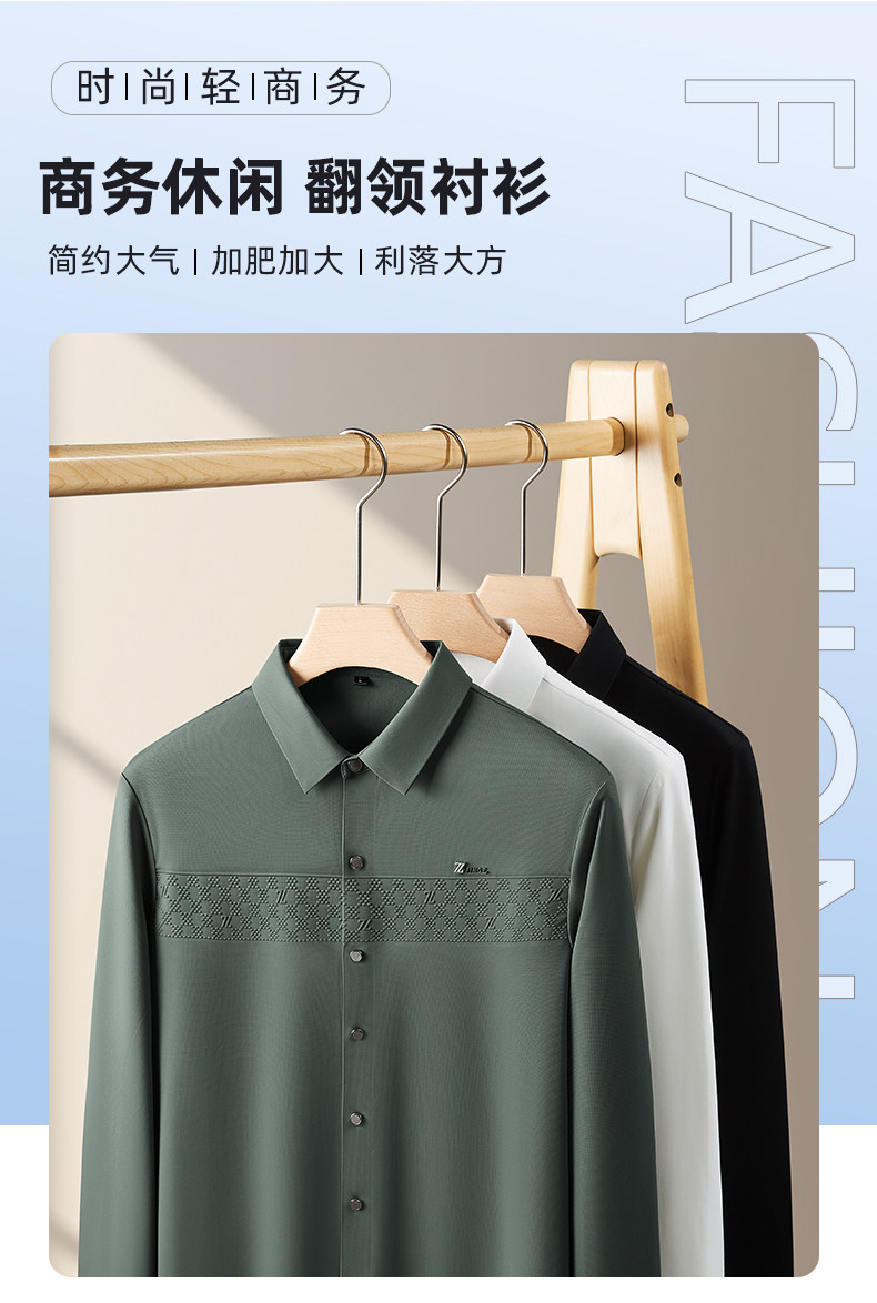 【DDP】大依优型大码男装春季翻领长袖衬衫商务休闲透气免烫长袖T恤