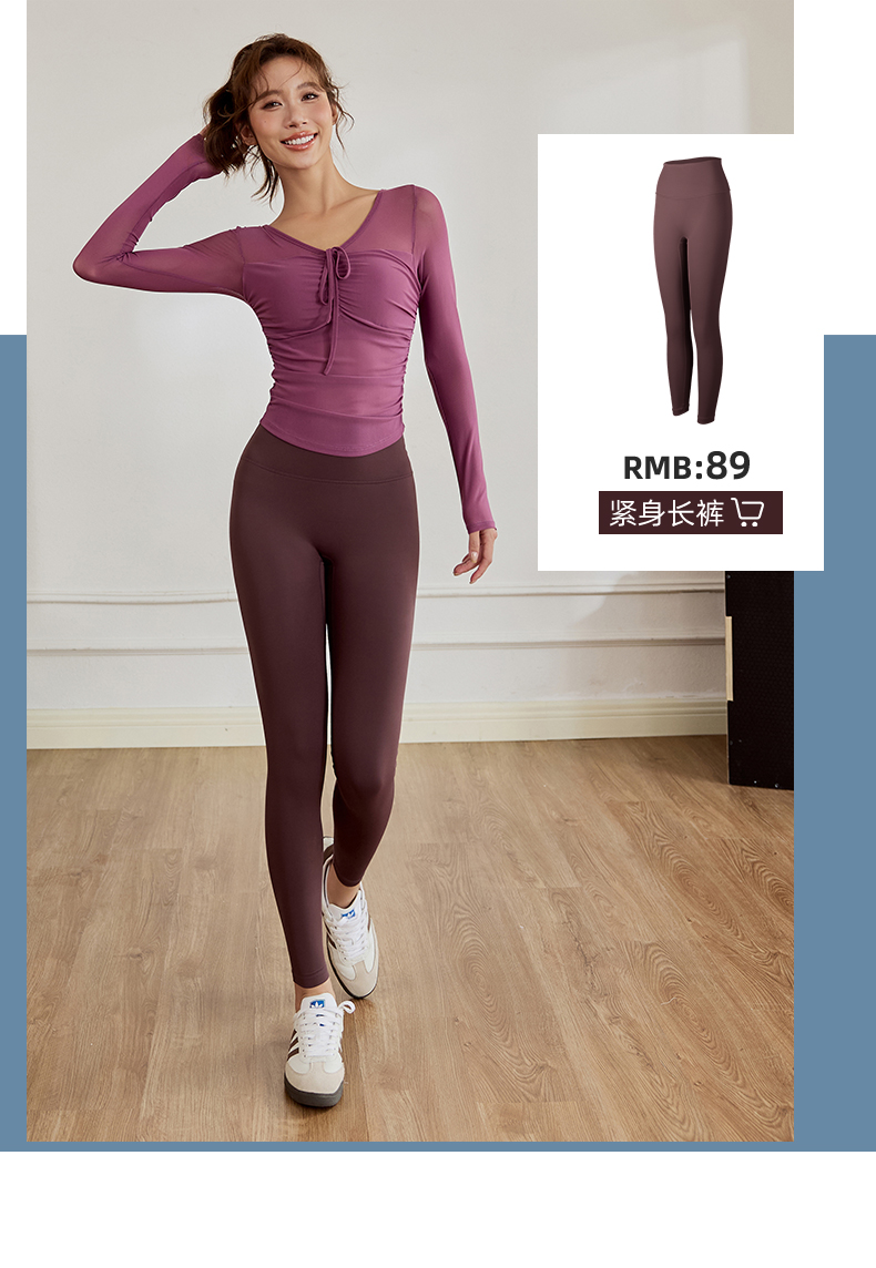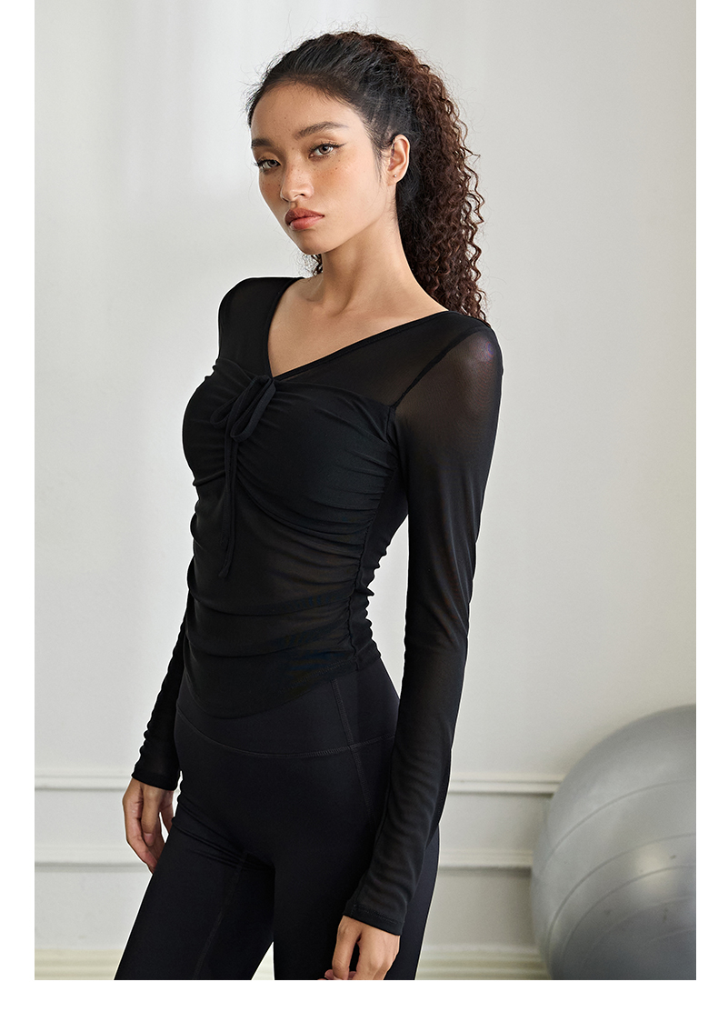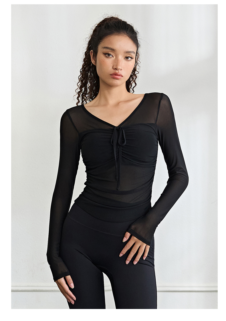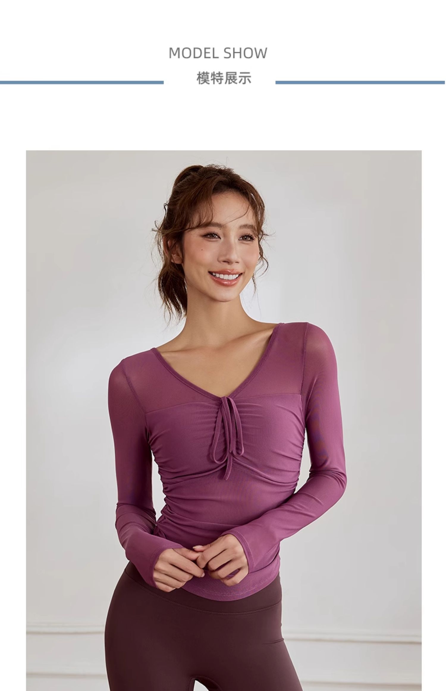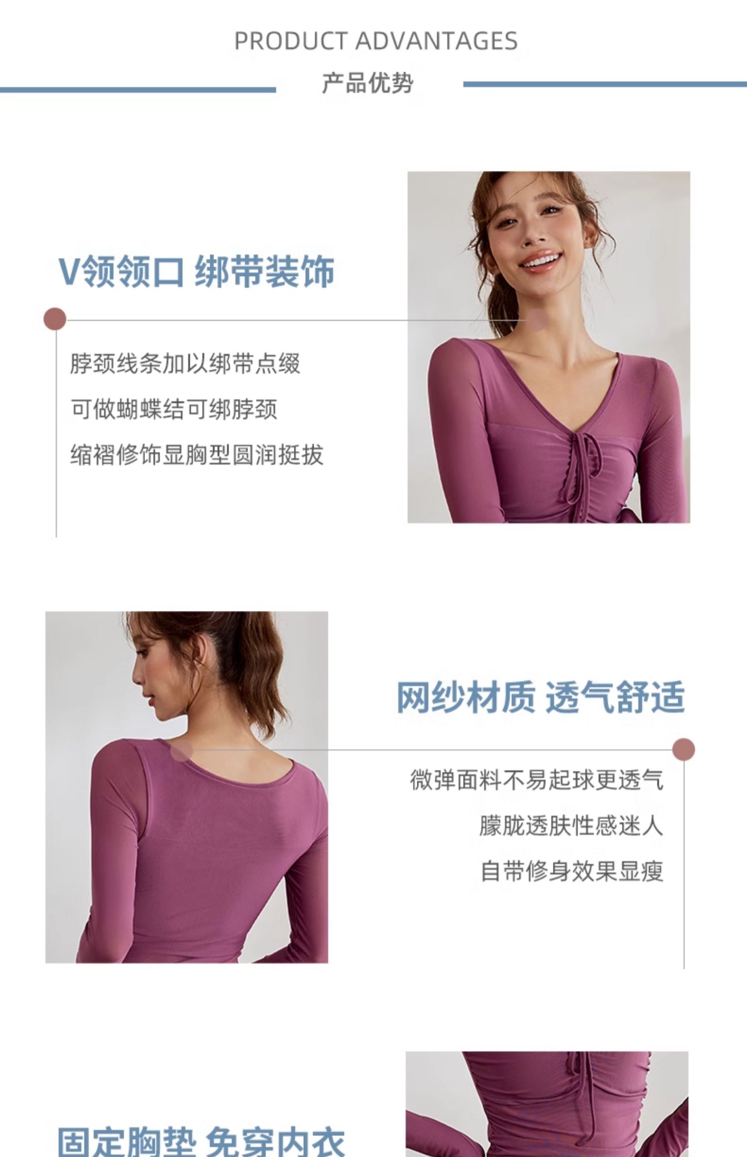 跃牌【瑜堂系列】新款网纱瑜伽服长袖女修身显瘦固定杯运动健身上衣女JYJC025