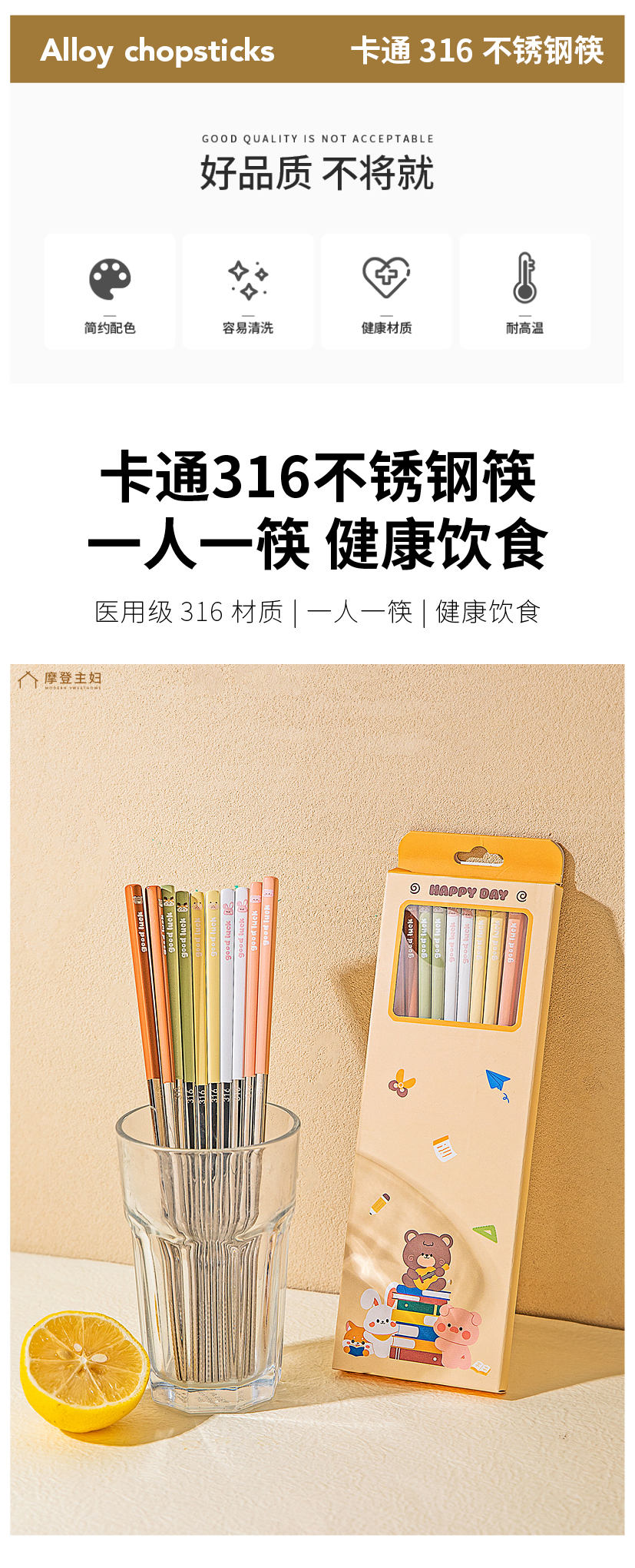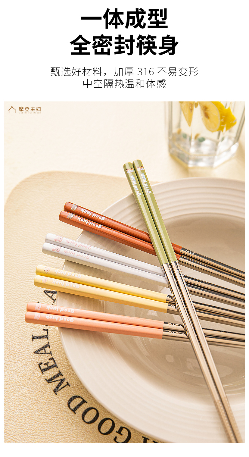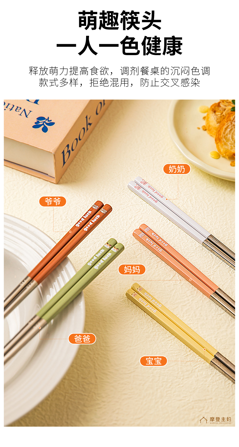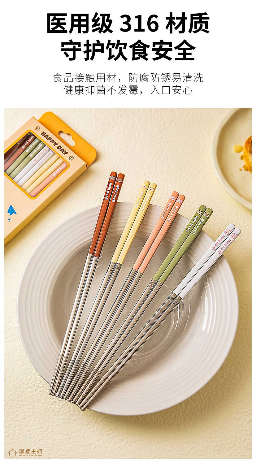 摩登主妇316不锈钢家用筷子2024新款分人316食品级专人专用儿童筷