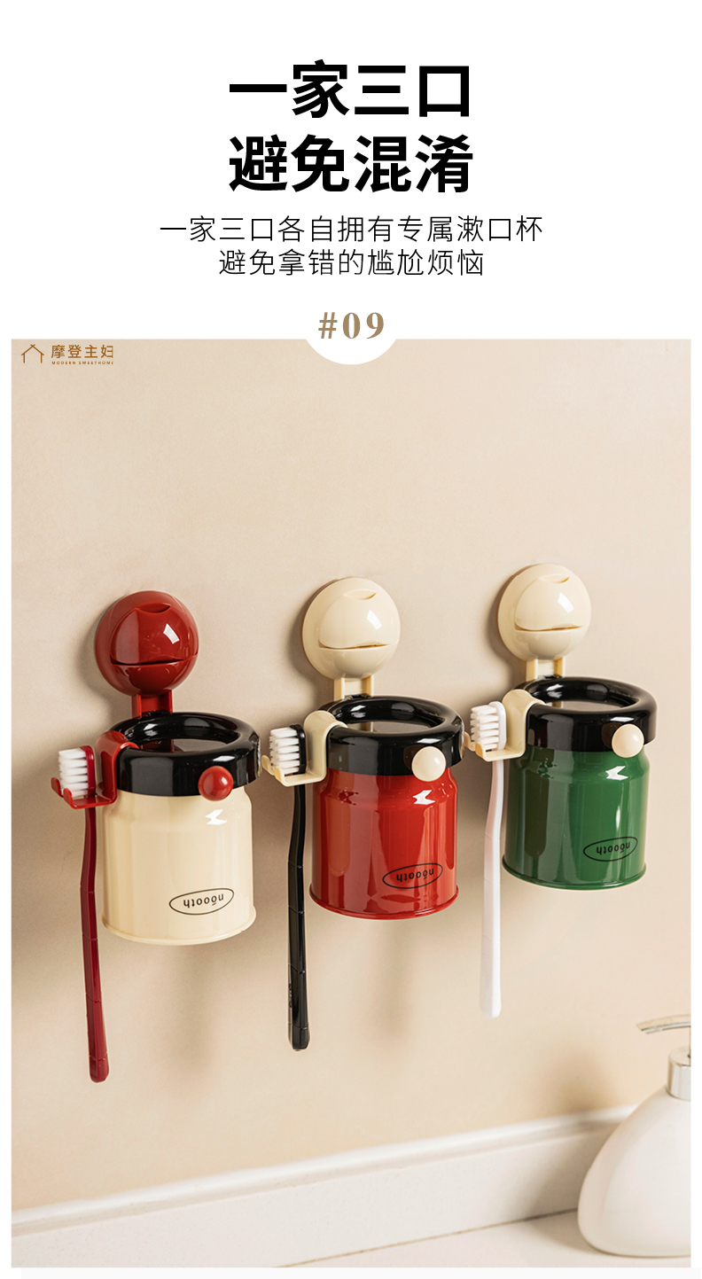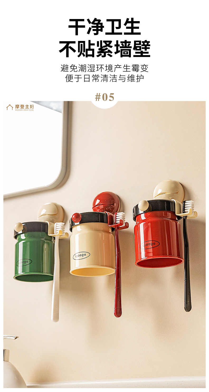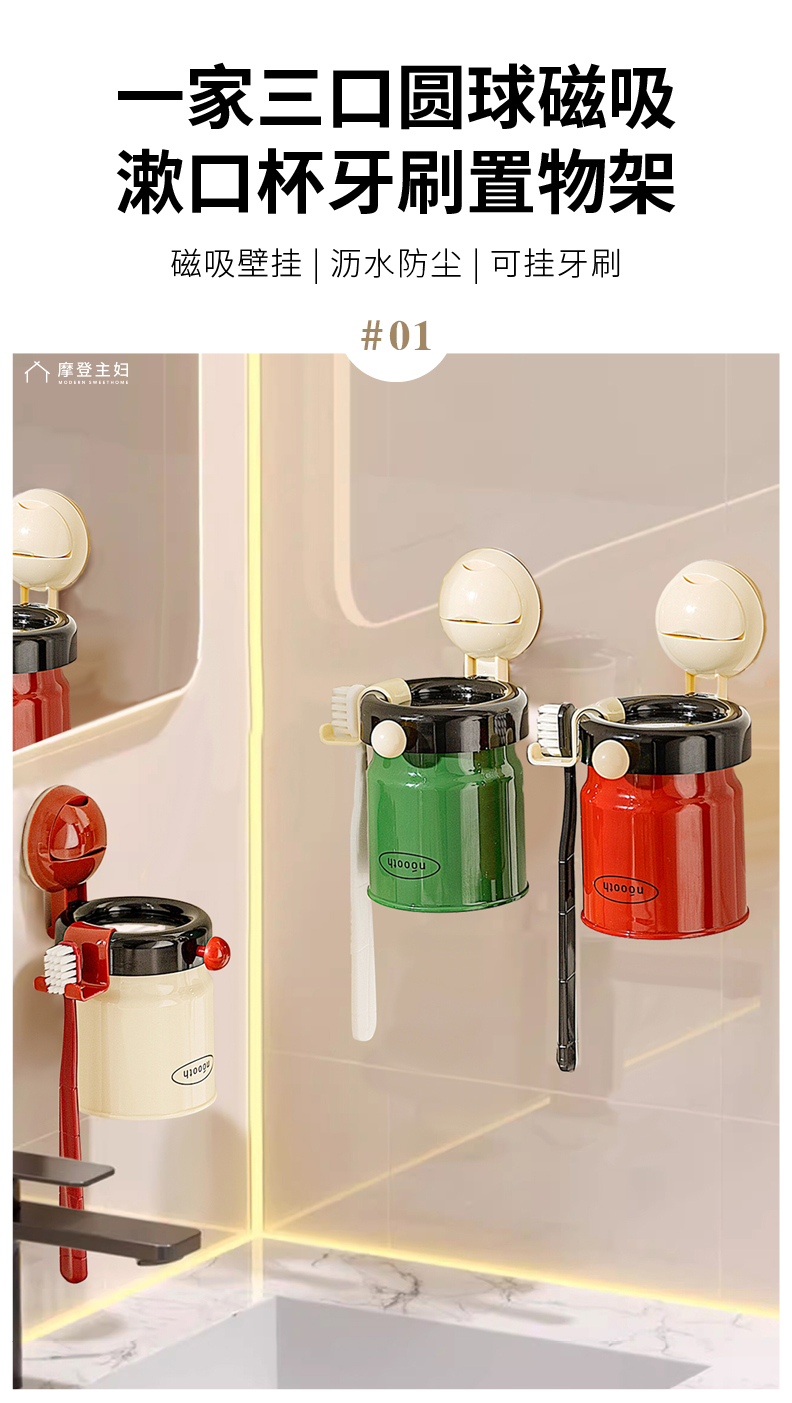 摩登主妇牙刷置物架磁吸漱口杯壁挂式免打孔家庭电动牙刷牙杯挂架