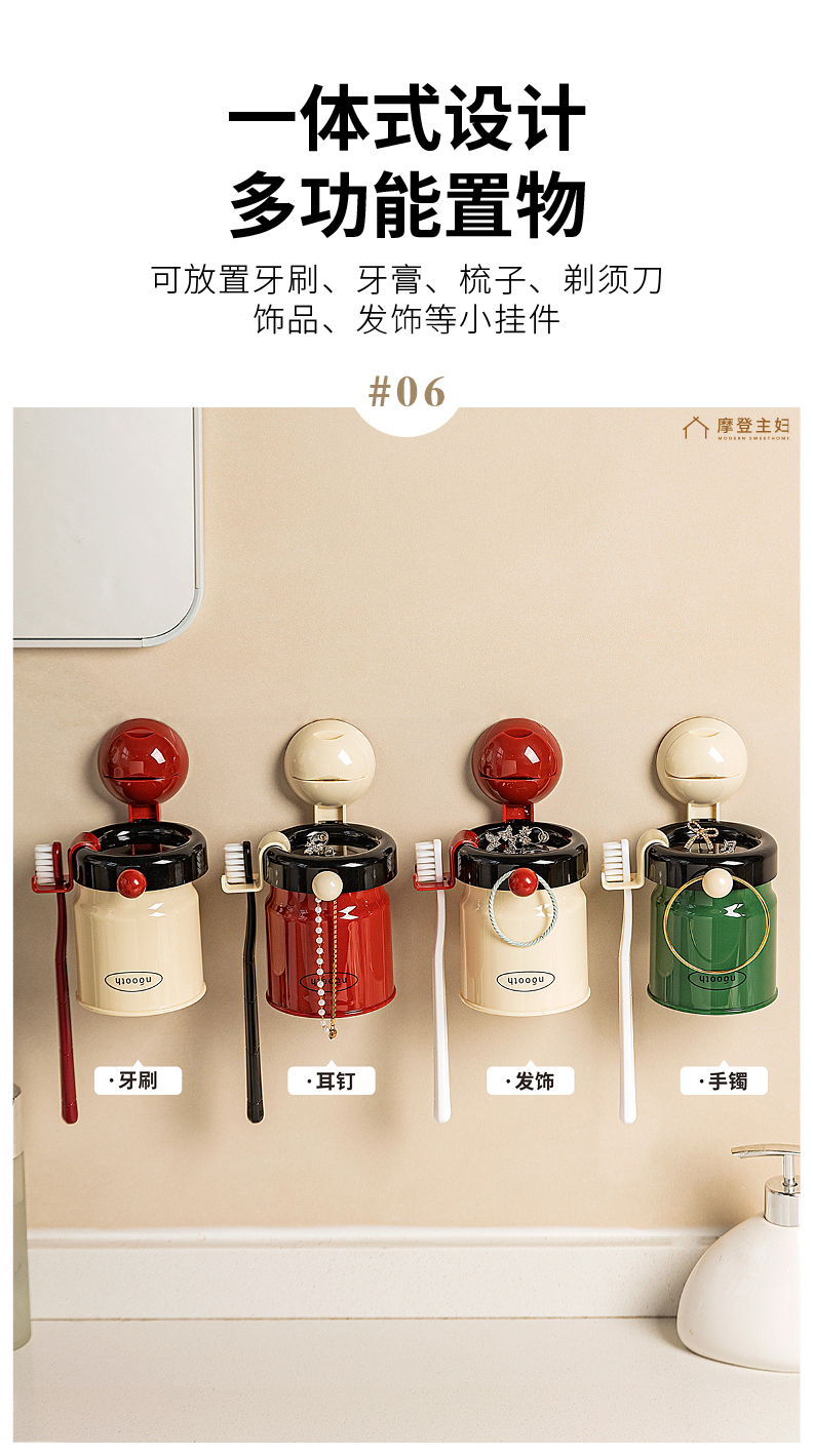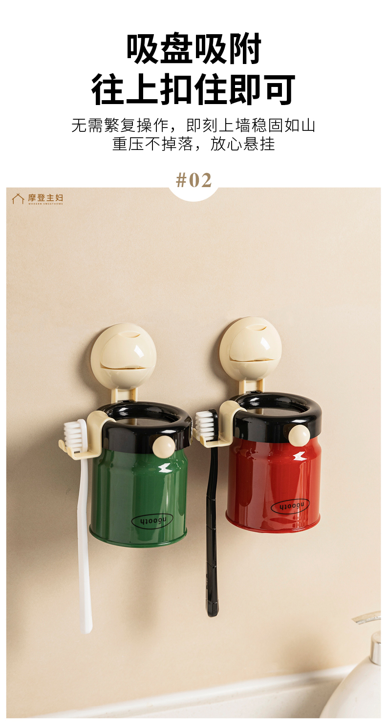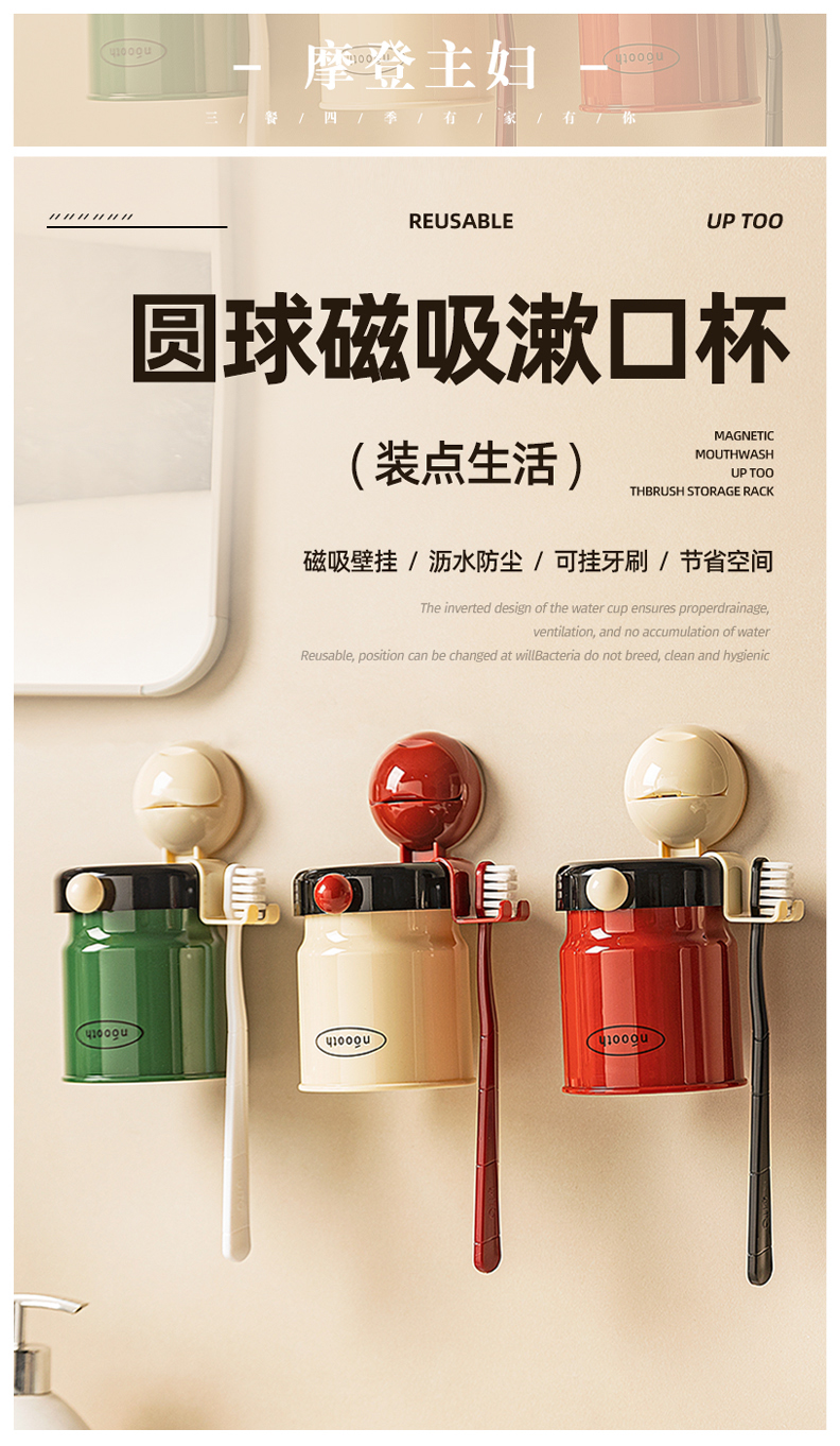 摩登主妇牙刷置物架磁吸漱口杯壁挂式免打孔家庭电动牙刷牙杯挂架