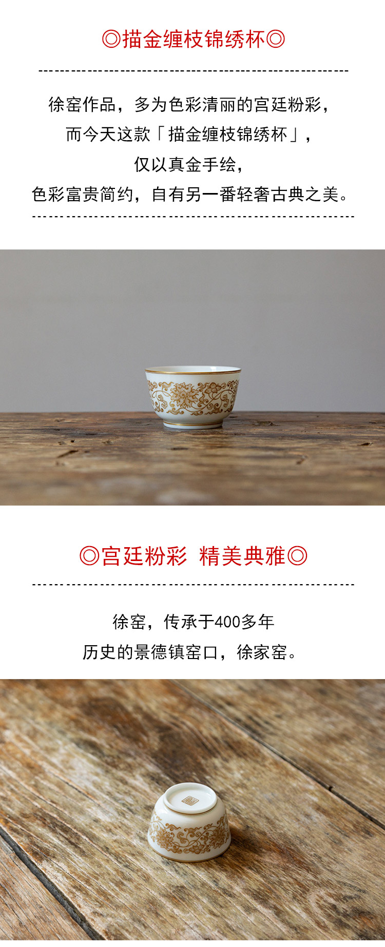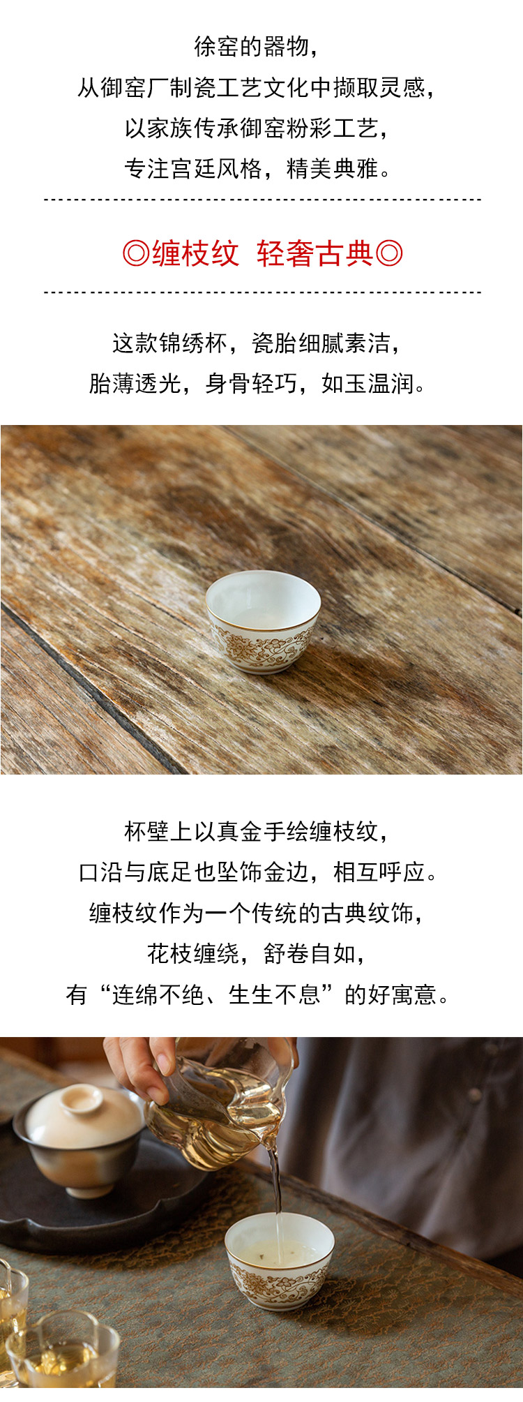 茶香记 描金缠枝锦绣杯 主人杯 品茗杯 宫廷粉彩 徐窑 轻奢典雅