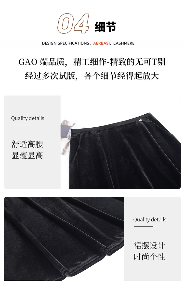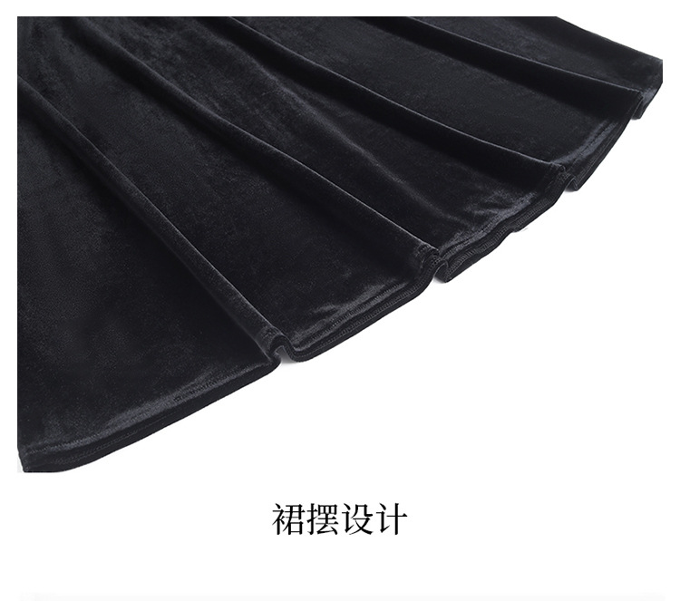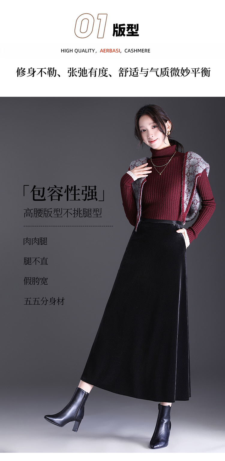 QYM M258-Y丝绒裙高腰半身裙遮胯中长款A字裙 商品图4