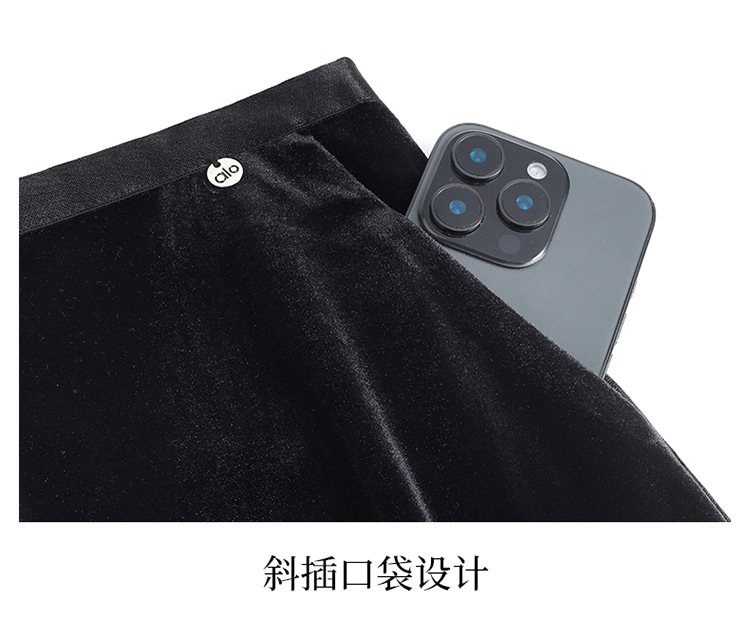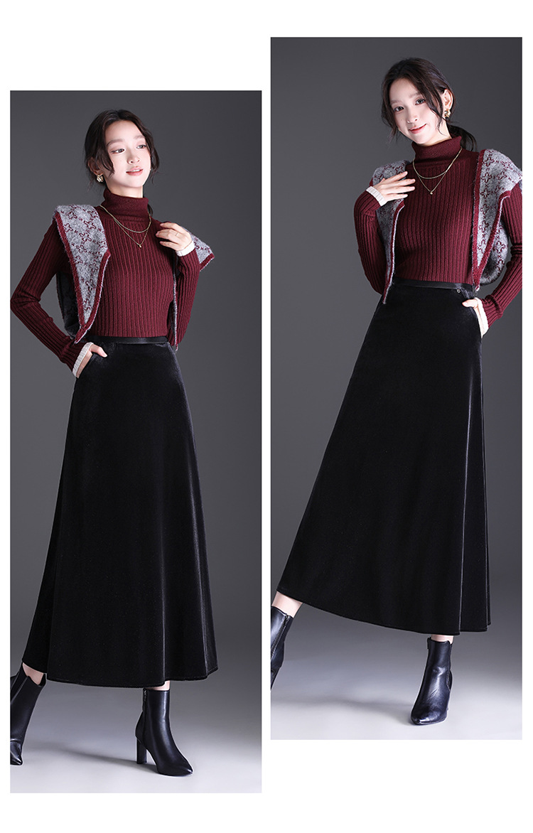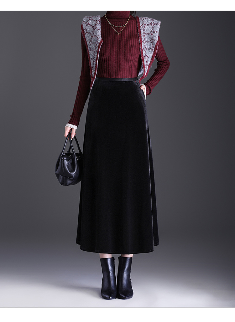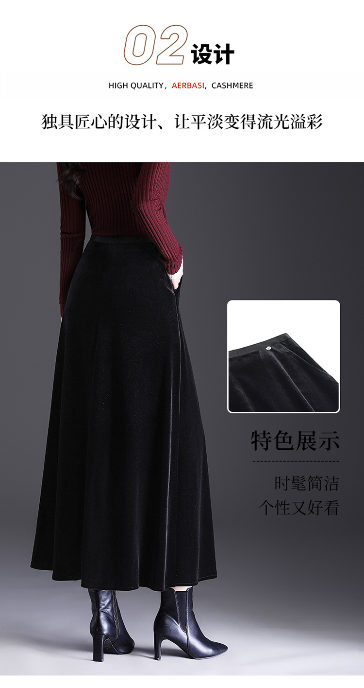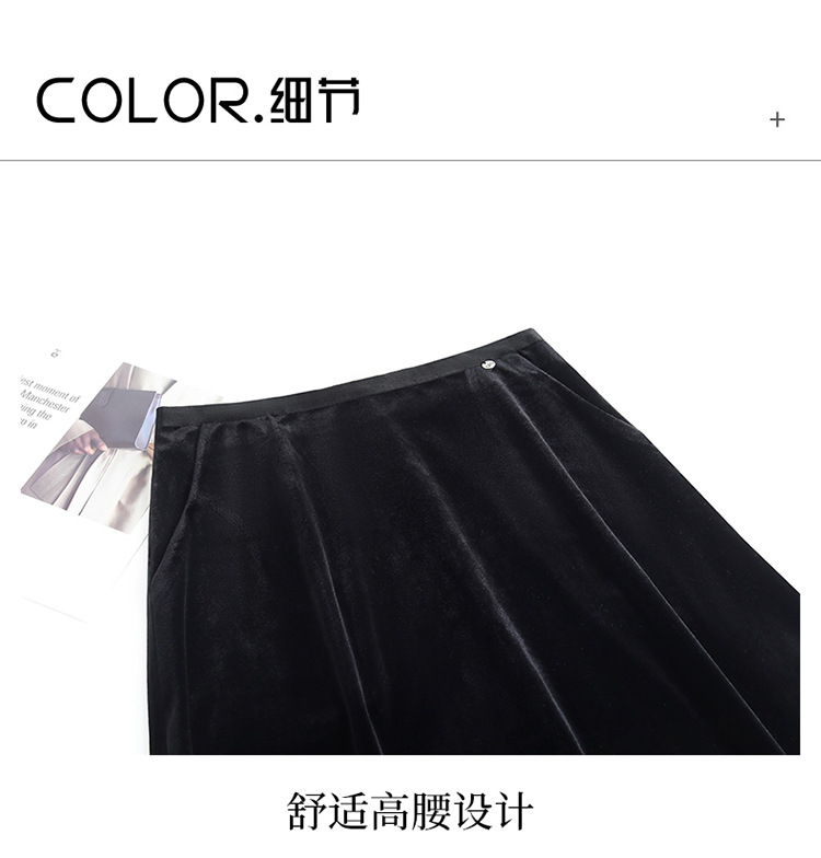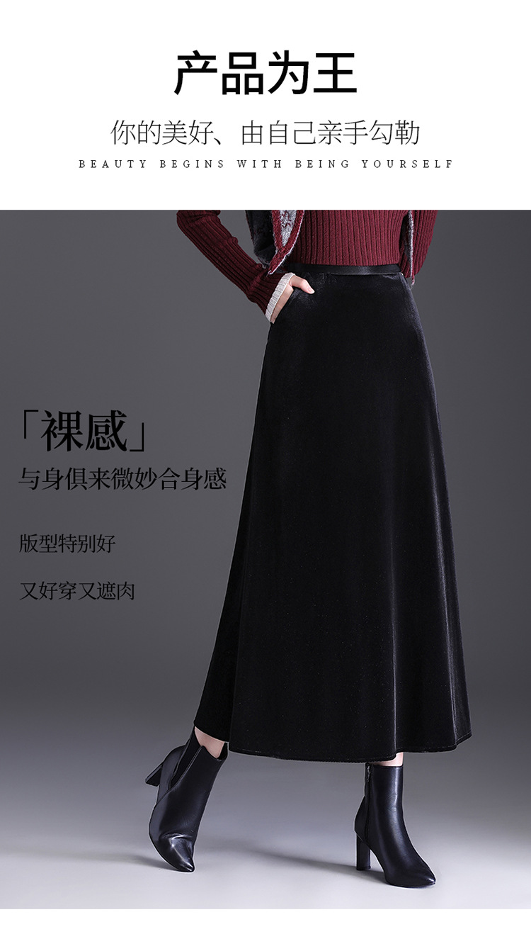 QYM M258-Y丝绒裙高腰半身裙遮胯中长款A字裙 商品图3