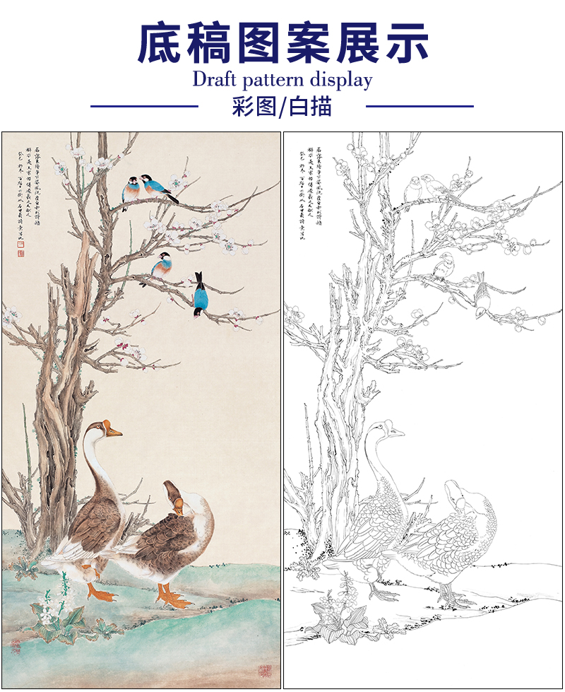 吕大卫花鸟工笔画白描底稿《石田翁诗意》四尺六尺临摹勾线高清打印稿A687